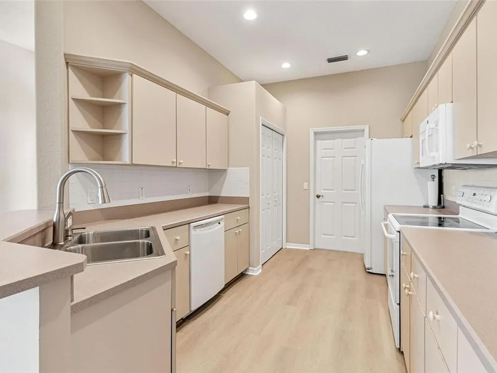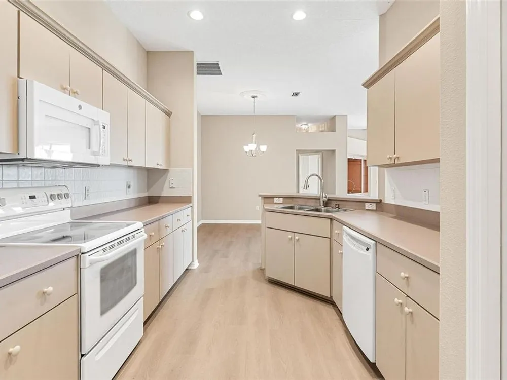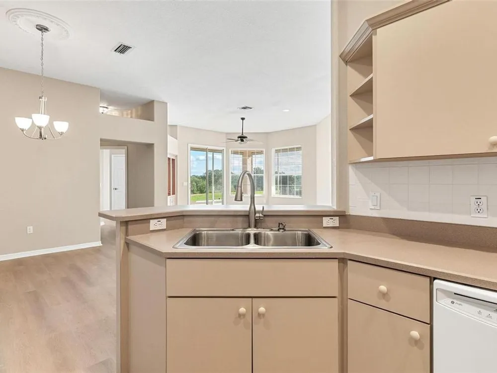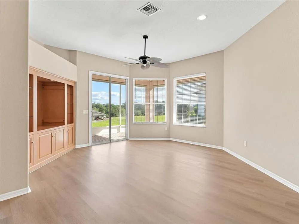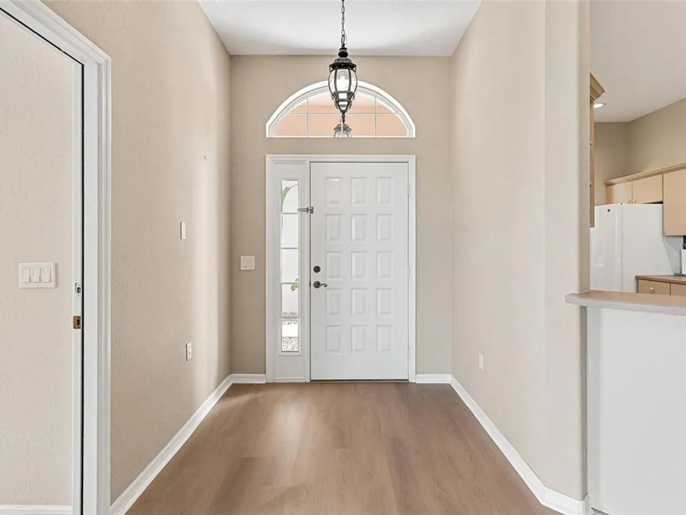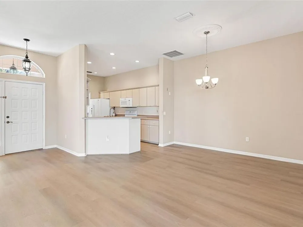 Perched high on a ridge in the gated community of Harbor Hills Country Club, this inviting 2-bedroom, 2-bath home offers comfort, style, and peaceful views of Lake Griffin and beyond. Each bedroom offers private en suite bathrooms. Also, there are two are conditioners to ensure ultimate climate. Step inside to find a neutral color palette and brand-new luxury vinyl plank flooring throughout-making this home move in ready and easy to love. The open living area flows effortlessly to the back screened porch with concrete pavers, where you'll enjoy gorgeous sunrise views over the spacious, open backyard- the perfect spot for morning coffee or quit reflection, or enjoy your favorite show as it is TV ready. The back porch also boasts roll down shades for privacy. Located in one of Central Florida's most sought-after golf and country club communities, this home offers the perfect blend of relaxation, recreation, and refined living. The two car garage features well maintained epoxy flooring. Come see why life feels brighter in Harbor Hills.