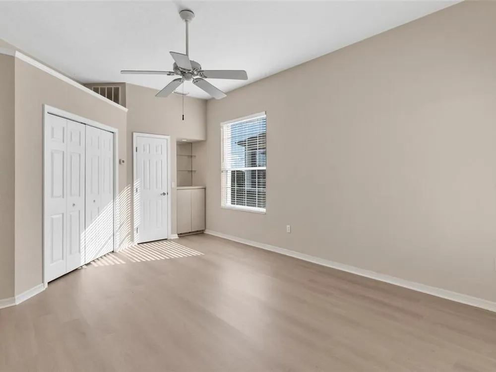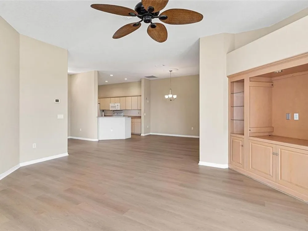 - Built-in Features, High Ceilings, Kitchen/Family Room Combo, Living/Dining Room, Main Level Primary, Thermostat, Walk-In Closet(s), Window Treatments