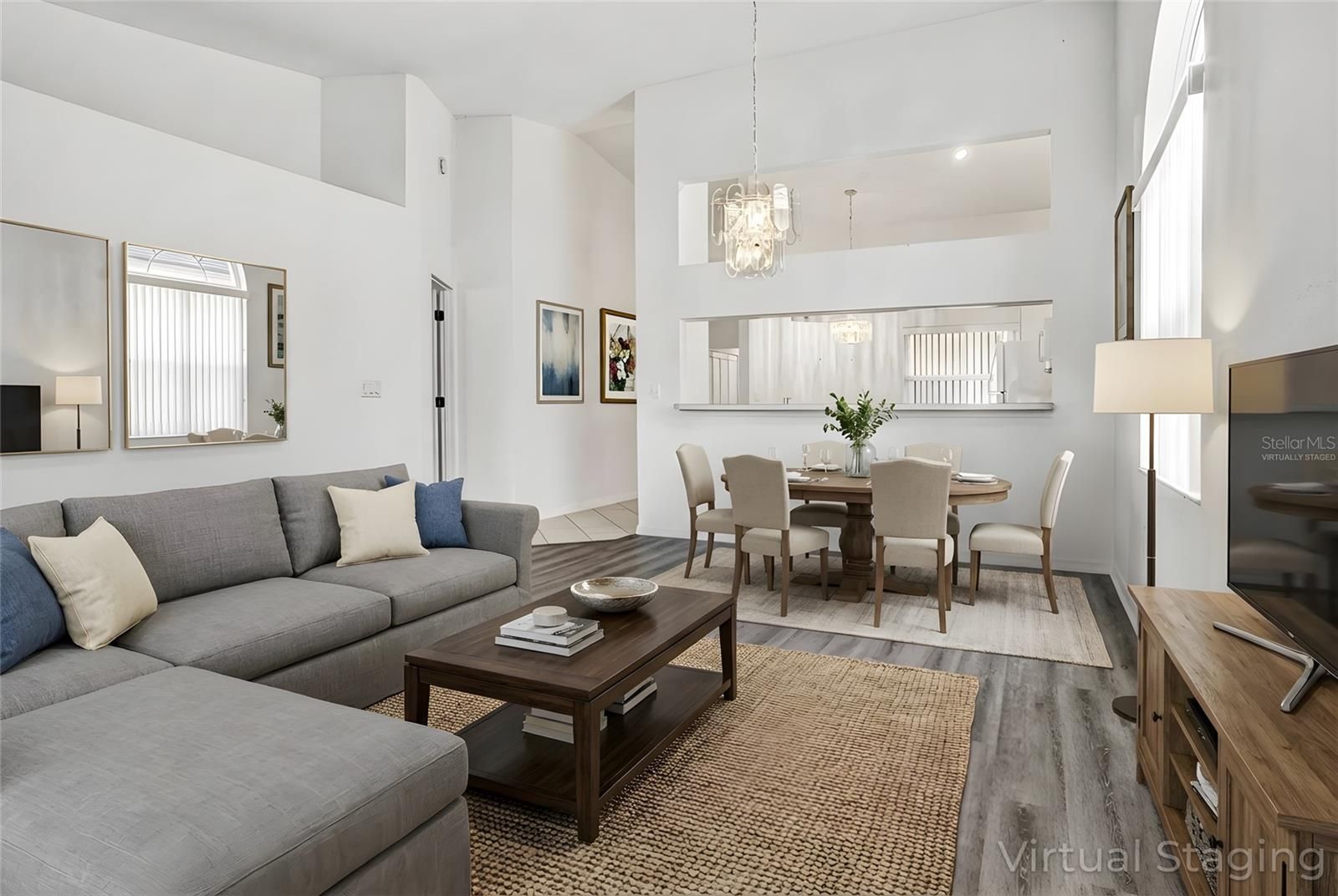 - High Ceilings, Living/Dining Room, Main Level Primary, Thermostat, Vaulted Ceiling(s)