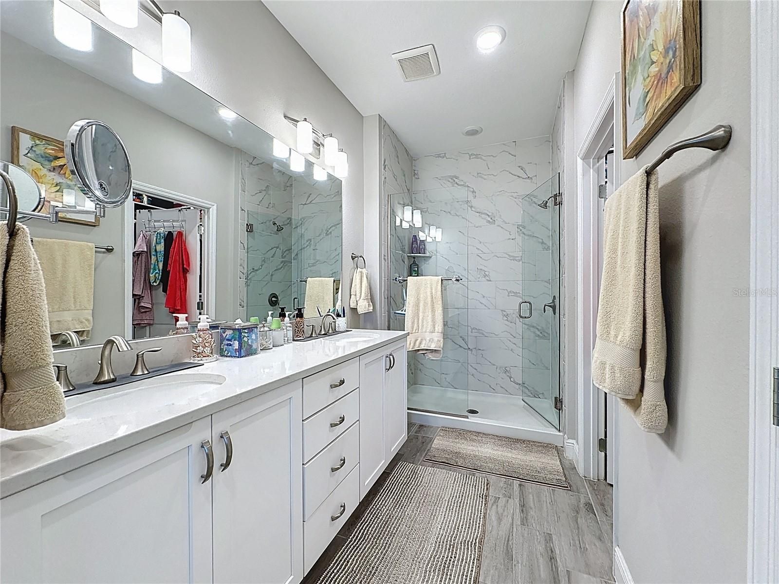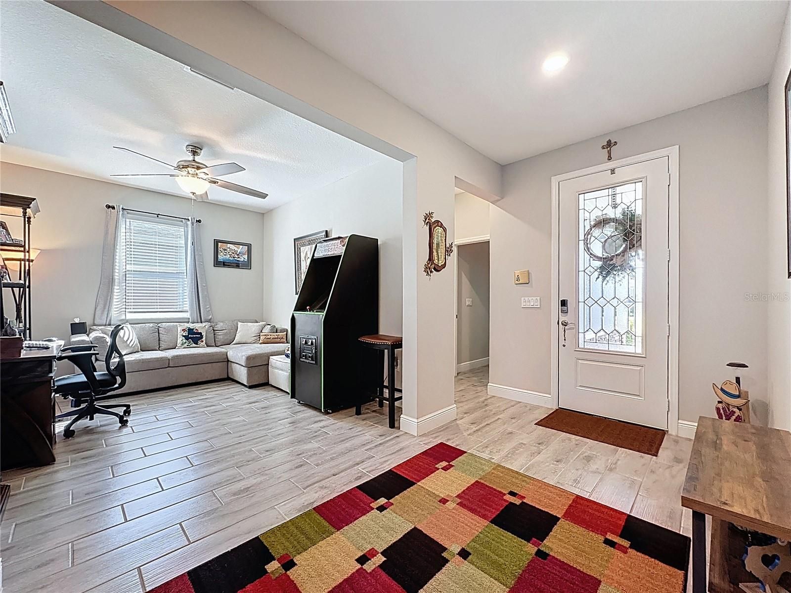 Oh what a view,! This stunning SMART home delivers 5-star curb appeal, modern upgrades, and an indoor-outdoor lifestyle designed for everyday luxury. Surrounded by stone landscape edging and lush native Florida greenery, this home invites you in with style and keeps you captivated with comfort. Step inside to a wide-open floor plan dressed in wood-look plank tile—clean, elegant, and perfect for easy living. The heart of the home is a chef-inspired kitchen featuring white wood cabinets with pullouts, pot drawers, hidden built-in trash storage, a double-size pantry, pendant lighting, quartz countertops, and a massive island ideal for serving, gathering, and entertaining. A built-in refrigerator enclosure keeps the space sleek, while a portable coffee bar adds a fun touch of flexibility for your lifestyle. With 3 bedrooms + a private den/office/craft room that easily converts to a 4th bedroom and 3 full bathrooms, there’s space for everyone. The SMART SPACE laundry suite is a true bonus, fully wrapped in cabinetry with additional storage, plus a front-load washer and dryer included. Retreat to your luxurious Primary Suite, a peaceful haven with a custom barn door, dual sinks, an expanded quartz countertop, a walk-in shower tiled to the ceiling, a frameless glass enclosure, a corner storage niche, a private toilet area with cabinetry, and a dream closet with custom built-ins. The showstopper is the Lanai, your personal sanctuary! 20' x 28' of outdoor living, finished with pavers, a partial glass enclosure, and covered protection for year-round enjoyment. You’ll love the lush butterfly garden and tranquil landscape view and a slice of private paradise, rain or shine. A 3-car garage gives you space for vehicles, hobbies, storage, and more, complete with a workbench and a garage refrigerator, both included. Energy-efficient features like dual-pane low-e windows and excellent insulation help keep utility costs low while maintaining year-round comfort. Gutters surround the entire home. Quality and comfort inside and out. This guard-gated, resort-style community offers more than just home, it delivers a lifestyle! The HOA covers cable, high-speed internet, security monitoring, and landscaping/ lawn care so you can focus on enjoying your time. At the heart of it all is the spectacular 57,000 sq ft Magnolia House, where you’ll enjoy a Member-exclusive restaurant and bar with live entertainment. Indoor/outdoor heated pools & a state-of-the-art athletic club Artisan studio, poker room, culinary kitchen, and creative spaces. Sports courts for tennis, pickleball, bocce, billiards & virtual golf,50+ active, member-led clubs for every hobby and interest. A show-stopping Event Center with a stage and professional AV setup. This isn’t just a home, it’s a lifestyle upgrade where you’ll find connection, wellness, excitement, and belonging every day. Conveniently located 45 minutes to Theme Parks, including Universal and Disney World, and Orlando International Airport, 1 ½ hours to Beaches and Port Canaveral Cruise Terminal. This isn’t just a home, it’s a lifestyle upgrade. Live your BEST LIFE at Trilogy!