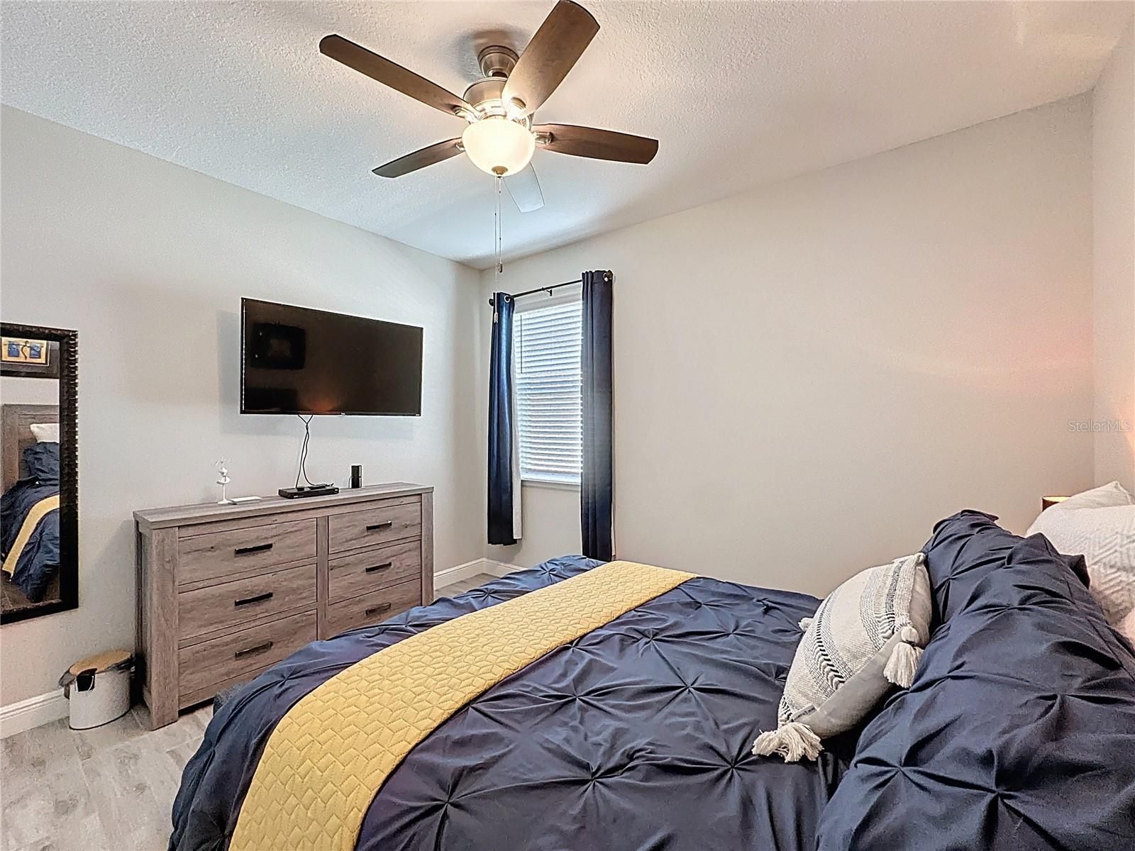 - Built-in Features, Ceiling Fan(s), Open Floorplan, Main Level Primary, Solid-Wood Cabinets, Thermostat, Walk-In Closet(s), Window Treatments