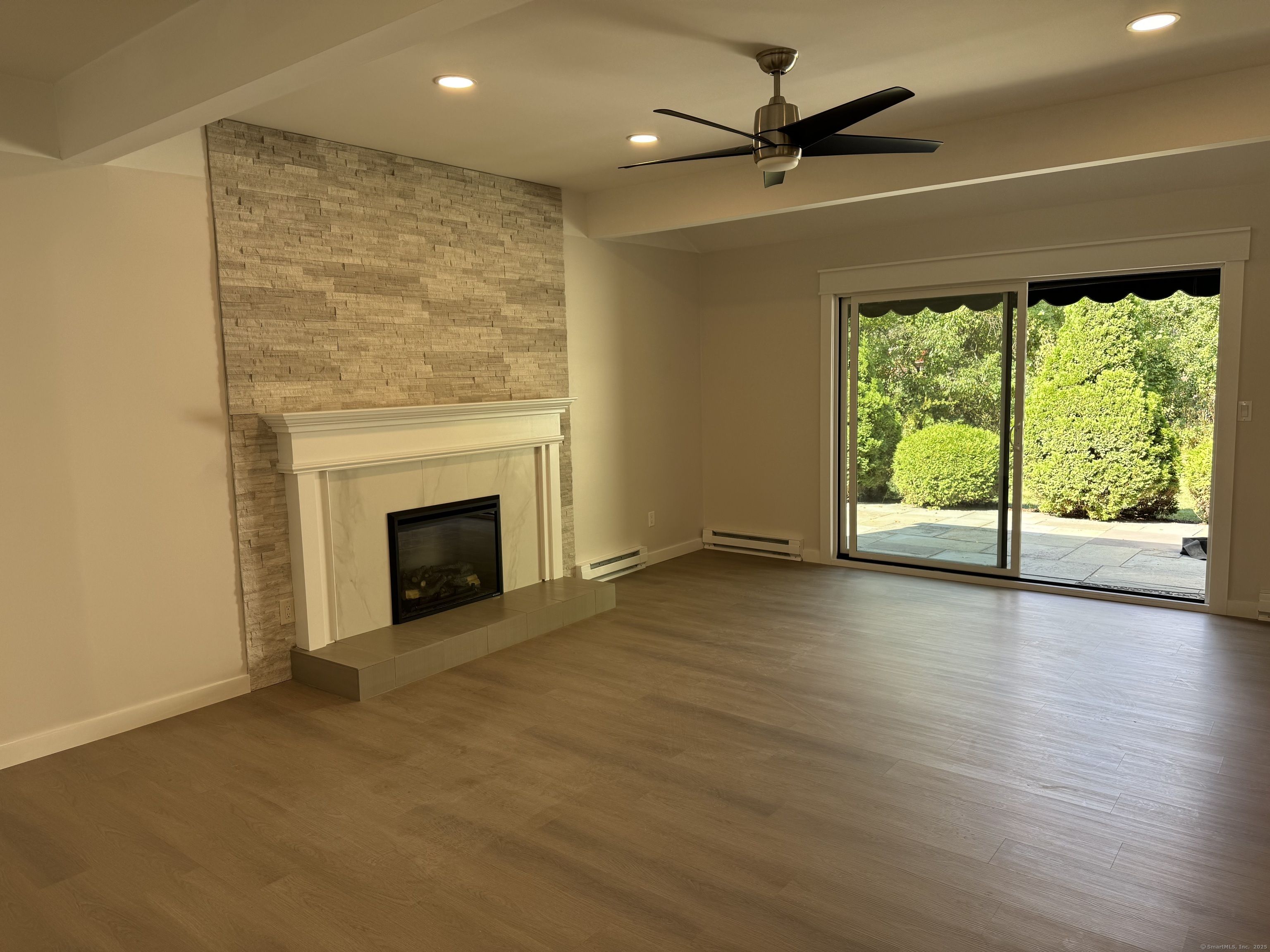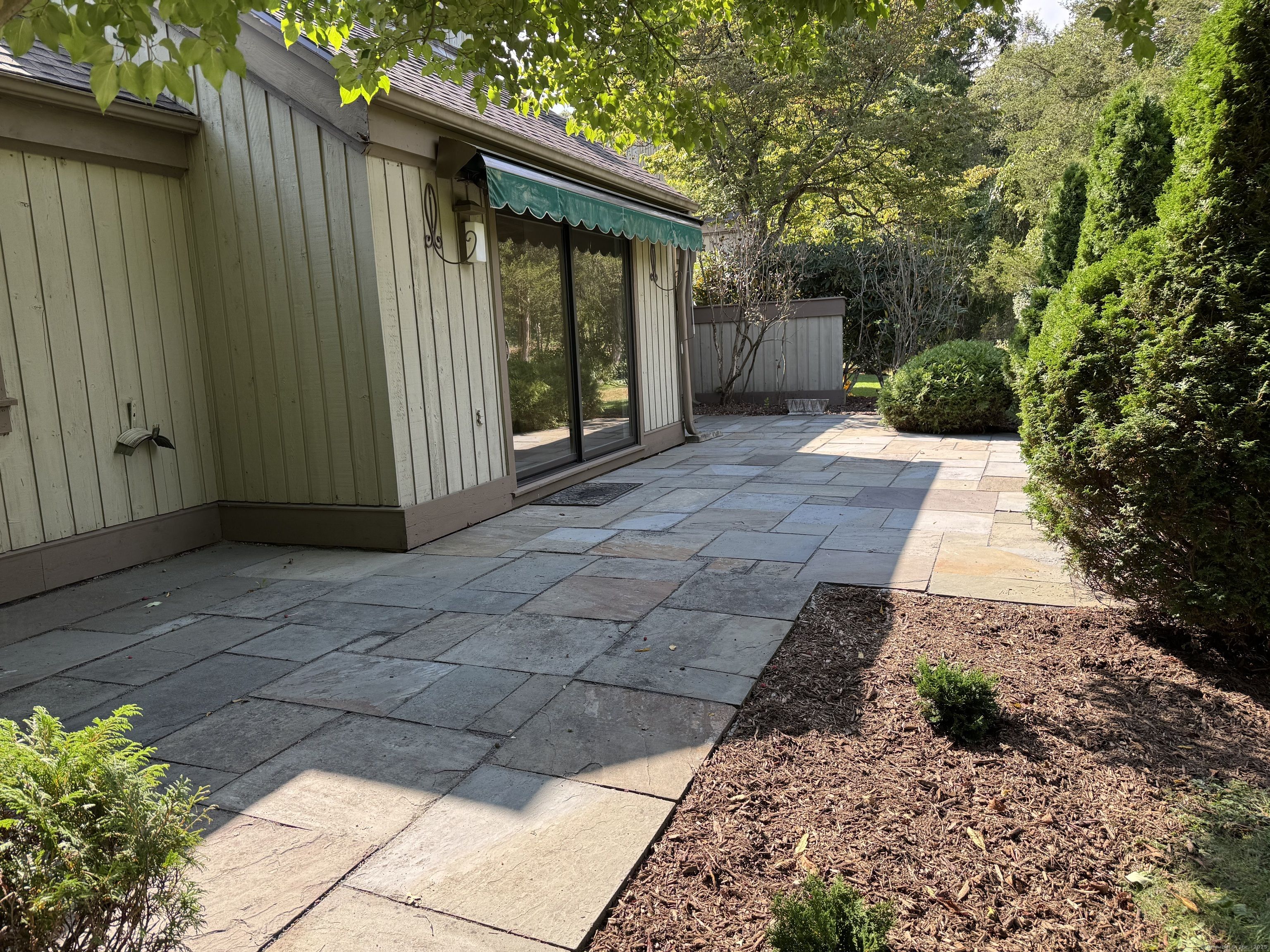 Location, location, location! Big Beautiful backyard, Huge bluestone patio, attractive landscaping! Short easy walk through a lovely courtyard. This unit has been modernized to fit your needs. Open floor plan, many upgrades! Stylish kitchen opens to DR and FR. Kitchen has a breakfast bar with Quartz counters, pendant light and seating area. High end Whirlpool appliances. Plenty of cabinetry! Lots of light through out. Formal Dining Room, looks out over the patio and backyard. Ideal for entertaining. The Family Room is large, higher ceilings, with a slider to the patio, an electric fireplace that really heats up the room. The fireplace has a beautiful mantle and a stone accent that makes it a real focal point. Wonderful for a gathering space. The Primary Bed Room and Primary Bath / Closet has been remodeled. Large walk in closet, elegant full bath, tiled walk in shower, is so inviting! The other two bedrooms are very nice, appointed with ceiling fans. The windows, flooring, sliders are all new! The garage is an end garage, very close to unit. The Heat pump is new and is the main heating and cooling source. Baseboard units are in the unit for seasonal usage when you don't need to heat the whole unit. The under slab work has been completed!! Stop by, you will not be disappointed with the workmanship or quality! At the time of closing, buyer to pay a $5000 fee to Heritage Village for future improvements to the complex amenities.