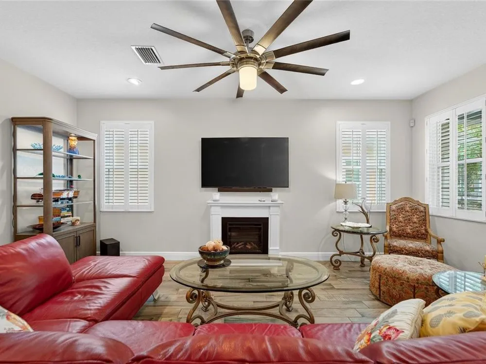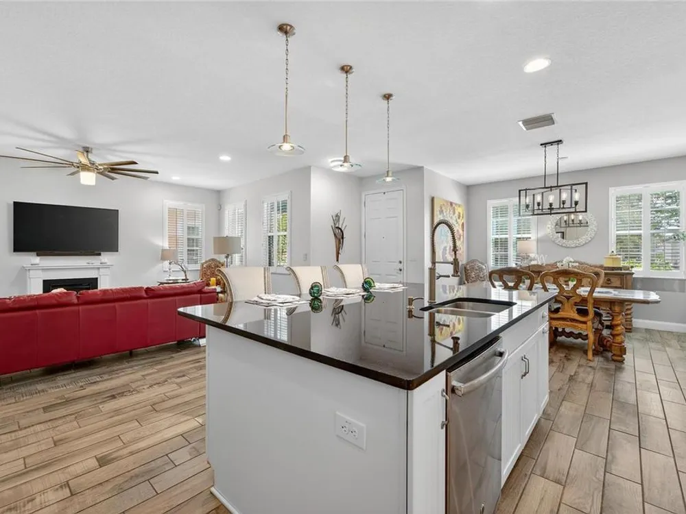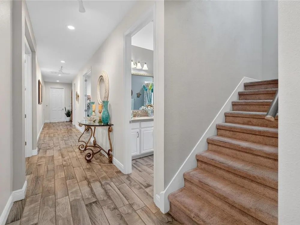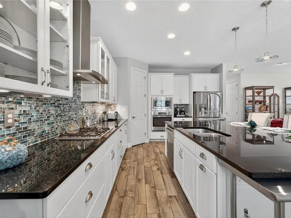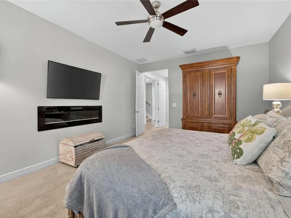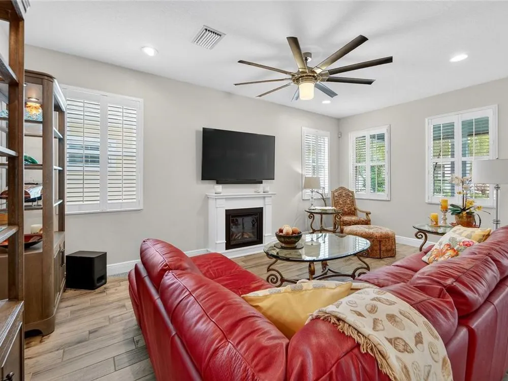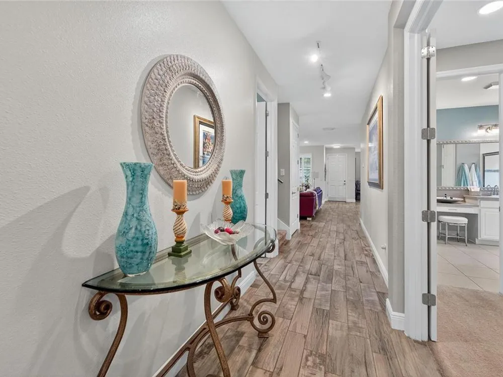 Welcome Home to MiraBay – Southern Hillsborough County’s Premier Waterfront Community! This stunning home offers over 2,900 sq. ft. of living space with 4 bedrooms, 3 baths, an oversized bonus room, huge laundry work area and an inviting front porch. Enjoy first-class interior finishes throughout, including a gourmet kitchen with a large island, gas cooktop, stainless steel appliances, 42” light-painted cabinets, Zodiac quartz countertops, and a decorative glass backsplash. The open kitchen flows seamlessly into the bright and airy great room, featuring wood plank tile flooring, 8 ft. interior doors, 5¼" baseboards, and plantation shutters. The luxurious first-floor primary suite includes a spacious walk-in closet, dual sinks, premium cabinetry and countertops, and a generous walk-in shower. Upstairs, a large bonus room and two additional bedrooms (one with a custom shiplap accent wall) share a beautifully appointed full bath. The landscape and architectural lighting in the front of the house is high voltage, hard-wired and permanently installed. Located in the maintenance-free Bay Breeze section of MiraBay, HOA fees include landscaping, irrigation, and interior water. Residents enjoy resort-style amenities: a clubhouse with café, fitness center, spa, resort pool with slide and swim lanes, tennis courts, fishing pier, and kayak/canoe access to Tampa Bay through the scenic lagoon. Experience coastal living at its finest in this sought-after gated community!