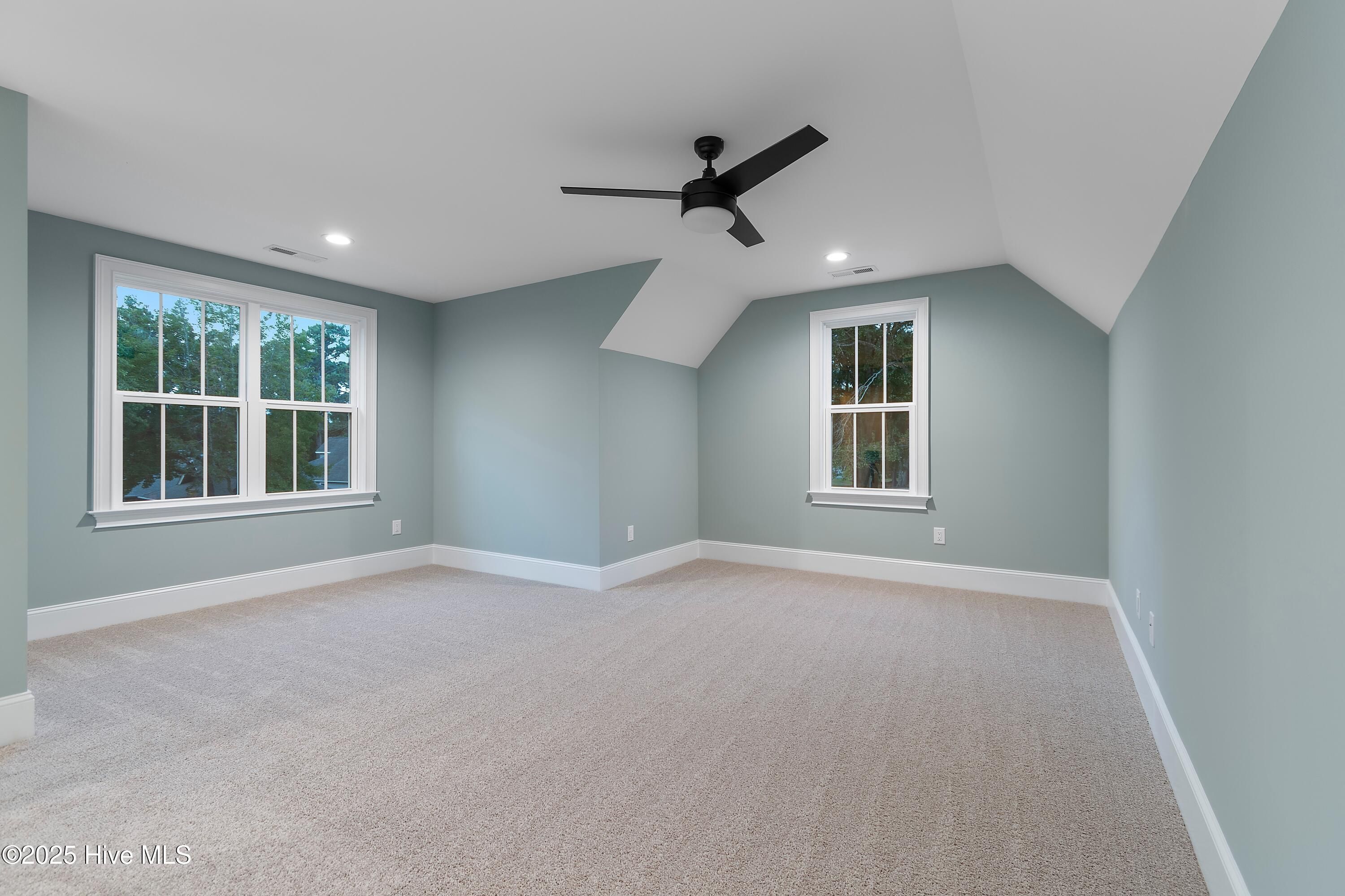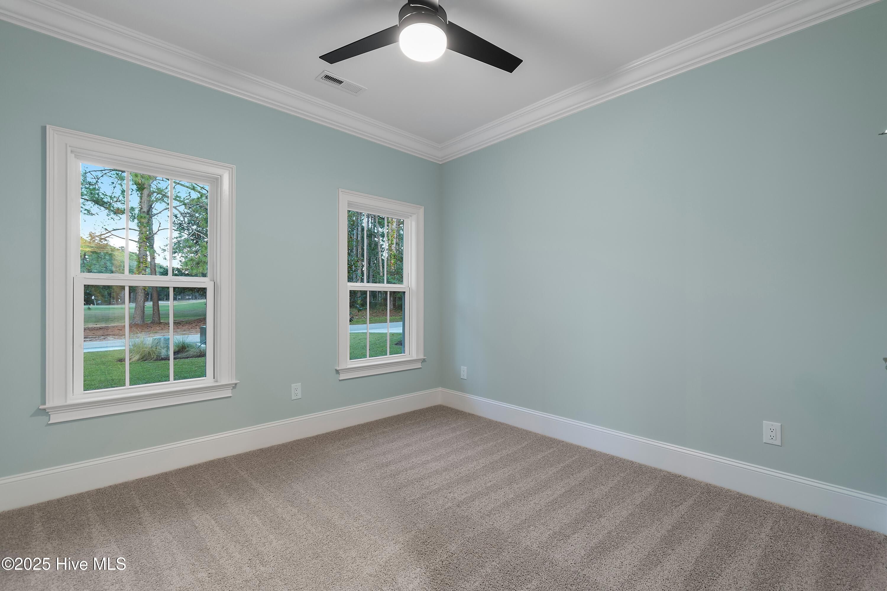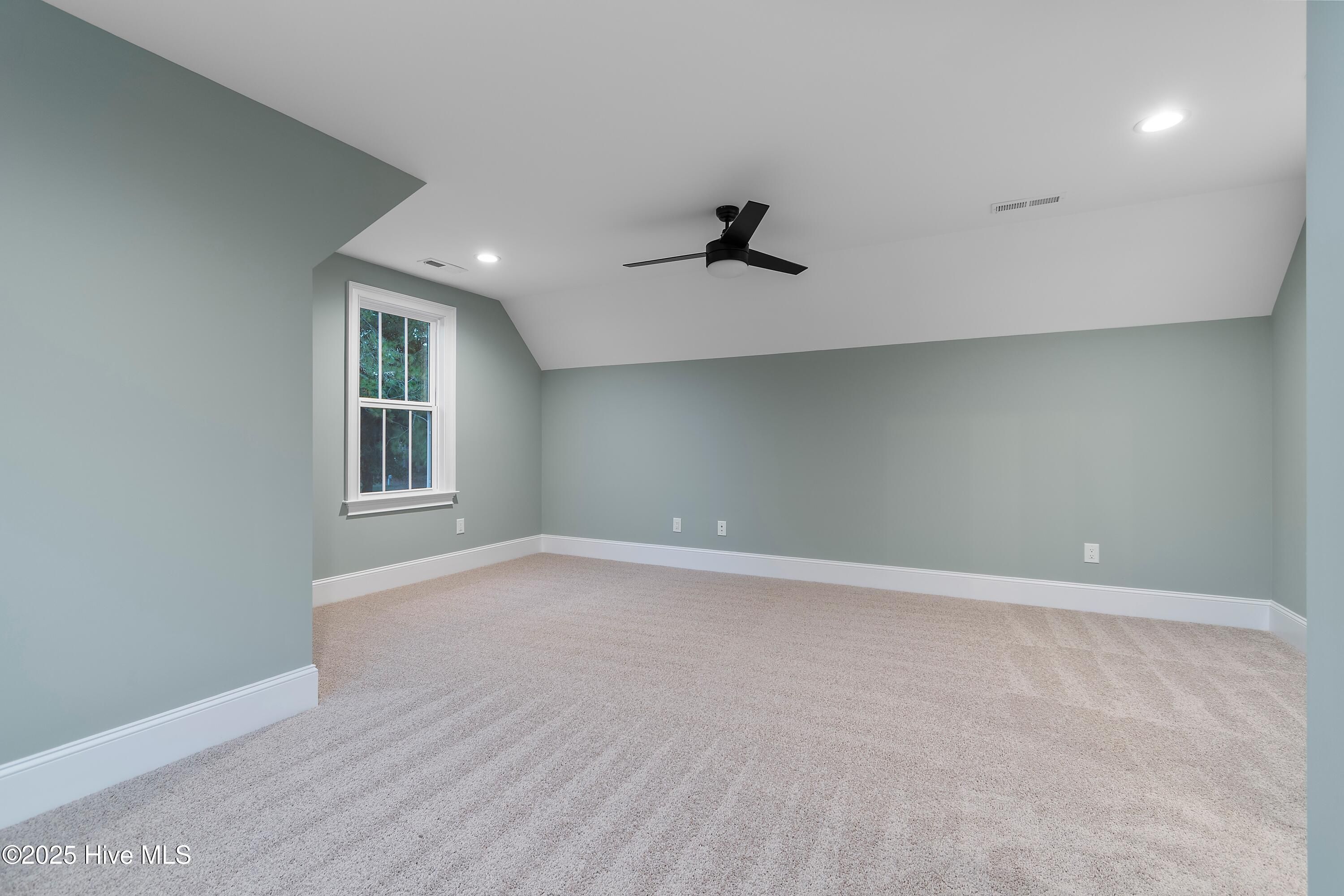 This brand new Riptide home with stunning setting and finishes is move-in ready! With beautiful golf course views from the front and rear of the home and shade trees surrounding the property, this home site is a gem. Both the exterior and interior boast a modern, appealing, coastal craftsman style. Trim detail in the main area of the home includes wainscoting in the foyer and dining area, a vaulted ceiling in the living room with faux wood beams, and a 36'' ventless gas fireplace with shiplap surround. The 4-panel telescoping sliding glass doors to the porch add to the open and airy feel of this home. High-end laminate flooring adorns the living, dining and kitchen areas, with tile in laundry and bathrooms and carpet in bedrooms. The gourmet kitchen includes soft-close cabinetry, a large island, quartz counters, stainless steel apron sink, and under-cabinet lighting. You will LOVE this walk-in pantry with barn door entry, butcher block counters and shelving! Those who enjoy cooking and entertaining will love the LG appliance suite, consisting of a wall/microwave oven combo, 5 burner gas cooktop, dishwasher, and vented hood. The primary suite is your retreat at the end of the day, with its luxurious spa-like feel. Features include a vaulted ceiling with faux beams, huge walk-in closet with melamine shelving, dual sink vanity, linen closet, and a zero-entry tiled shower with LED lit wall niche. The downstairs guest bathroom contains a tub with tiled shower surround and another LED lit wall niche. Imagine yourself enjoying mornings and evenings on your graciously sized, tiled, screened porch, watching the wildlife and the golfers pass by. Guests visiting? They can enjoy the bonus room with its own bathroom and closet as their private quarters. Exterior features of this home include James Hardie siding with stone accents, lush landscaping, and zoned irrigation with drip lines. Other desirable features of this home include a zoned HVAC system, tankless propane water