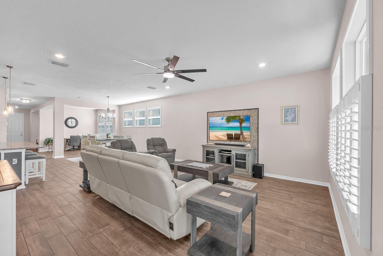 Welcome to this gorgeous David Weekley home located in the gated 55+ community of Encore at FishHawk Ranch West. This 2-bedroom, 2-bath residence sits on an oversized premium lot backing to serene conservation, offering no rear neighbors and peaceful, open views. Move right in—this turnkey home is being sold fully furnished with décor and essentials included. Inside, the home features a spacious open floor plan with soaring ceilings and abundant natural light. Wood-look tile flows throughout the entire home for durability and easy maintenance. The kitchen is thoughtfully designed with granite countertops, ample cabinetry, coordinating appliances, and a large center island with sink that also serves as a breakfast bar, ideal for casual dining and entertaining. The split bedroom layout provides privacy, with the primary suite serving as a relaxing retreat. It includes a generous walk-in closet and an en-suite bathroom with dual vanities and a large walk-in shower. Oversized rear windows and doors showcase the picturesque conservation views while filling the home with sunshine. Step outside to the screened-in back patio overlooking the expansive, pet-friendly fenced backyard, which is pool-ready and offers plenty of space to relax, entertain, or enjoy outdoor time with pets. Encore offers low-maintenance living while providing access to FishHawk’s renowned amenities along with Encore’s exclusive Oasis Club. Residents enjoy a heated infinity pool and spa, fitness center, yoga room, meeting space, and courts for pickleball, bocce ball, and basketball. This home seamlessly blends comfort, privacy, and resort-style living. Schedule your appointment today!