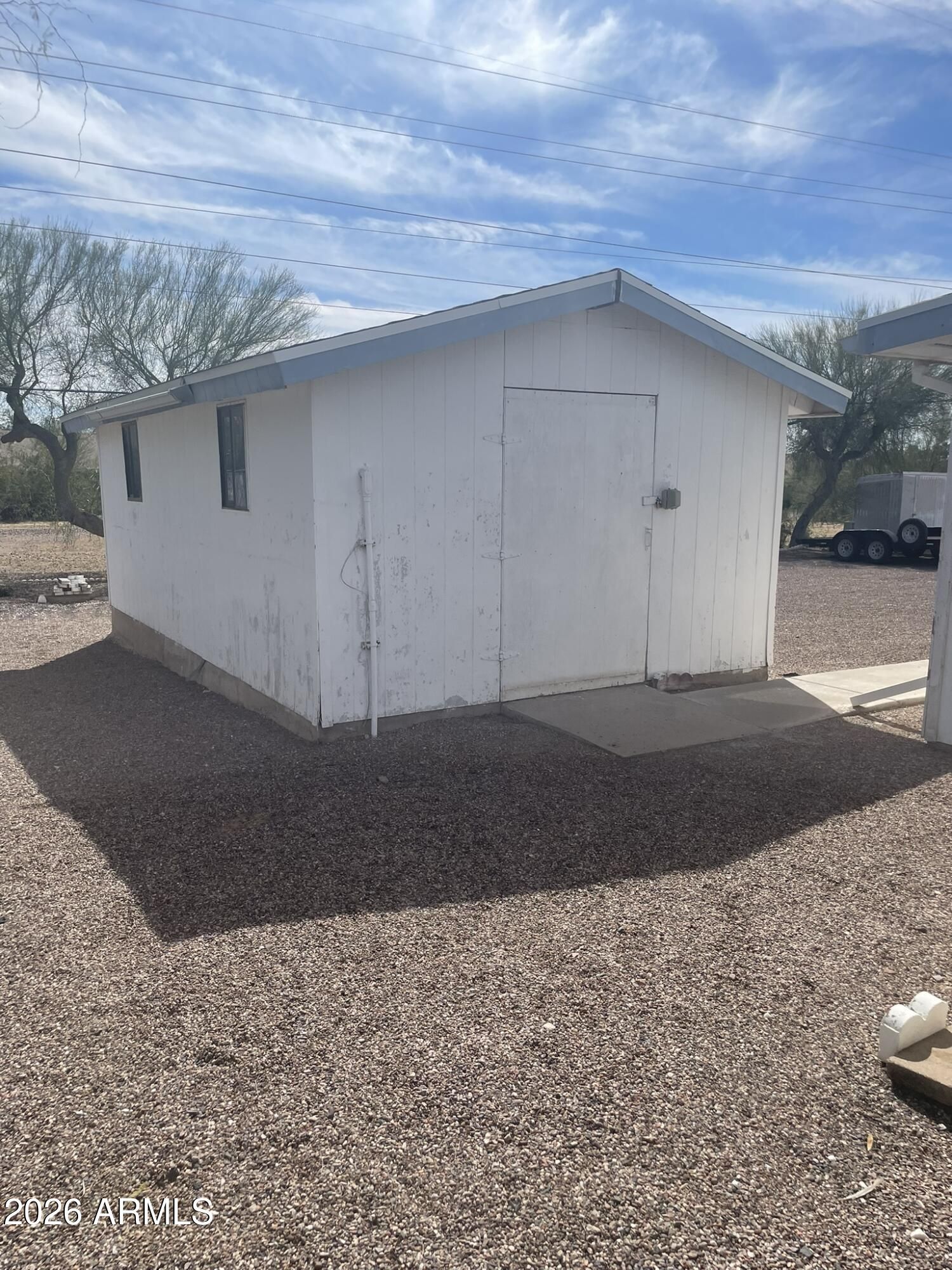 Popular Dreamland Villa 55+ community. This home is ready to move into. Clean and well maintain with two large bedrooms, beautiful glass doors going out into the large Az Rm. Painted kitchen cabinets, tile countertops, skylight making it light & bright. Good size breakfast room off the kitchen great for gatherings. Lots of storage in the laundry room with utility sink and private room with toilet and room for a sink to make this a half bath. Walk out to the backyard where you have a large workshop with electricity and backs up the the Nature Paths. Dreamland Villa has a community pool & pickleball courts lots of activities but you have to join. It is voluntary but it is worth joining. This home is priced to sell, you wont be disappointed.