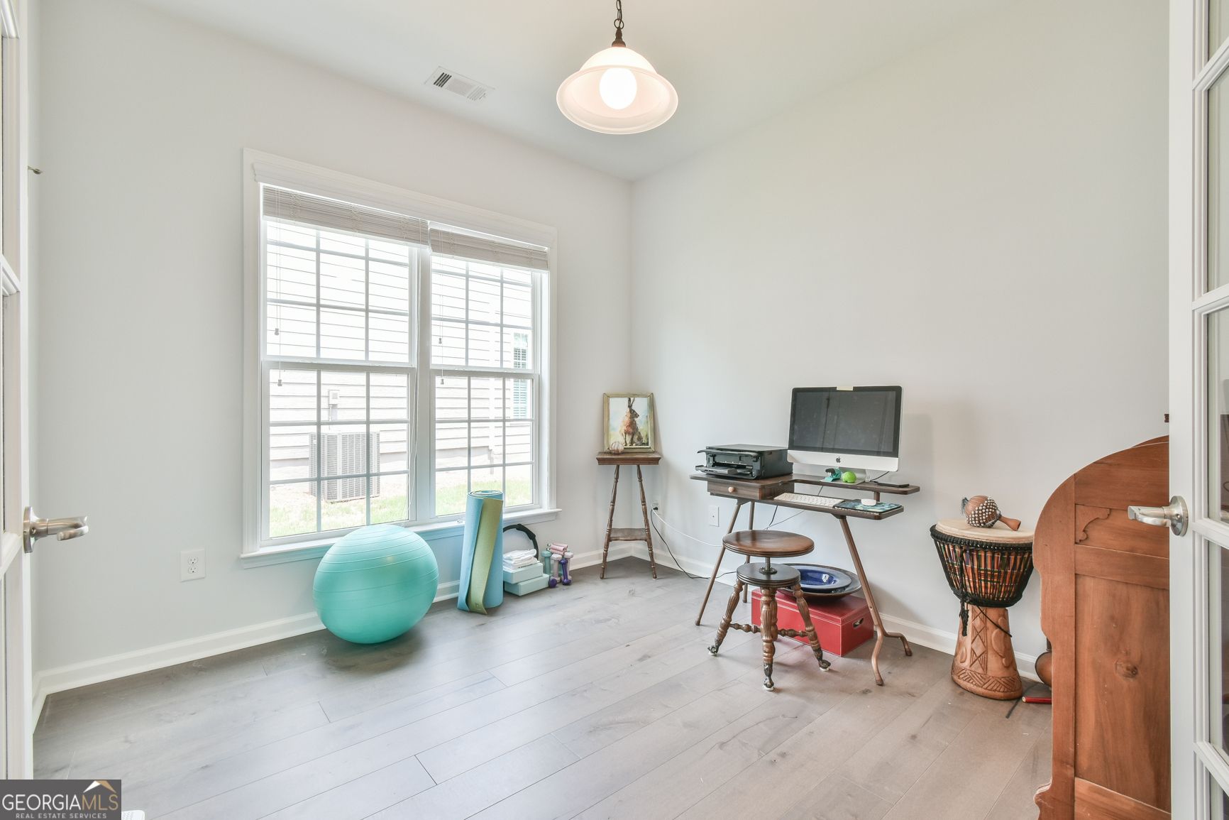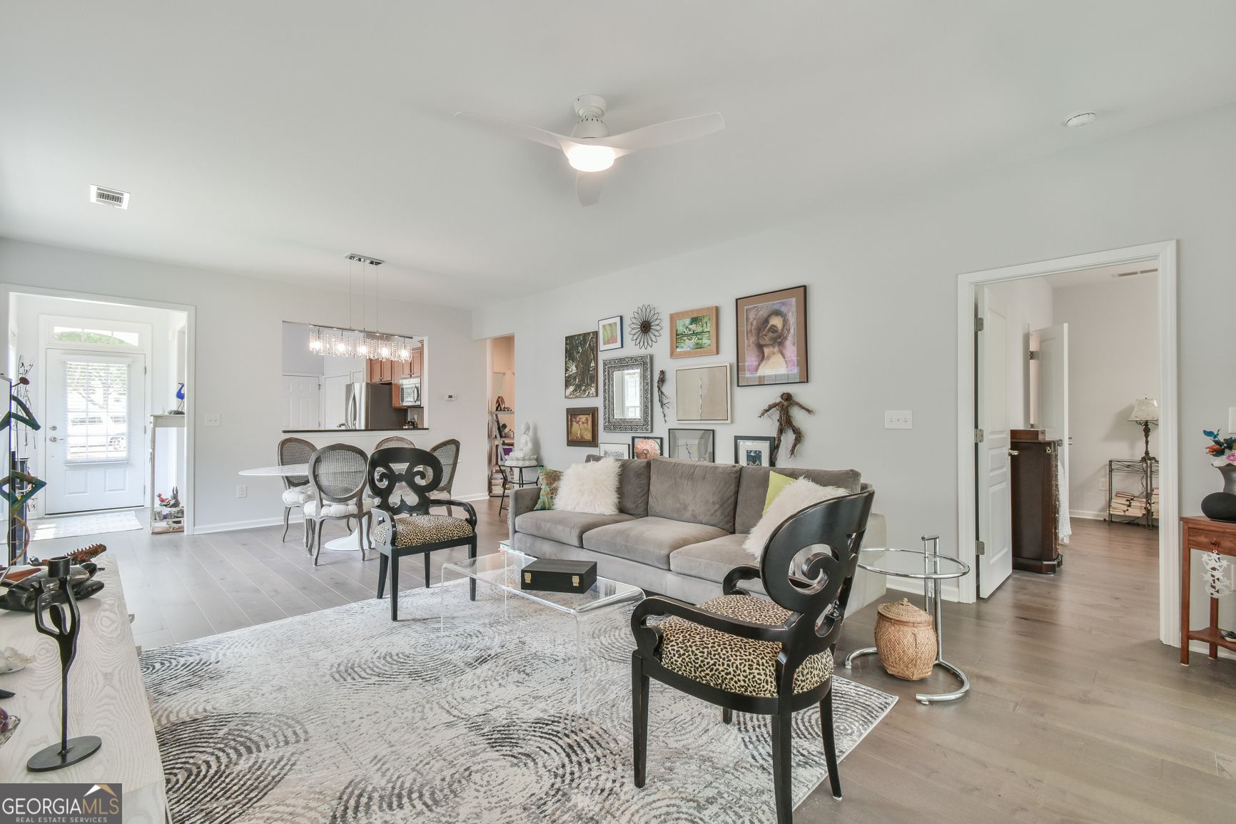 Village at Deaton Creek is a beautiful place to retire. Check out this pretty property. It's a Grey Mist home, 2-bed, 2-bath with office. This model has the kitchen in front of the home, so you conveniently can access the kitchen from the garage. When you walk in, you will feel the light, airy openness of this home. It's very bright and welcoming, and the home includes upgraded solid flooring throughout. It also includes a covered patio and an attractive dry creek bed in the backyard. Since this street sits above the street behind it, you will not be looking into your neighbor's patio. All appliances (including a washer and dryer) are included. The roof is 4 years old, and the HVAC has been regularly serviced. Village at Deaton Creek is like living in an adult summer camp. It is warm and welcoming and includes numerous clubs and other activities each month. Come visit today and discover what Active Adult living is all about!