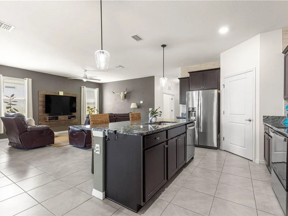 - Kitchen/Family Room Combo, Living/Dining Room, Open Floorplan, Main Level Primary, Stone Counters, Walk-In Closet(s), Window Treatments