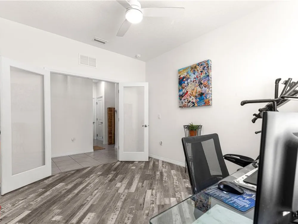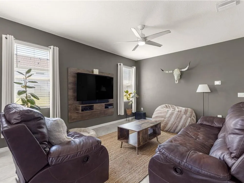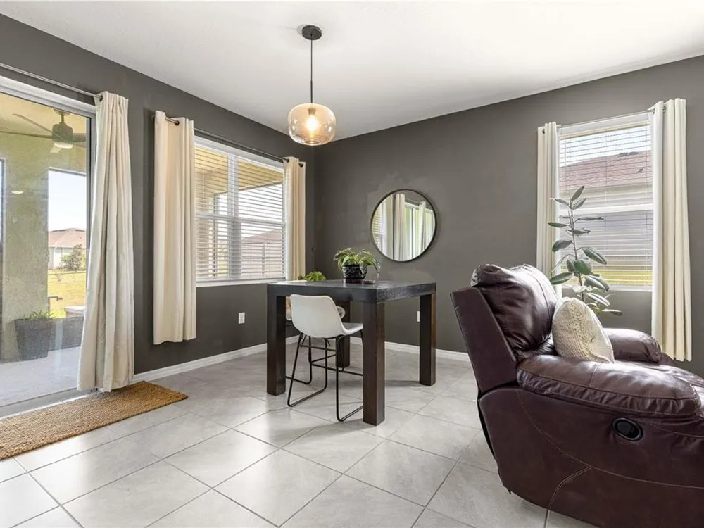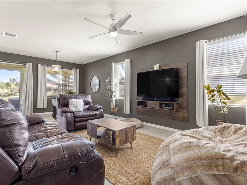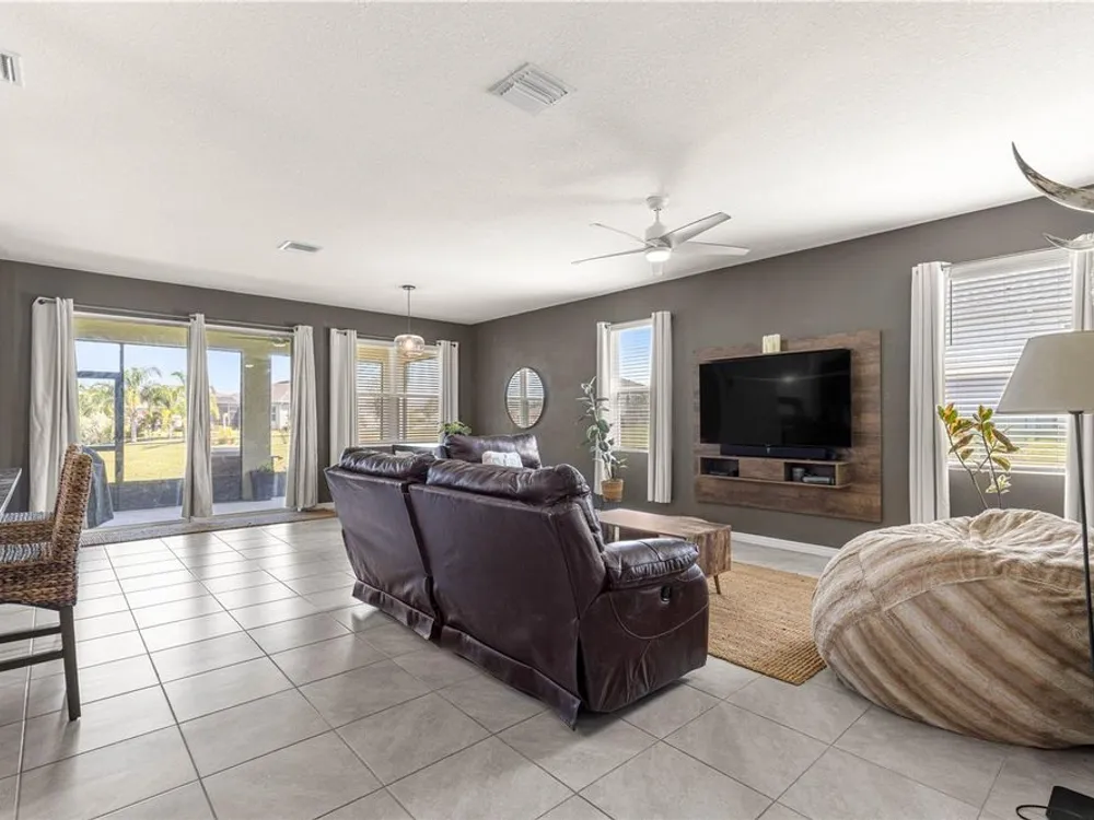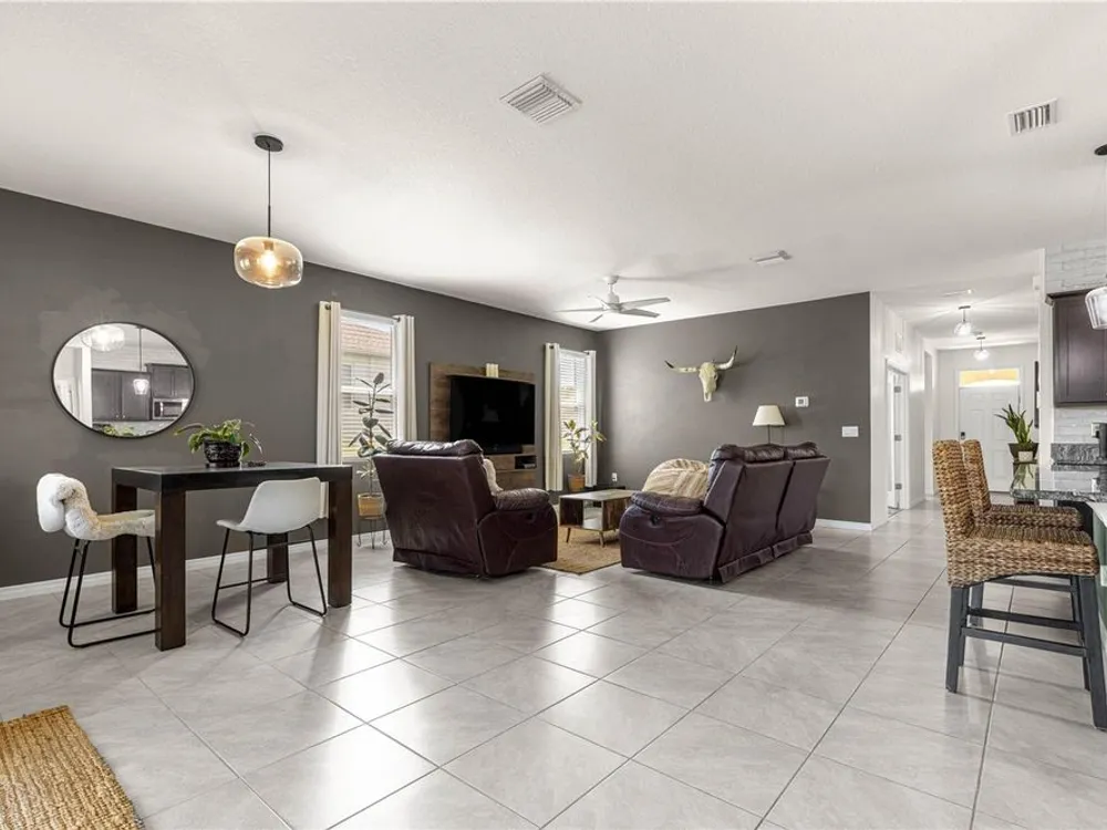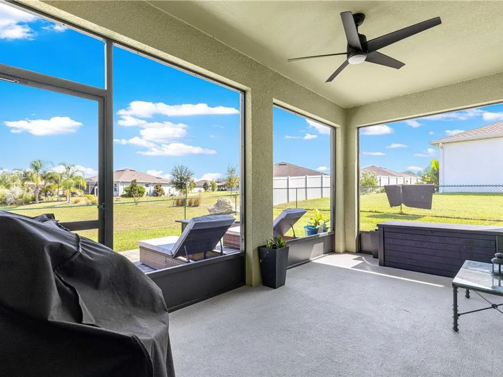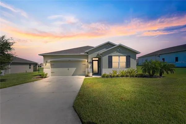 Amazing Clifton model in JB Ranch with tons of upgrades, priced to sell, and with a private backyard designed for relaxation! No carpet here- tiled floors in the main areas and beautiful LVP in the bedrooms and flex room. There are two walk-in closets for the primary ensuite bedroom, giving you extra storage. The owners have installed designer ceiling fans and a bedroom chandelier and the home has recently had paint upgrades. The kitchen is a chef's delight, with lovely granite counters, upgraded backsplash, and a walk-in pantry. Other features include a screened in lanai, pavered patio, a fenced in yard for your furbabies, gutters, irrigation system, and a water softener in the garage. This home backs up to a large retention area in the center of the quiet and desirable JB Ranch community, which is conveniently located to shopping, dining, hospitals, and major roads. You can't build new with all these features for this price...make your appointment to view before it's gone!