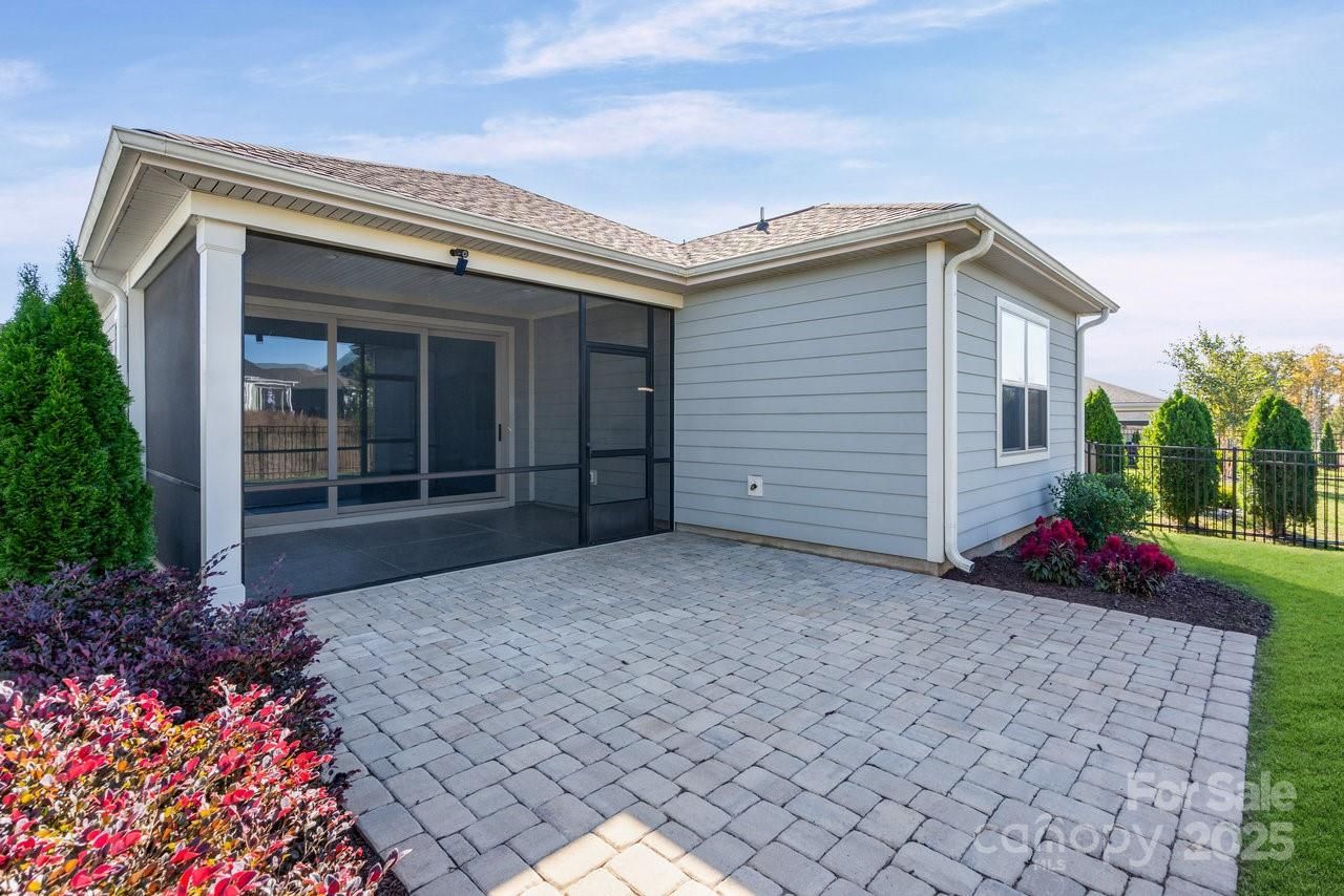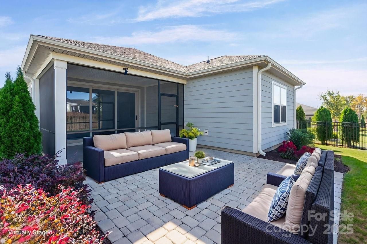 Make yourself comfortable and enjoy the open-concept Glory floorplan. With an amazing use of function and space sitting on a premium, lot this home offers privacy and borders a common open area. Split 2BR, 2B home w/2 Car garage (epoxy floor) features decorator colors, lighting & finishes. A well-appointed kitchen anchors the main living area & includes stainless steel appliances, gas range, granite countertops, pendant lighting, light craftsman style cabinetry and island breakfast bar. The great room features a gas log fireplace and flows seamlessly thru the sliding wall of glass to a screened lanai (epoxy floor for easy maintenance) on to an extended paver patio and rear fenced yard with unobstructed views. A serene primary suite completes this home & ensuite bath w/dual sink vanity, generous walk-in closet and tiled shower. Low maintenance LVP and tile flooring throughout. Large laundry room adds additional storage. Trilogy Membership includes Freedom Boat Club on Lake Norman plus award winning amenities