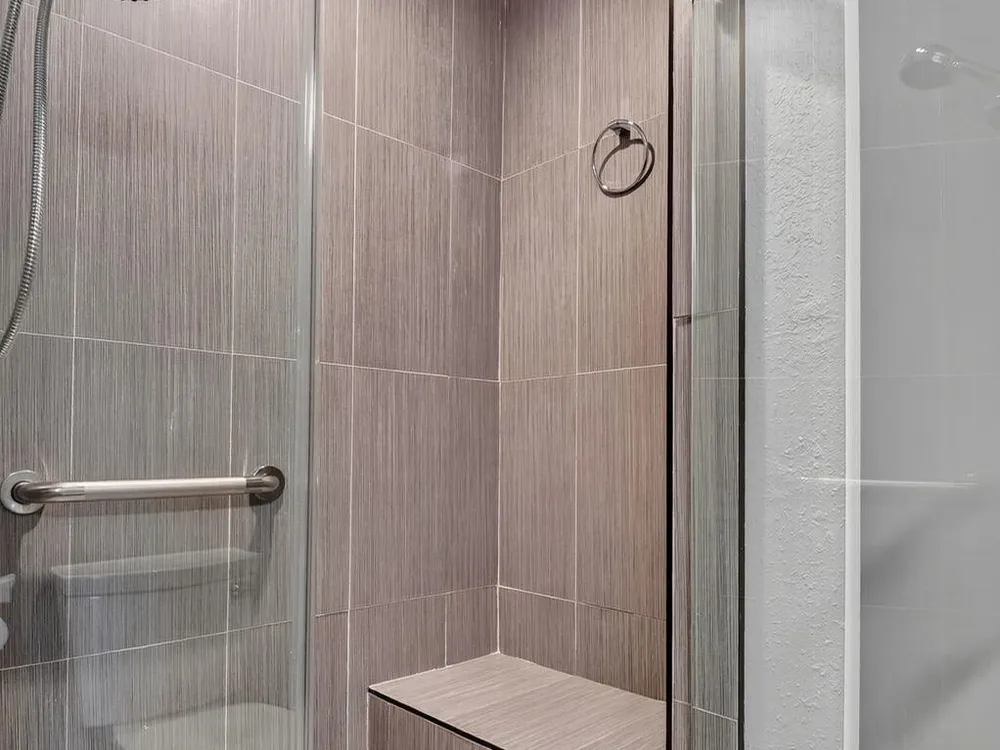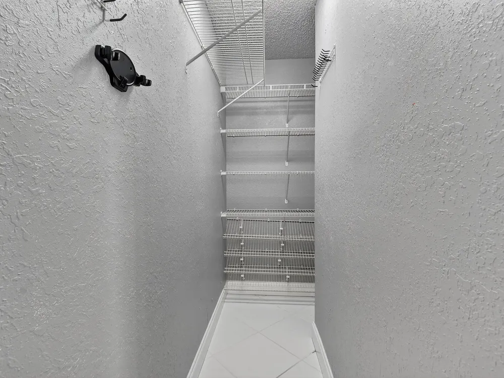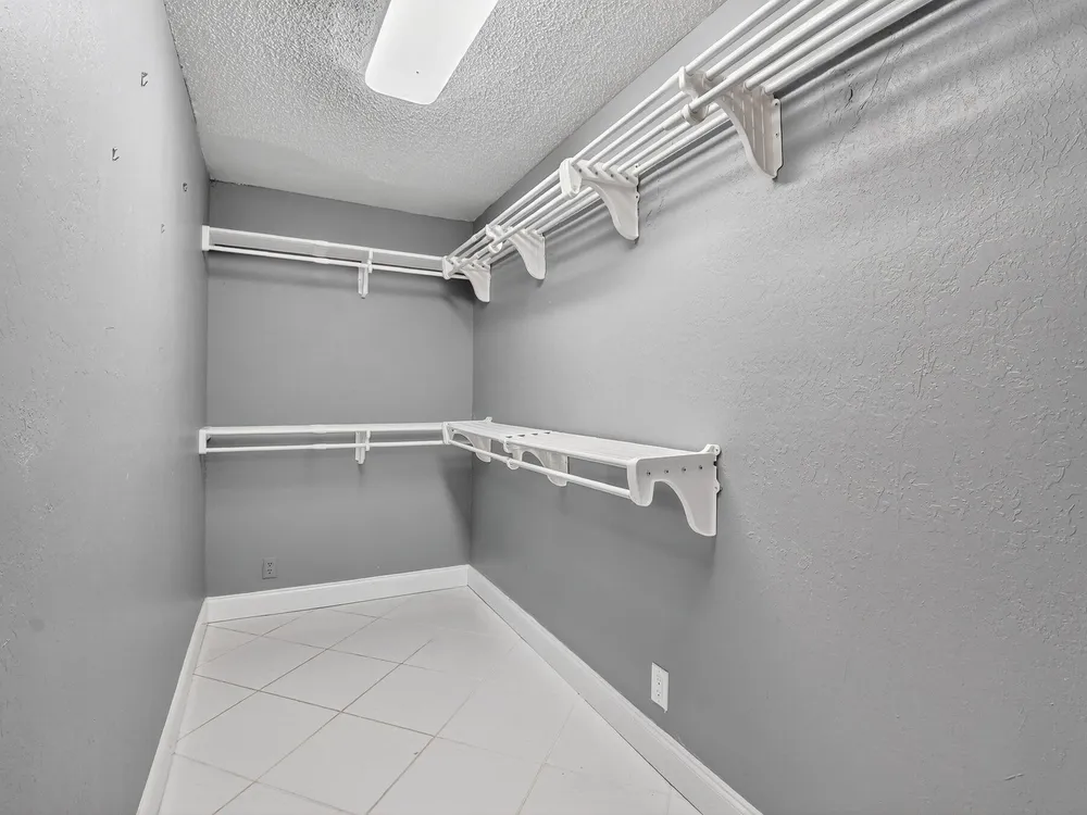 Discover the largest one-bedroom condo in Kings Point, originally a two-bedroom thoughtfully converted into a spacious one-bedroom retreat. This unique layout boasts an expansive 5' x 13' walk-in closet plus an additional 8' x 3.5' closet, providing exceptional storage rarely found in a condo. The kitchen has been beautifully opened up and upgraded with custom cabinetry, quartz countertops, and a stylish glass tile backsplash, creating a modern and inviting space. Both full bathrooms have been recently updated with elegant tile finishes and sleek glass shower doors. The bedroom opens directly to a stunning golf course view down the fairway, offering a serene and picturesque backdrop.