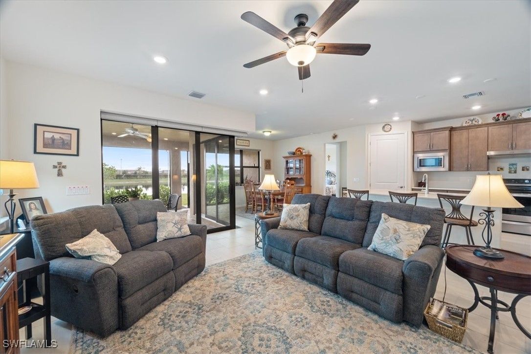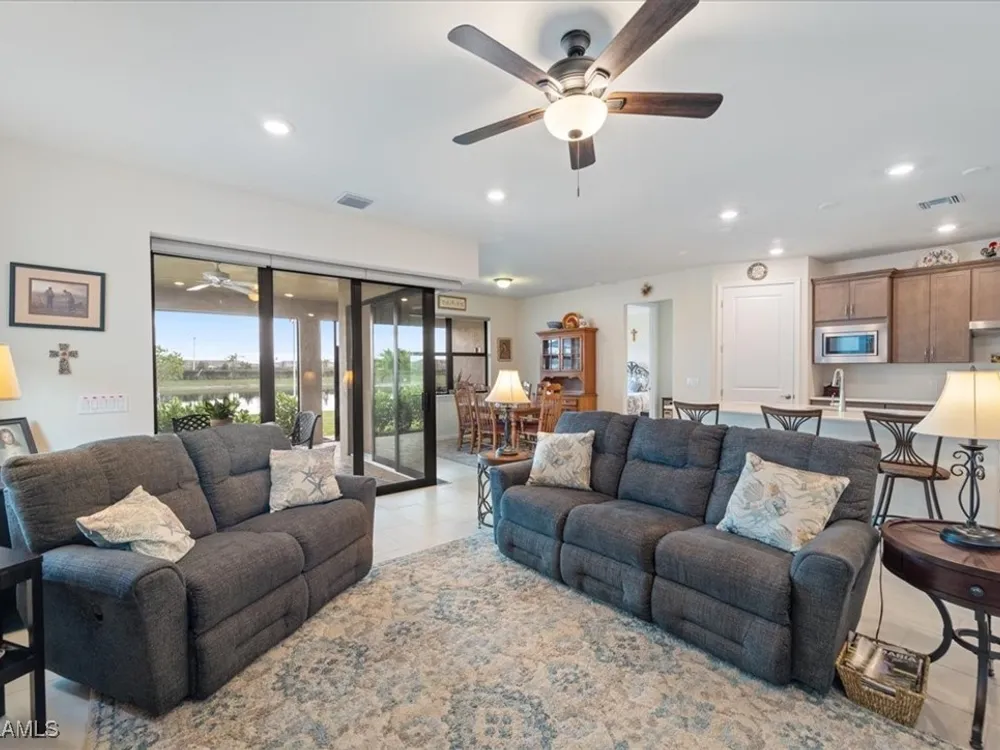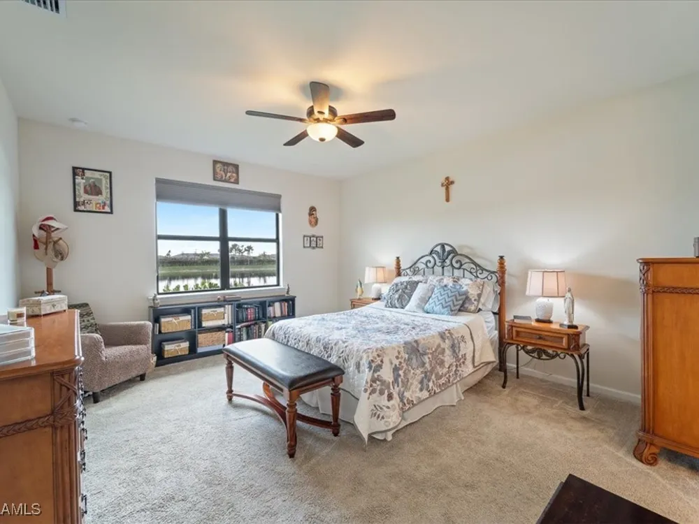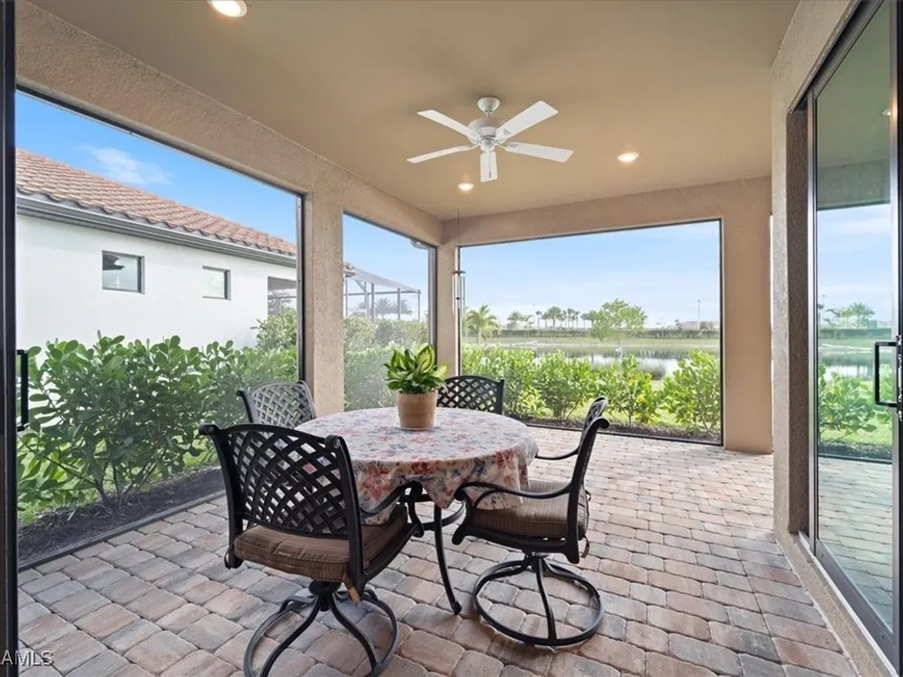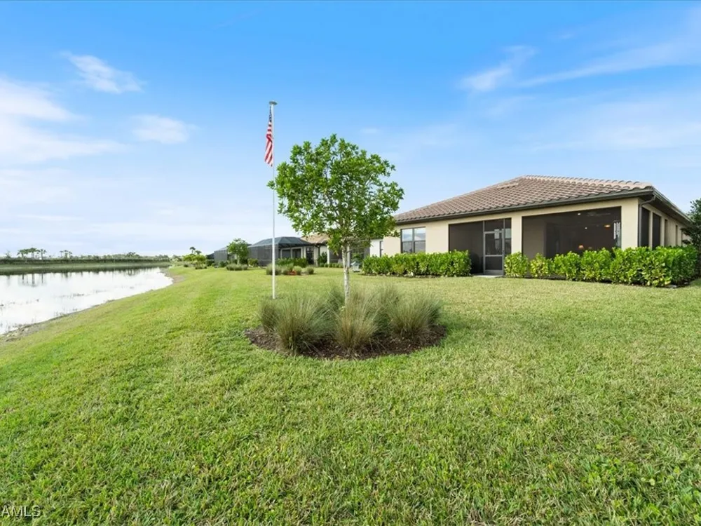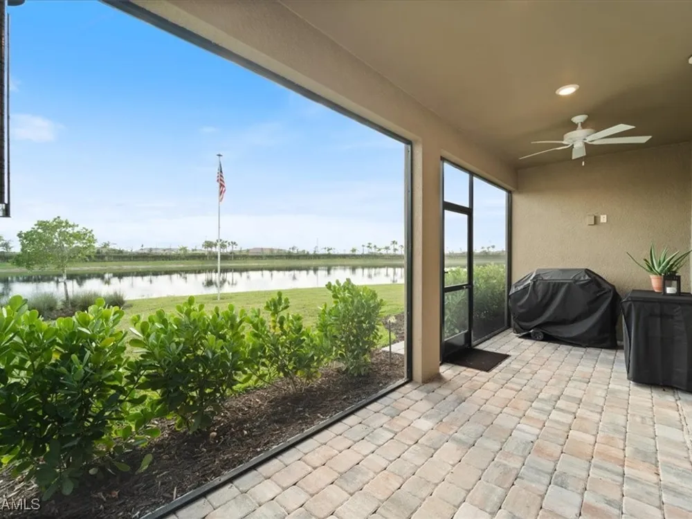 Welcome Home to this spectacular Pulte built Mystique home in the Del Webb 55+ community located in Ave Maria, FL. A beautiful lake view home located on a cul de sac. This home has been meticulously taken care of and features some upgrades. Kitchen cabinets topped with crown molding, soft close drawers and doors, SS appliances, large kitchen island, Quartz counters in kitchen and master bath, master bath tub and shower with frameless shower door, duel sinks, floor tiles upgraded and on the diagonal, zero corner slider, extended covered lanai, upgraded pavers to premium color. Amenities include 2 community center facilities, community pool and lap pool, spa, pickleball, library, cafe, large event room, fitness gym, card rooms, billiards and meeting rooms. Come experience life to the fullest where there are activities for everyone. Welcome Home!