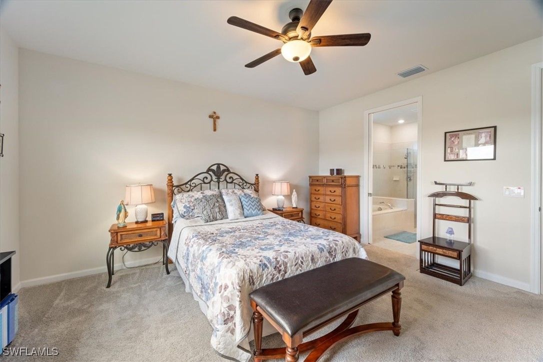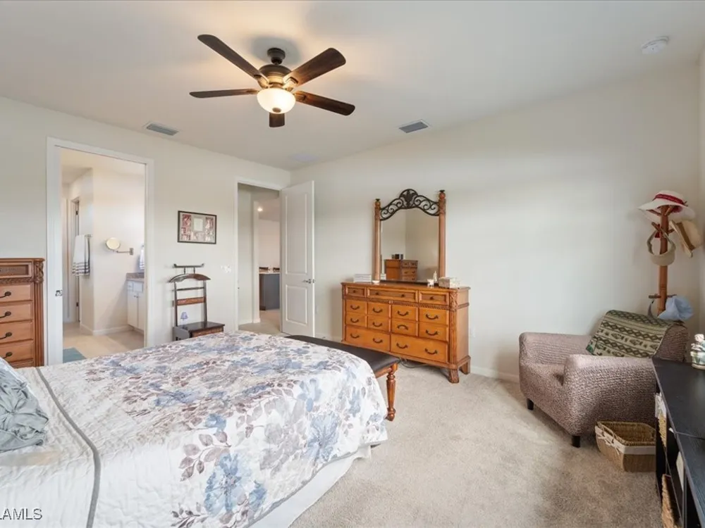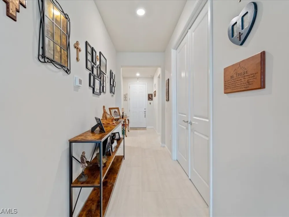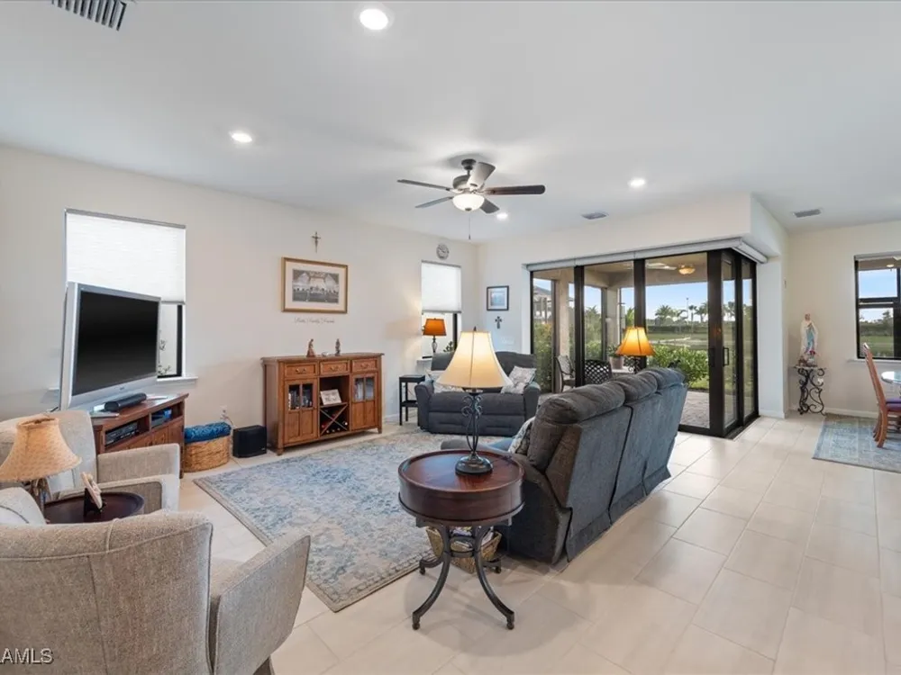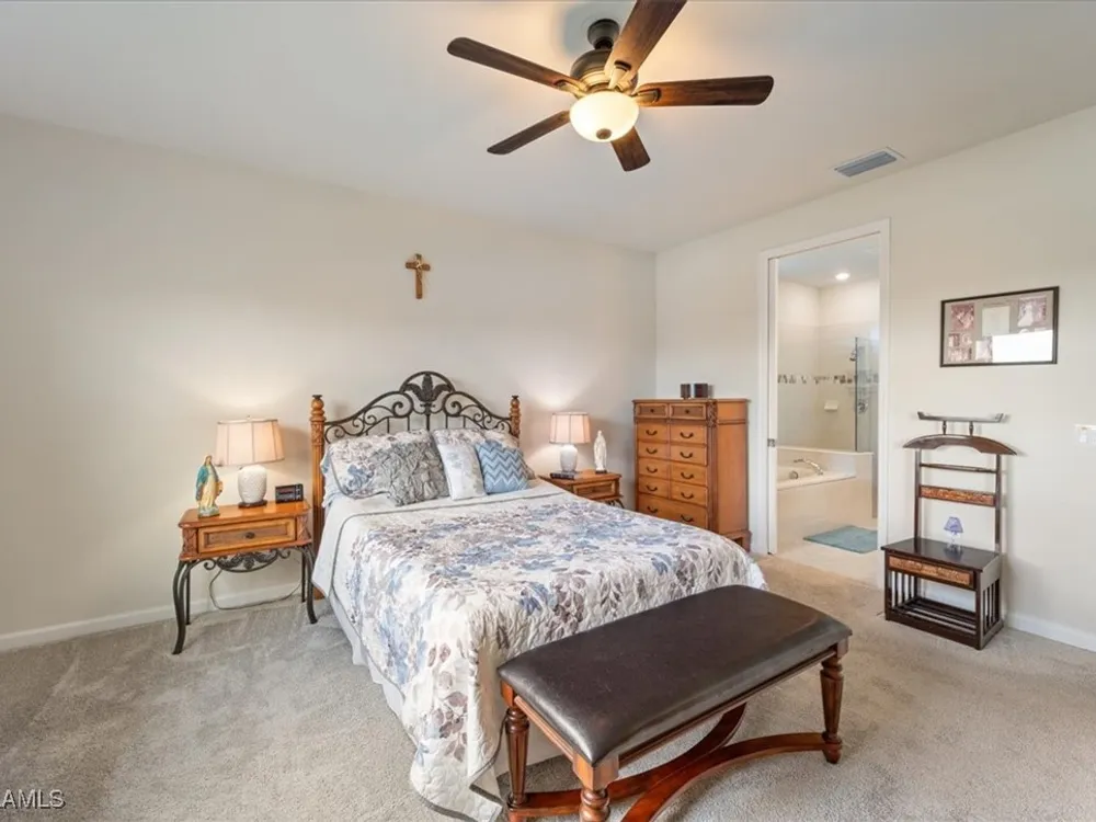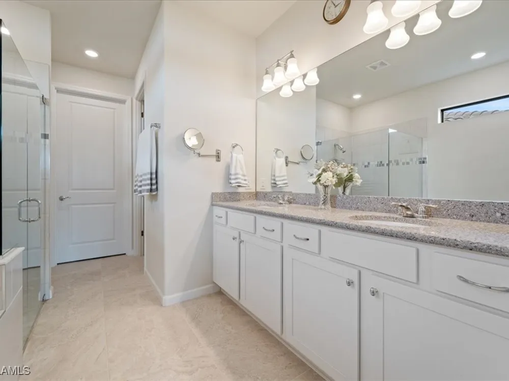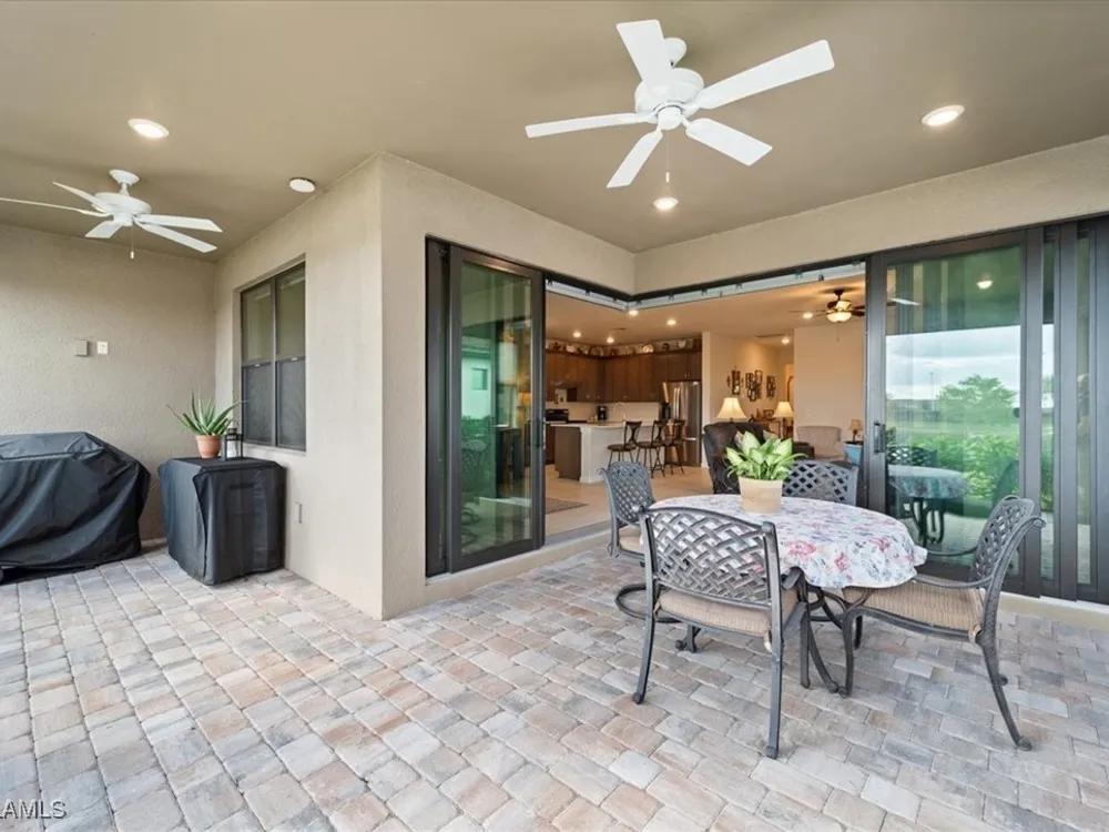Welcome Home to this spectacular Pulte built Mystique home in the Del Webb 55+ community located in Ave Maria, FL. A beautiful lake view home located on a cul de sac. This home has been meticulously taken care of and features some upgrades. Kitchen cabinets topped with crown molding, soft close drawers and doors, SS appliances, large kitchen island, Quartz counters in kitchen and master bath, master bath tub and shower with frameless shower door, duel sinks, floor tiles upgraded and on the diagonal, zero corner slider, extended covered lanai, upgraded pavers to premium color. Amenities include 2 community center facilities, community pool and lap pool, spa, pickleball, library, cafe, large event room, fitness gym, card rooms, billiards and meeting rooms. Come experience life to the fullest where there are activities for everyone. Welcome Home!