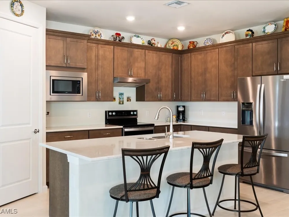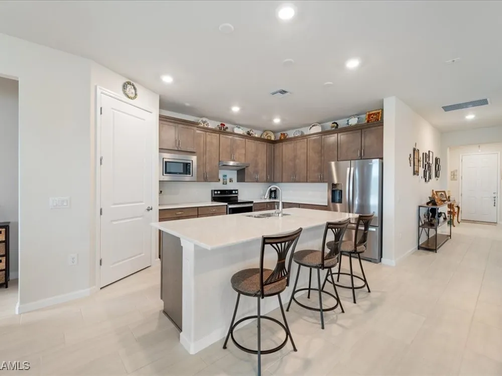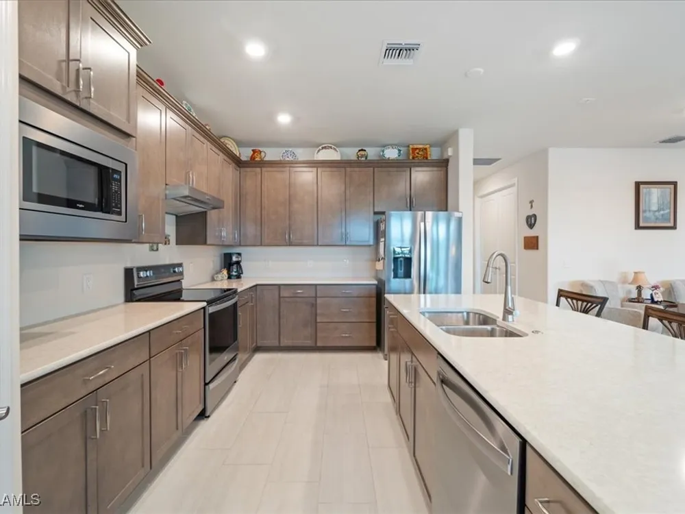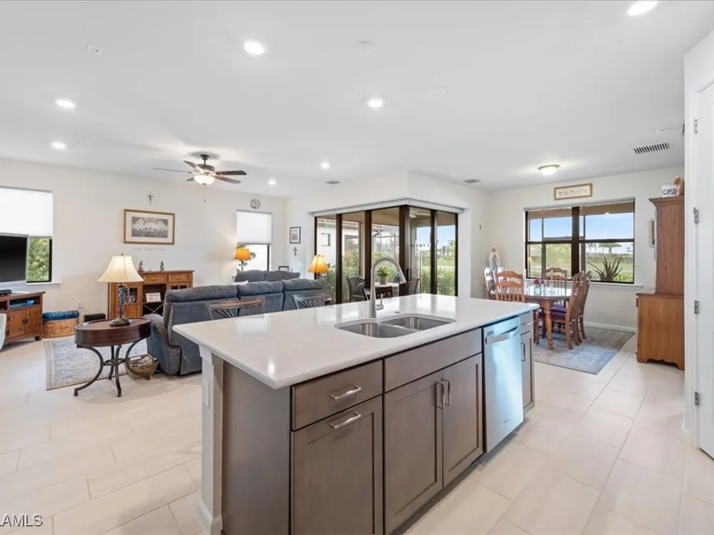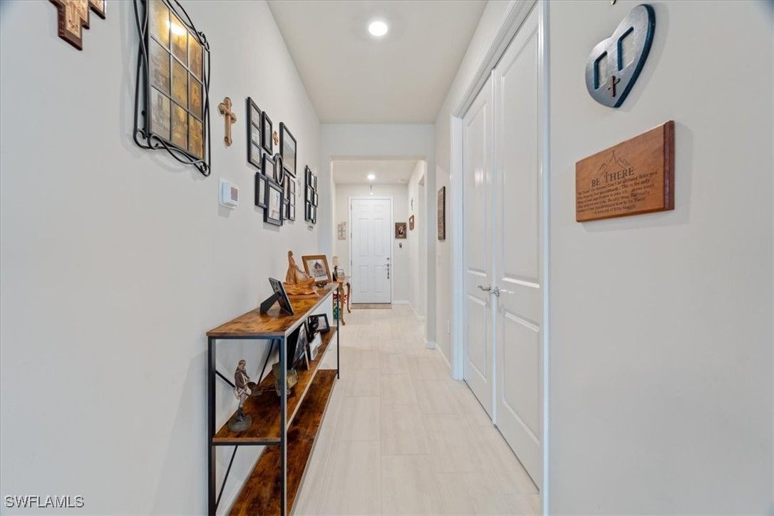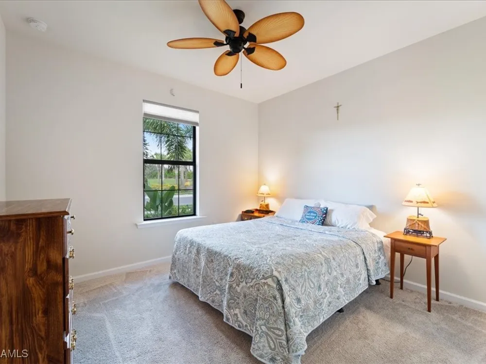 Welcome Home to this spectacular Pulte built Mystique home in the Del Webb 55+ community located in Ave Maria, FL. A beautiful lake view home located on a cul de sac. This home has been meticulously taken care of and features some upgrades. Kitchen cabinets topped with crown molding, soft close drawers and doors, SS appliances, large kitchen island, Quartz counters in kitchen and master bath, master bath tub and shower with frameless shower door, duel sinks, floor tiles upgraded and on the diagonal, zero corner slider, extended covered lanai, upgraded pavers to premium color. Amenities include 2 community center facilities, community pool and lap pool, spa, pickleball, library, cafe, large event room, fitness gym, card rooms, billiards and meeting rooms. Come experience life to the fullest where there are activities for everyone. Welcome Home!