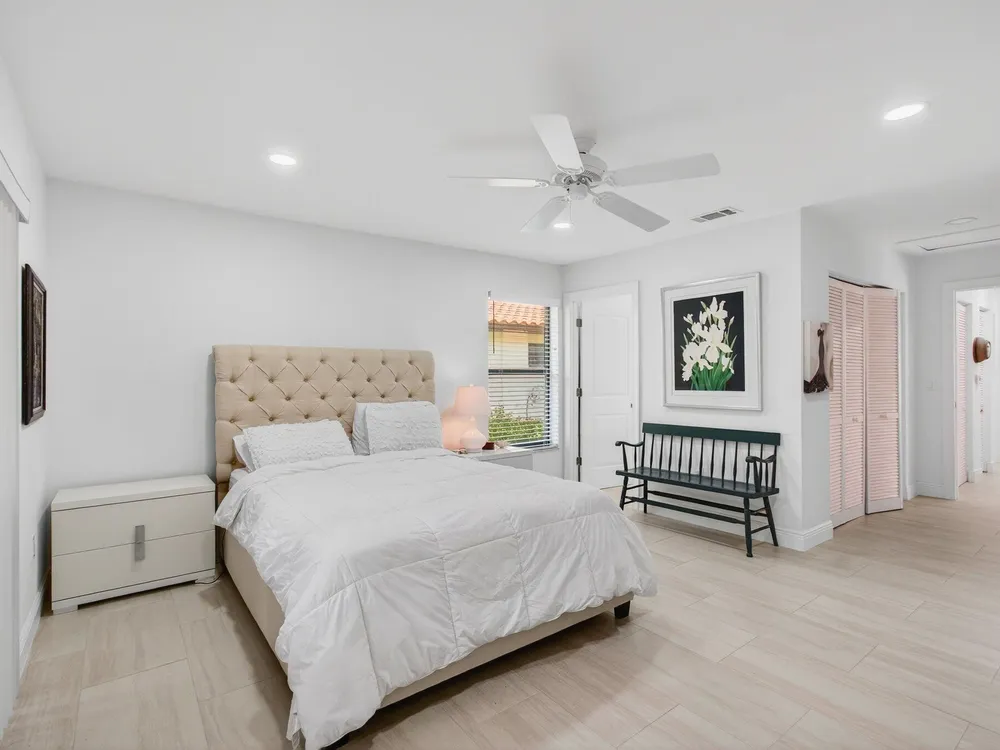 This unit has been completely renovated, neutral colors. Beautiful kitchen with island. Double sink in main bathroom. Pull out drawers in the kitchen, light grey large ceramic tiles throughout. Lots of closet space, top of line. Just bring your tooth brush and move in. 1 car garage and 2 parking spaces in front. Very active, 55+ community with all amenities, including a clubhouse, indoor and outdoor swimming pools, tennis, pickleball, fitness center and cafe.24 hour guard gated community.