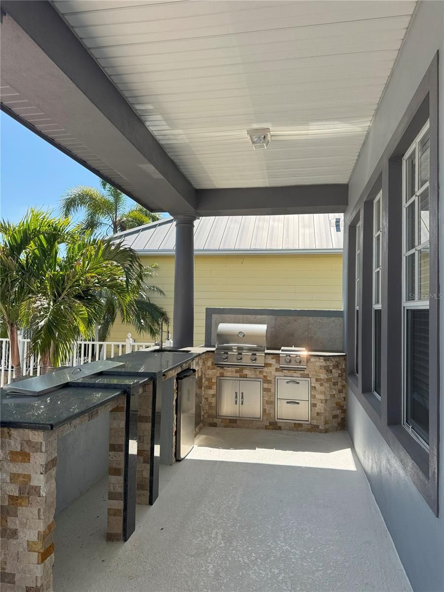 Gorgeous house with canal in Mirabay that Not require going through the locks to get out to the bay! waterfront home on a very quiet cul-de-sac with exquisite view of sunrise and sunset in true Florida style. As you enter the home, you are greeted with a grand open foyer featuring a large staircase with separate formal dining room and an office with French door. Take a tour of the expansive chef's kitchen that offers an island stove, hardwood cabinets, granite counter tops, and a separate breakfast area with natural lighting and water view. The living room offers lots of space for gathering and plenty of room to roam with the open floor plan. A private master suite is located on the first floor along with a suite bathroom featuring glass shoer, garden tub, and oversite walk-in closet. Open the French door and step out onto the covered porch for breathtaking sunset over the canal with a dock and the outdoor kitchen. The upper floor has a large open great room with cathedral ceilings with three bedrooms. Guest room 1 has a private bath and rooms 2 and 3 share a large jack and jill bathroom. There is plenty of room for 3 cars garage with a Tesla electric charger. Enjoy the true Florida lifestyle and bring your boat!!
