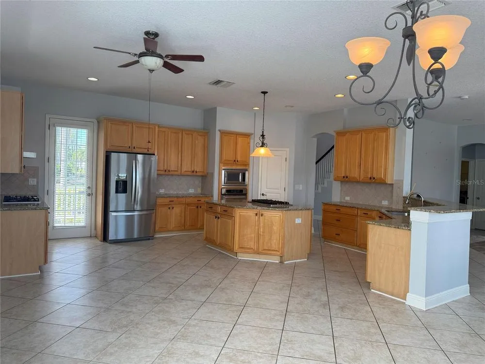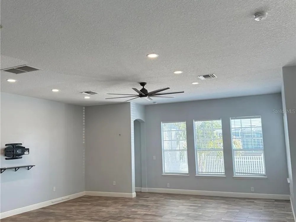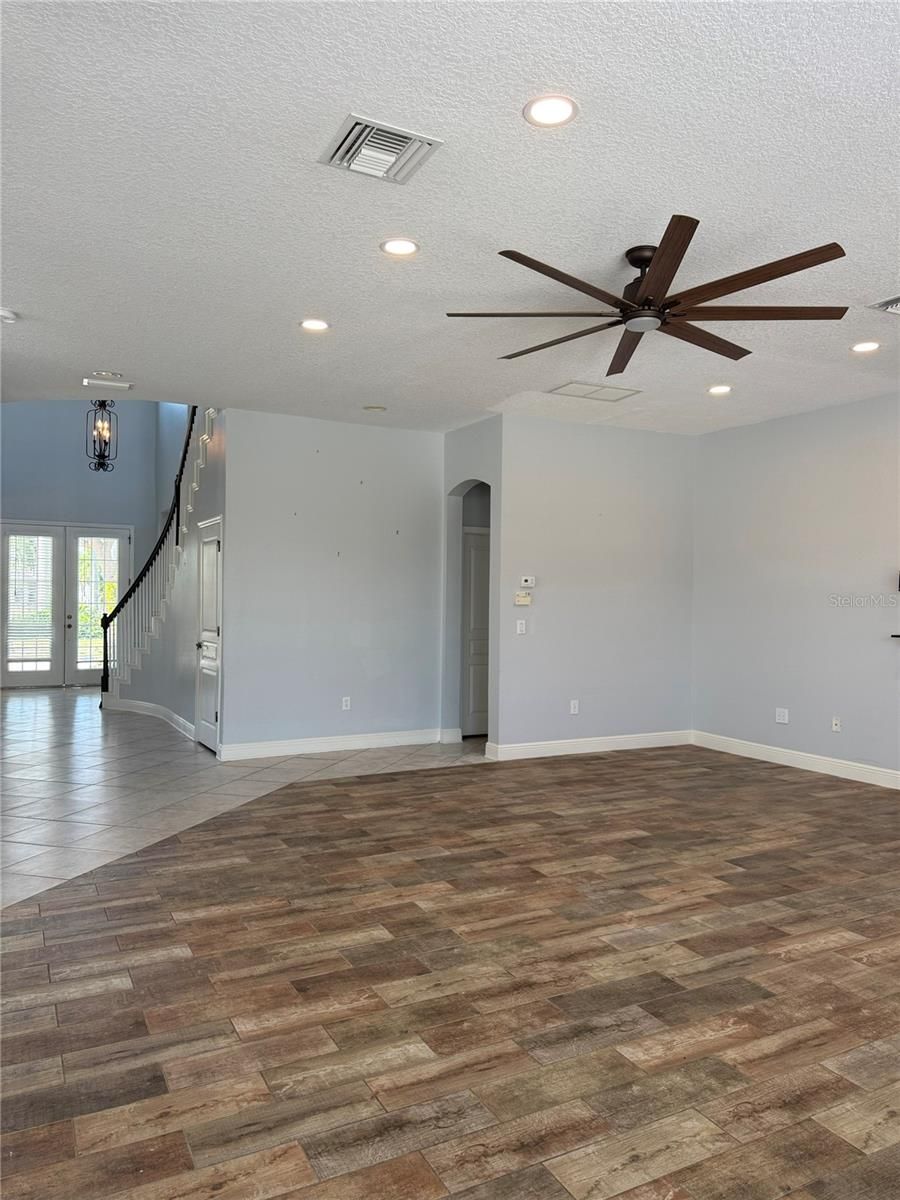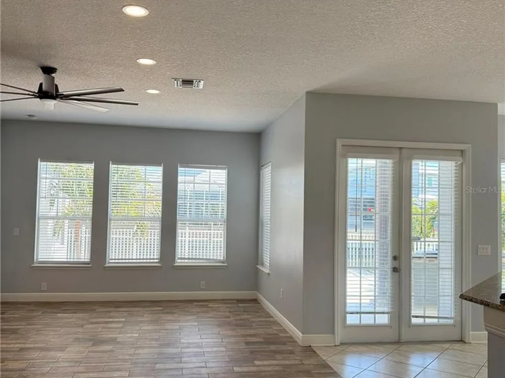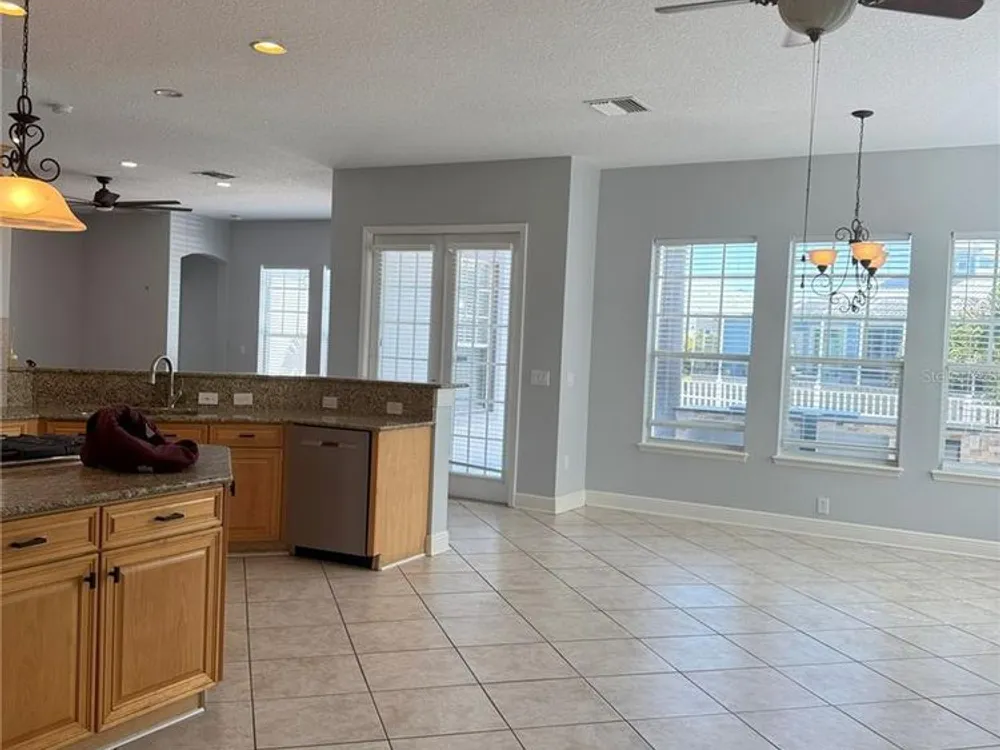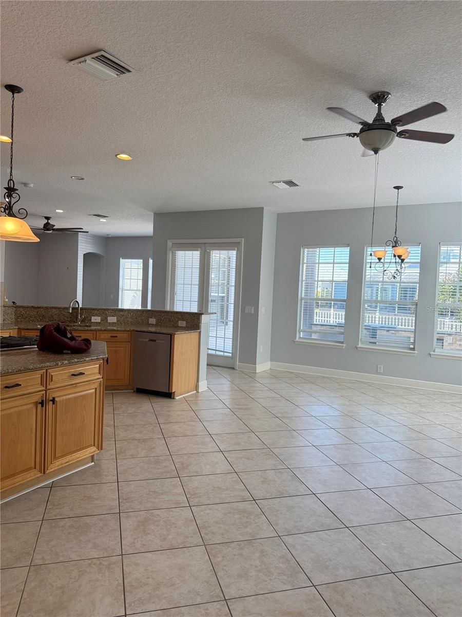 - Ceiling Fan(s), High Ceilings, Kitchen/Family Room Combo, L-Shaped Dining Room, Living/Dining Room, Open Floorplan