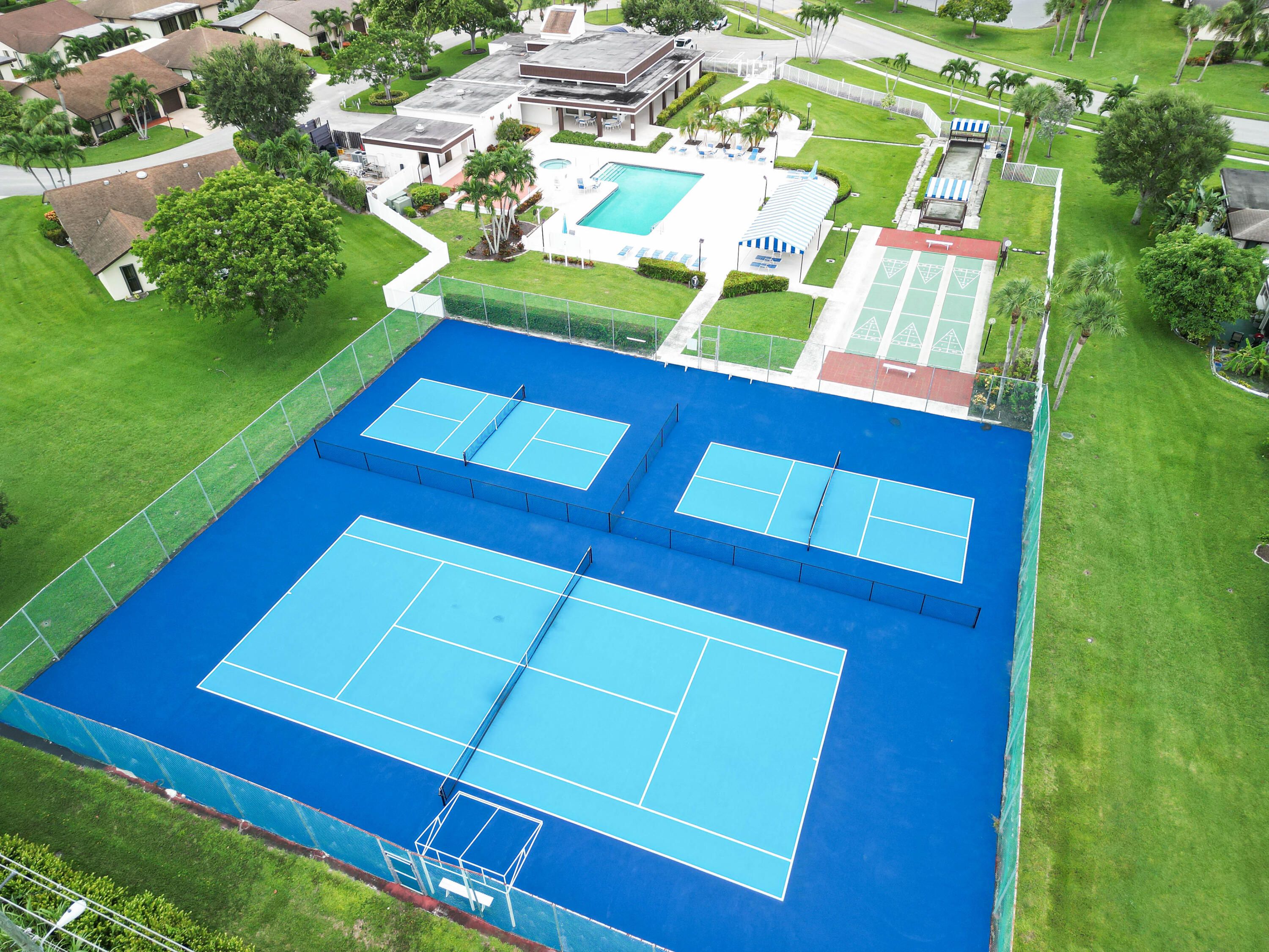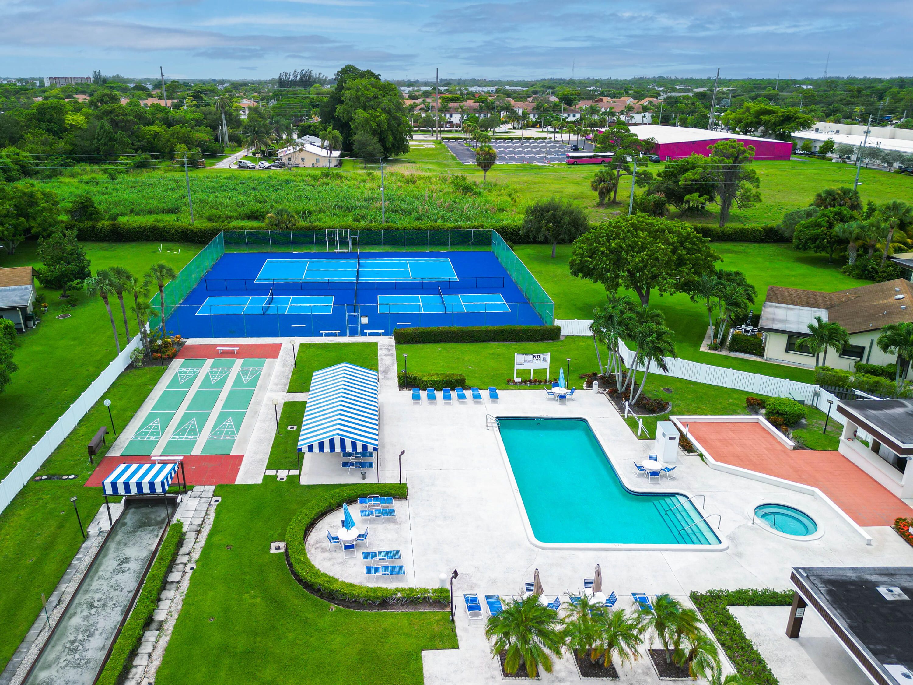 - Includes: Billiard Room, Clubhouse, Fitness Center, Game Room, Jogging Path, Picnic Area, Shuffleboard Court, Tennis Court(s), On Site Manager/Engineer, Bocce Court, Community Room, Internet Access, Library, Pickleball