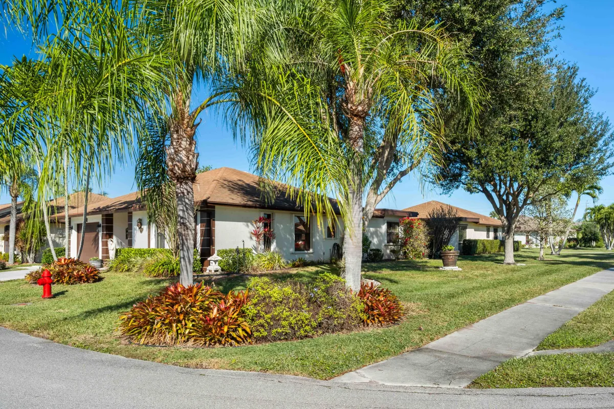 Beautifully Landscaped Corner Treed Lot boasting over 1500 SqFt of Living Space in desirable 55+ W/Garage! Updated Eat-In Kit w/Granite Counters, Stainless Appliances & Pull-Out Drawers. The Sprawling LR is adjacent to Formal Dining Area which flows into the 23ft Family Rm. Sliders lead to the Outdoor Patio w/Electric Awning & Hedges offering privacy. The Mstr Suite features Walk-in Closet & Bath w/updated Shower & Vanity. The Guest Bdrm on Opposite side of Condo offers Guests Max Privacy & is adjacent to Full Bath w/Tub. Windows were replaced & have Complete Set of Accordion Shutters incl. Front Door. The Garage equipped w/Stack W&D, Pull Down Stairs to Attic, Sink. Amenities incl. Active Clubhouse, Manager Onsite, Cable, Internet. Lawn Svc, Nite Guard, Pool, Pickleball, Tennis, & MORE