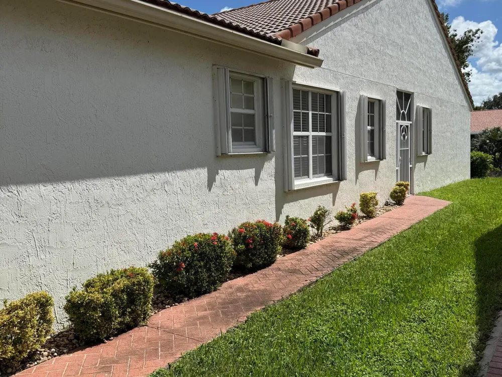 Great 2 bed plus den,1 car garage, waterfront villa in the desirable Floral Lakes community. A/C 2019, Water Heater 2015, Accordion Shutters.