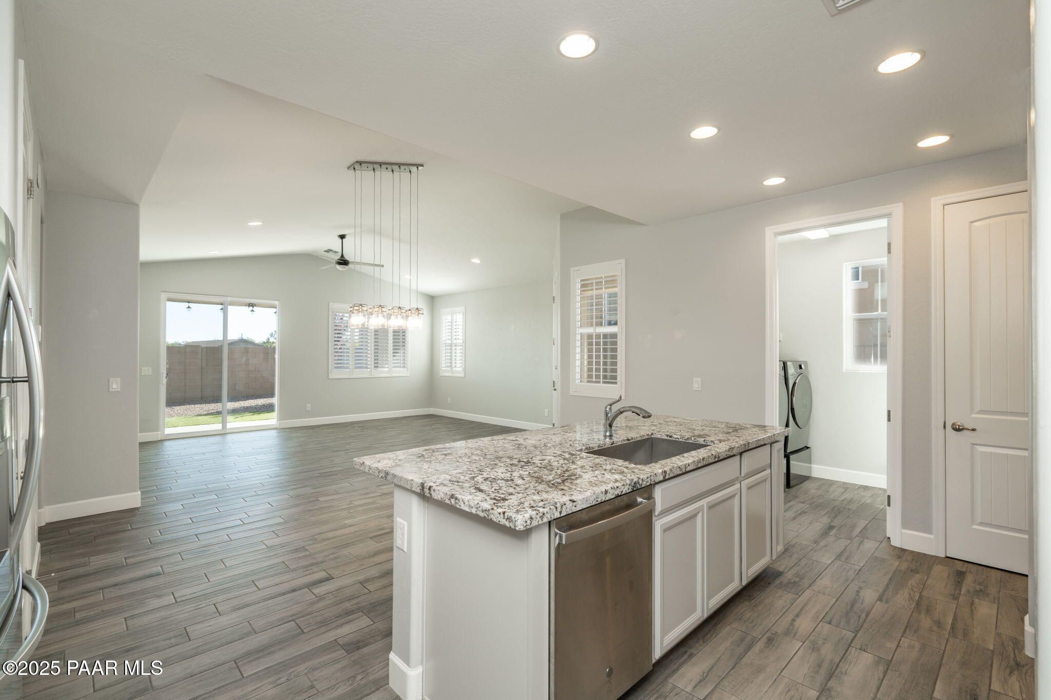 - Ceiling Fan(s), Granite Counters, Kitchen/Dining Combo, Kitchen Island, Living/Dining Room, Single Living Level, Primary Downstairs, Pantry, Walk-In Closet(s), Washer/Dryer Hookup