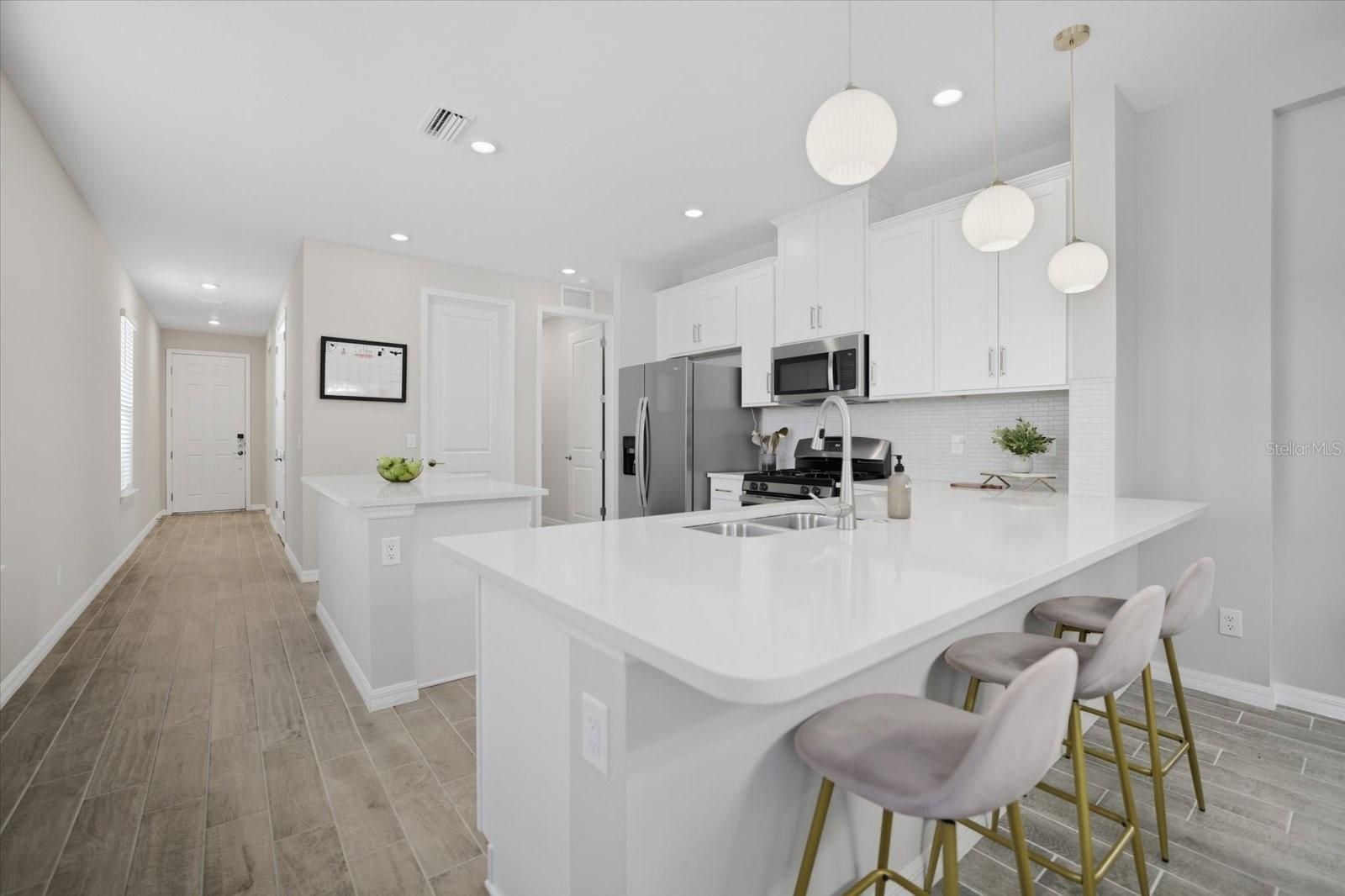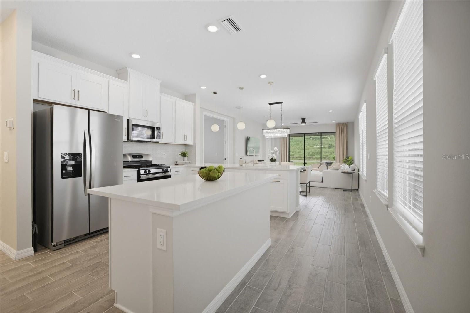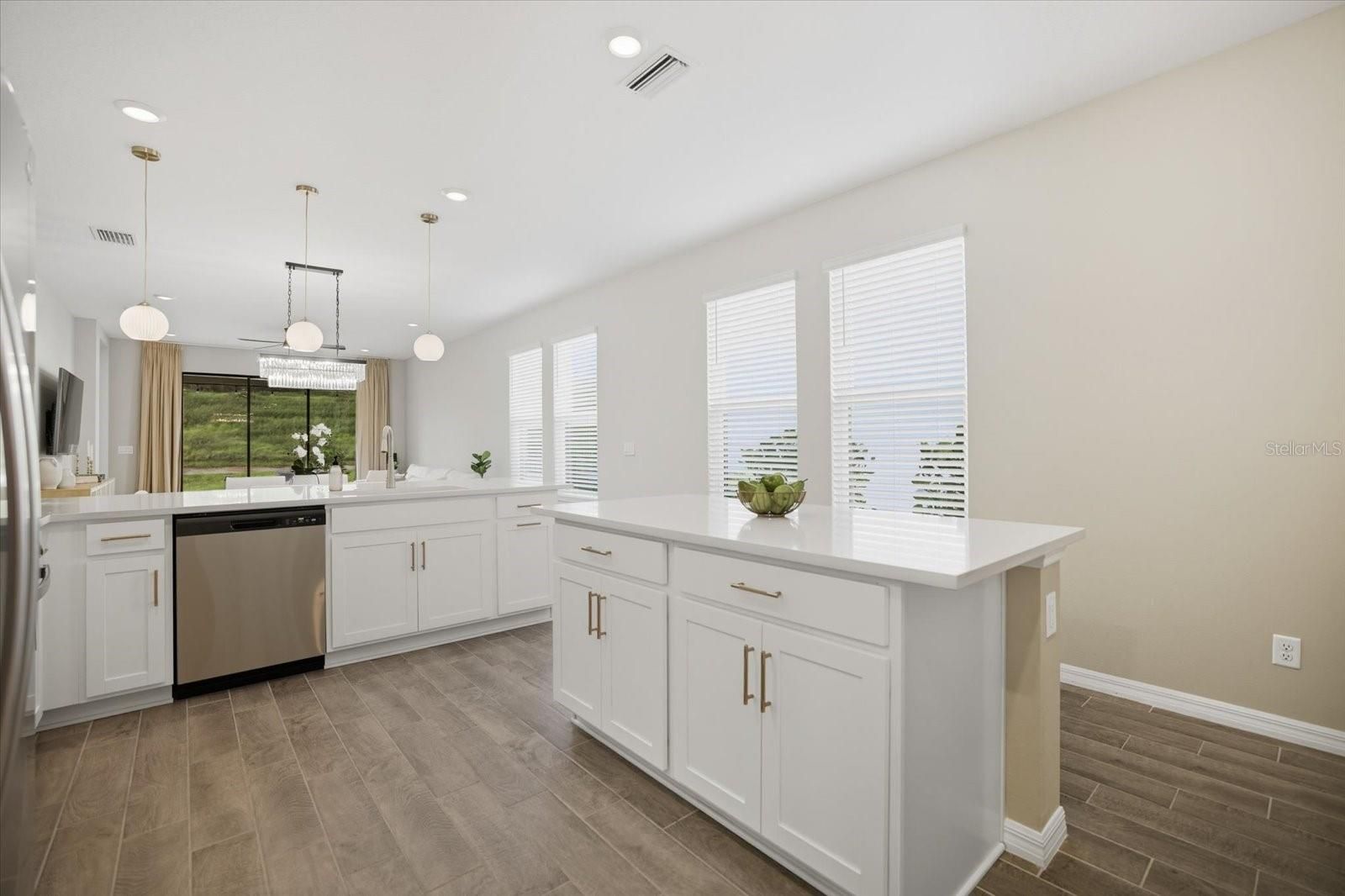 Located in the sought-after neighborhood of The Heights, this 1,790 sq ft residence artfully combines comfort with luxury, offering three spacious bedrooms, a versatile den, and 2.5 beautifully appointed bathrooms. As you enter, you're greeted by a meticulously designed interior that immediately feels like home. At the heart of this residence lies the stunning kitchen, a true culinary delight. It boasts elegant quartz countertops, an upgraded backsplash, and top-of-the-line stainless steel appliances. The natural gas range and solid wood designer cabinetry add to its functionality and style, while a large center island and peninsula provide ample space for culinary creations and casual dining. For all your storage needs, the kitchen includes a generous walk-in pantry. The open-concept design ensures a seamless flow from the kitchen into the dining and living areas, extending gracefully to the outdoor lanai. The den, complete with custom built-in cabinets and a convenient beverage refrigerator, offers endless possibilities as a home office, study, game room, or personal retreat. The primary suite is a sanctuary of its own, featuring large windows that frame picturesque views. It includes a walk-in closet with custom built-in shelving and an ensuite bathroom with a spacious walk-in shower, dual sinks, and quartz countertops. Living in The Heights means enjoying an array of exclusive amenities. Residents have access to a sparkling pool, cabana area, grilling station, basketball court, and two pet parks, offering endless opportunities for recreation and relaxation. For outdoor enthusiasts, Mt. Tumalo Trail Park is nearby, with walking trails, serene sitting areas overlooking Ward Lake, and exercise stations. Water activities are a breeze with the 255-acre Ward Lake and Jiggs Landing close by, providing opportunities for boating and kayaking adventures. The Heights is strategically located on 200 acres of pristine landscape, offering breathtaking views of wooded wetlands and lush greenery. Its prime position between State Road 70 and University Parkway ensures residents have easy access to essential amenities. Nearby, you'll find world-class shopping and dining at UTC Mall, cultural attractions in Sarasota, and the charming community of Lakewood Ranch. Daily conveniences are minutes away, making this home the perfect blend of luxury and practicality. Seize the chance to make this exquisite house your home, where every day feels like a vacation!