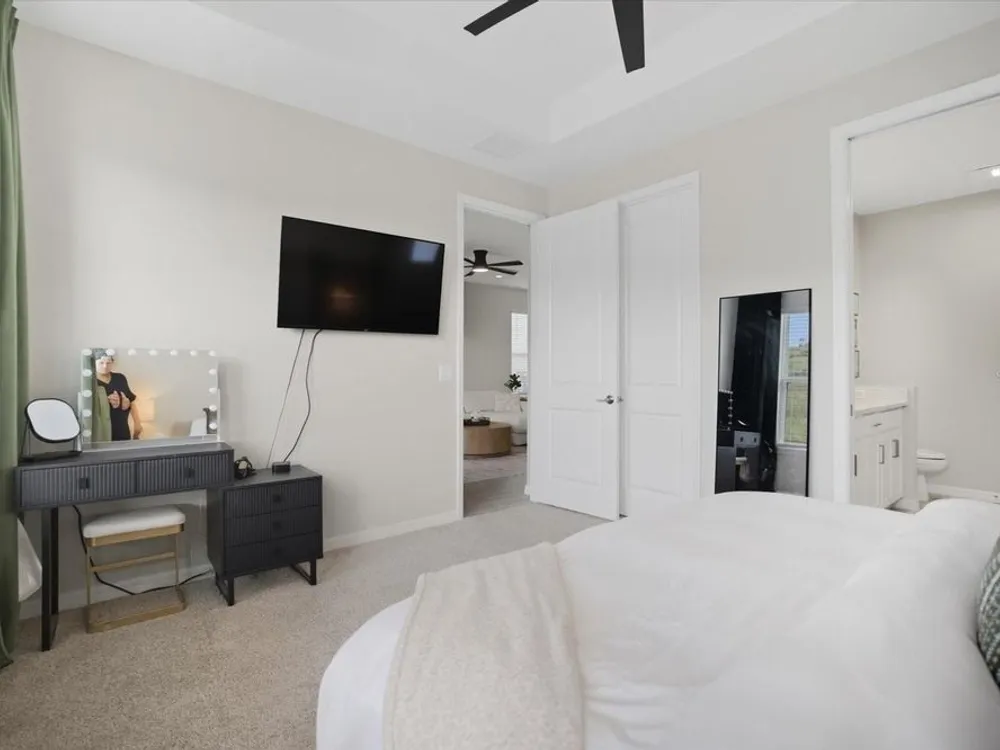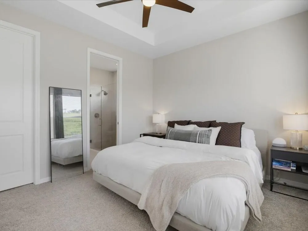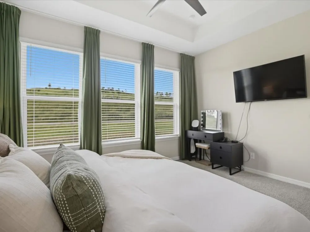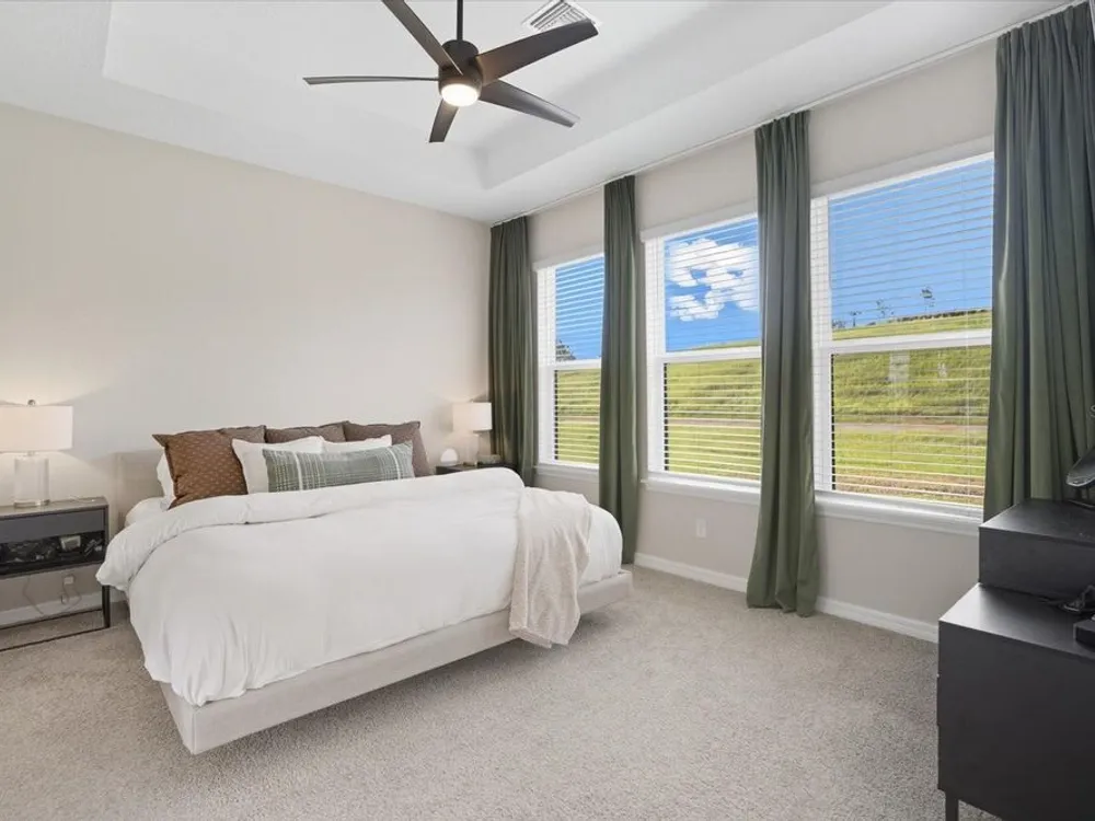 - Ceiling Fan(s), Open Floorplan, Main Level Primary, Stone Counters, Thermostat, Walk-In Closet(s), Window Treatments