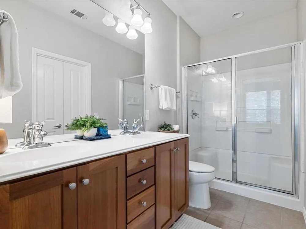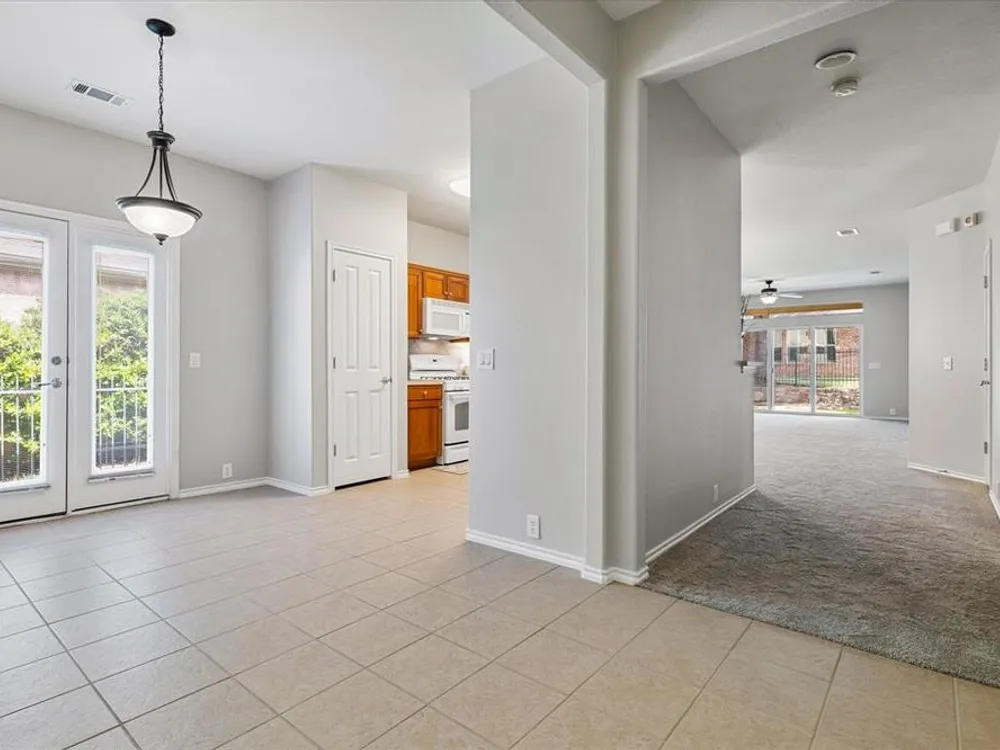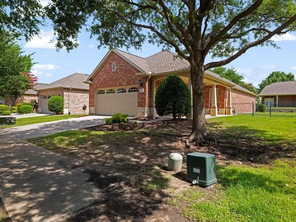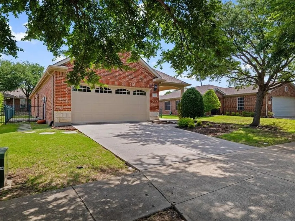 Welcome to this popular Monterey floorplan in the sought-after Frisco Lakes community by Del Webb.This two bedroom home offers a perfect blend of comfort and sophistication coupled with an array of amenities designed to enhance your lifestyle. The kitchen features ample cabinetry and a breakfast counter overlooking the spacious living and dining area. The move in ready home features neutral decor, new carpet and new paint throughout! Enjoy coffee on the flagstone patio off of the breakfast area or the covered patio in the back of the home. The oversized side yard is fully fenced and perfect for pets. New HVAC 2024! Enjoy all the premier amenities this vibrant 55+ community has to offer, including a resort-style swimming pool, scenic walking and biking trails, tennis courts, and a championship golf course. Social hubs like the community clubhouse create a warm and welcoming neighborhood atmosphere. With beautifully landscaped grounds and close proximity to parks, shopping, and dining, this home combines comfort, convenience, and an active lifestyle in one of Frisco’s adult living communities.