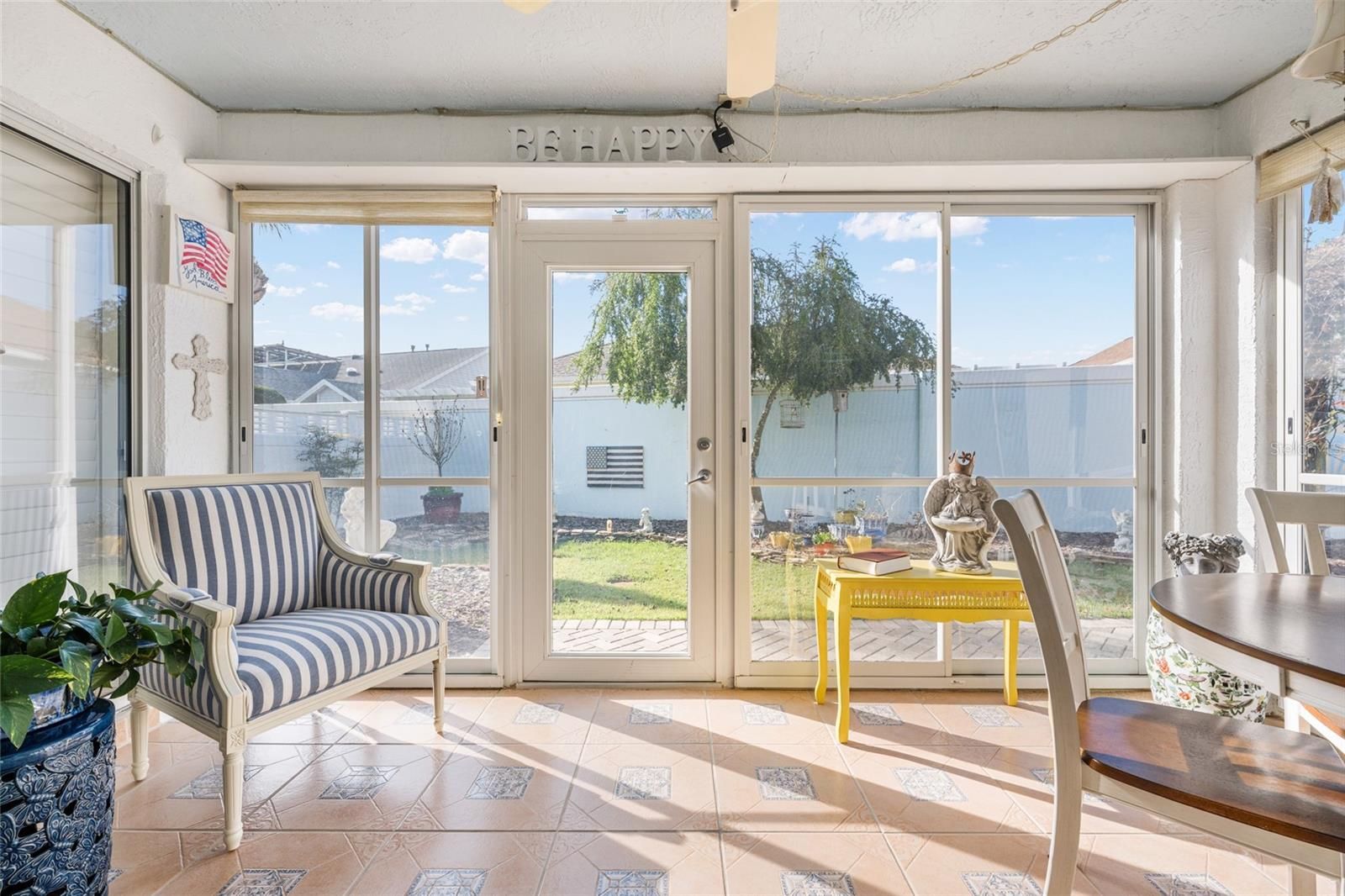 Located in the highly sought-after Janeann Villas within the Village of Mallory, this beautifully appointed villa exudes charm, quality, and effortless Florida living. With the BOND PAID and a 2020 ROOF, this home offers both peace of mind and refined comfort. Inside, you’ll find TILE FLOORING THROUGHOUT (NO CARPET), complemented by PLANTATION SHUTTERS that enhance the home’s light and elegance. The kitchen is thoughtfully designed with GRANITE COUNTERTOPS, STAINLESS STEEL APPLIANCES, and an EXPANSIVE BREAKFAST BAR, creating a seamless space for both everyday living and entertaining. An INTERIOR LAUNDRY ROOM with sink and cabinetry adds convenience and functionality. The spacious primary suite features a WALK-IN CLOSET and SLIDING GLASS DOORS leading to the lanai, while the guest area can be closed off with a pocket door to create a private en-suite retreat—ideal for visiting family and friends. Step outside to enjoy a beautifully curated outdoor space, including an ENCLOSED LANAI, PAVER PATIO, ENHANCED LANDSCAPING, PAINTED DRIVEWAY, and GARAGE SCREEN. The backyard is FULLY FENCED for added PRIVACY, offering a peaceful and secluded setting to relax or entertain. Perfectly positioned, this home is just minutes to Lake Sumter Landing, where you’ll enjoy nightly entertainment, waterfront dining, and boutique shopping, as well as Mallory Hill Country Club and Championship Golf Course. This exceptional villa offers the perfect blend of location, upgrades, privacy, and lifestyle—ready for you to move in and enjoy.