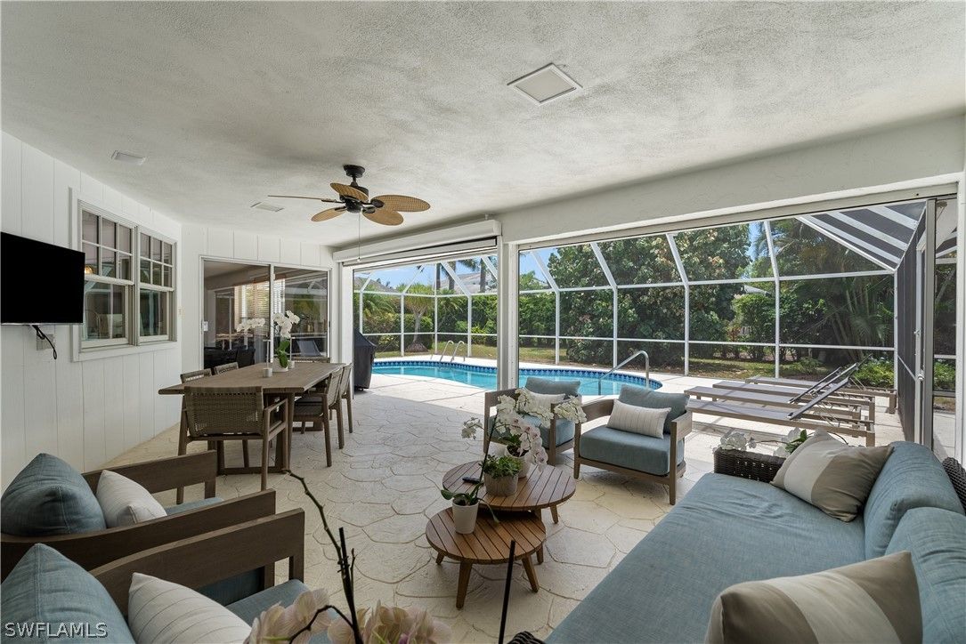 Single-story home in Quiet and Convenient, Central Moorings Location. This 4 bedroom, 3 bath home offers 2,531 sqft of living space, a spacious layout, covered patio, and screened-in pool with southern exposure on a 92x151 ft lot. Home has NO flooding and was unaffected by Hurricane Ian, also features a metal roof, updated kitchen with marble countertops, Viking gas range, and Subzero fridge/freezer. Residents will appreciate quick access to essential shopping, downtown Naples, and ability to access the Moorings Private Beach Club.