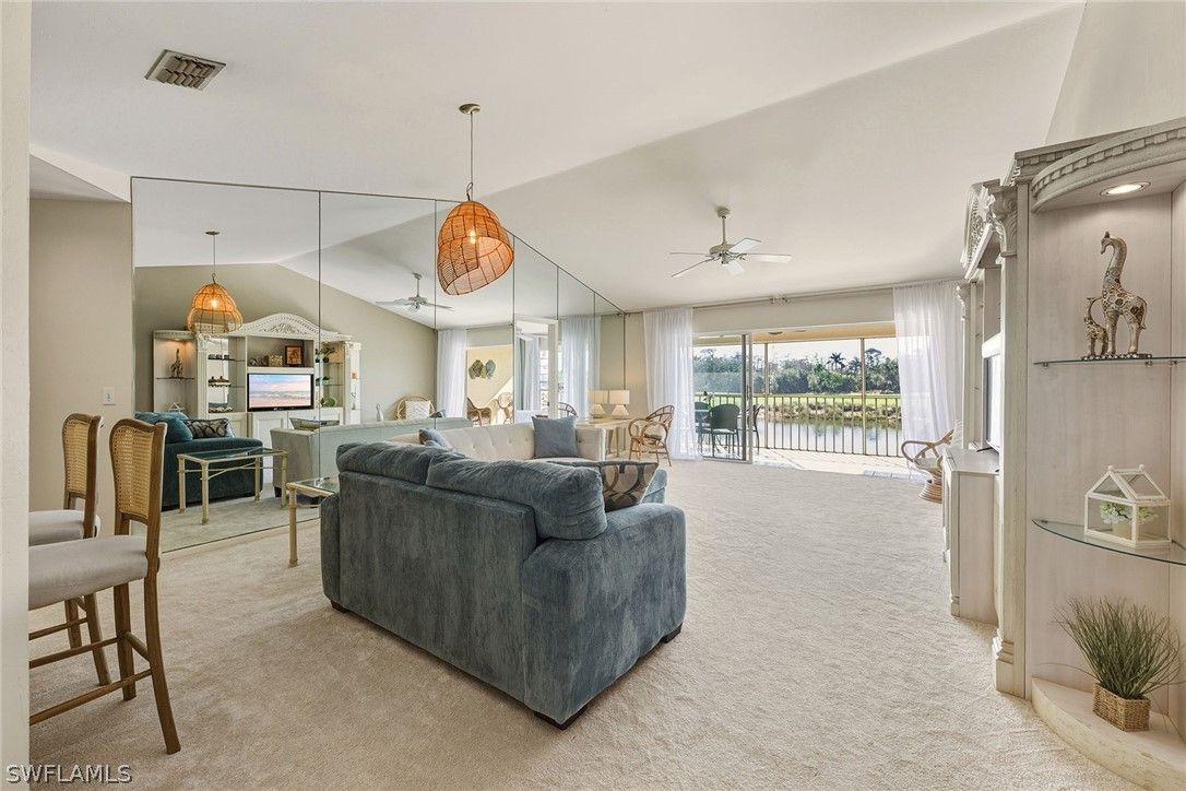 BEST SOUTHERN EXPOSURE & LAKE VIEW! Enjoy serene mornings and golden sunsets from this beautifully maintained 2-bedroom, 2-bath second-floor condo overlooking sparkling lake waters and lush tropical landscape. Bright and airy with vaulted ceilings and abundant natural light, this residence offers an inviting open layout perfect for relaxing or entertaining. The spacious screened lanai is your private retreat to soak in the year-round sunshine and tranquil views. Features include a well-appointed kitchen, split-bedroom plan for privacy, custom mirrors, and comfortable living spaces that embody the Naples lifestyle. Located in the desirable Vineyards community, just steps from the pool and moments away from golf, tennis, spa, and social amenities at the Vineyards Country Club (membership optional). Covered carport, extra storage, and guest parking complete this exceptional offering. Don't miss this opportunity to capture the best view in the neighborhood!