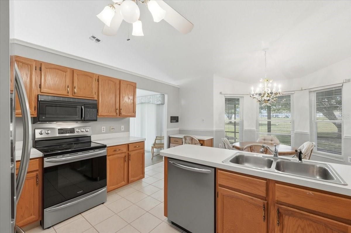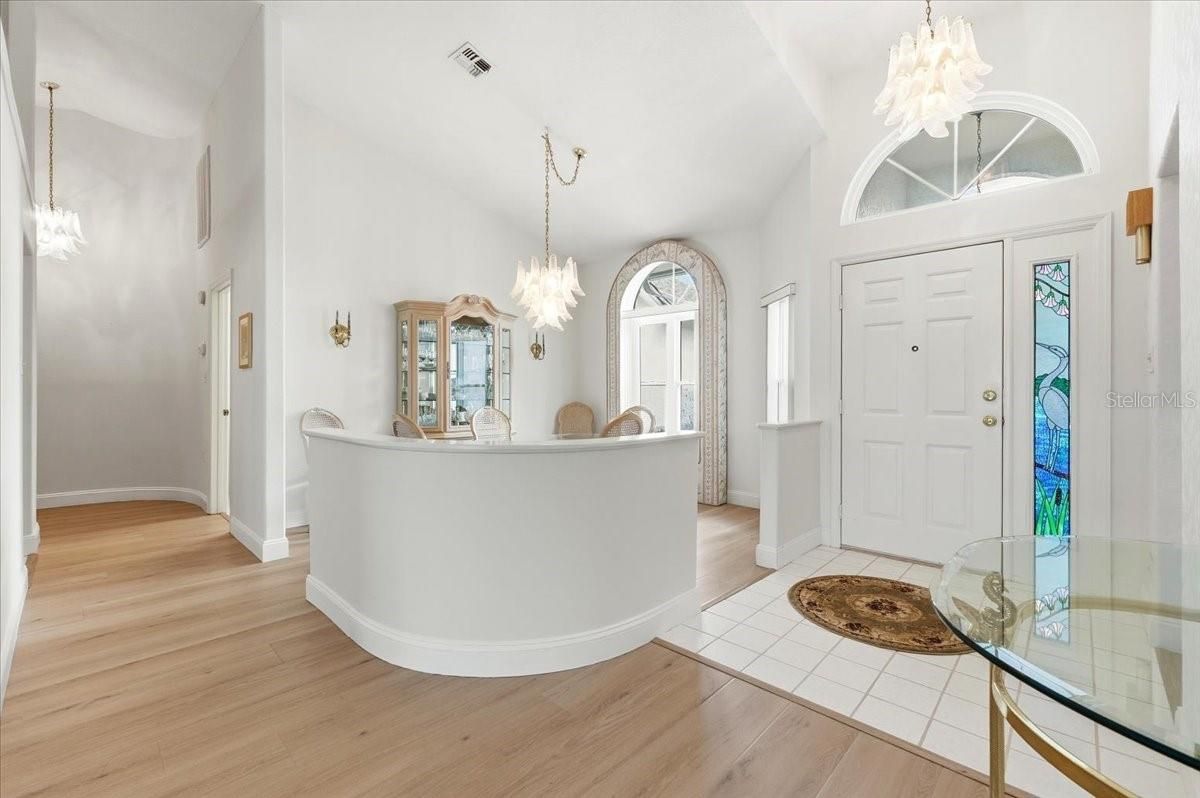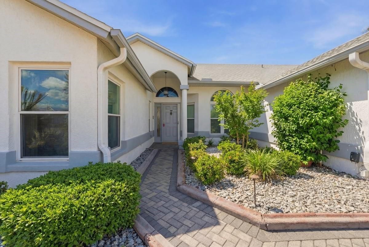 Experience refined Florida living in this beautifully appointed 3-bedroom, 2-bath golf course home perfectly situated on the 4th tee in the sought-after Sandpiper Golf & Country Club community. With a low monthly HOA fee of just $150, enjoy a truly maintenance-free lifestyle that includes lawn care, cable, internet, clubhouse access, a resort-style pool, and pickleball and tennis courts. From the moment you arrive, the brick paver driveway creates an inviting and elegant first impression, complemented by fresh exterior painting completed in 2023. Step inside and you are immediately captivated by picturesque golf course views framed by expansive sliding glass doors, allowing natural light to pour in and set a calm, airy tone throughout the home. Lovingly maintained and move-in ready, the residence features new luxury flooring installed in 2024, along with a new roof in 2024 and HVAC system (outside unit) replaced in 2023, offering both style and peace of mind for years to come. The open and flowing floor plan is designed for both comfort and entertaining, with spacious living areas that transition seamlessly into the outdoor living space. The kitchen is warm and welcoming, offering wood cabinetry, generous counter space, newer appliances, a built-in desk, and a charming bay window breakfast nook where mornings begin with peaceful views of the course. A formal dining room opens to the main living space, creating an ideal setting for gatherings and special occasions. Step outside to the expansive screened lanai and take in tranquil golf course views — the perfect backdrop for relaxing evenings or quiet mornings. An additional paver patio provides space for grilling, sunbathing, or enjoying Florida’s beautiful weather, all surrounded by mature landscaping which includes a Meyer Lemon and a Honeybell Orange trees that add both beauty and the opportunity for fresh, homegrown enjoyment. The private primary suite is a serene retreat, offering direct access to the lanai, space for a king-sized bed and sitting area, and a spa-inspired en-suite bath featuring dual vanities, a walk-in shower, and a hybrid walk-in soaking tub designed for comfort, relaxation, and peace of mind. A split-bedroom layout ensures privacy, with two additional generously sized bedrooms filled with natural light. The inside laundry room includes a brand-new washer and dryer installed in 2024 for added convenience. This is a wonderful opportunity to enjoy elegant golf course living in a vibrant, amenity-rich community — where comfort, lifestyle, and location come together beautifully. Close to medical, shopping, restaurants, I-4, and theme-parks and beaches within driving.