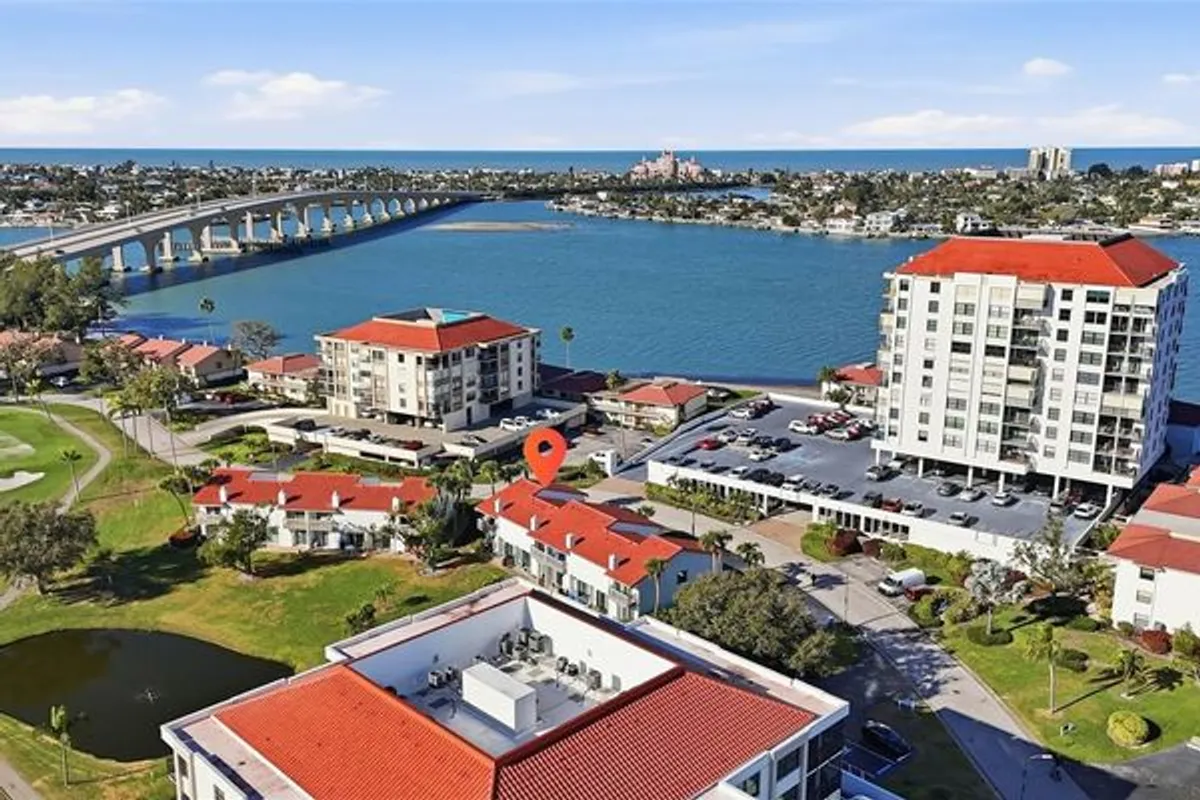 ALL AGES & ANIMAL FRIENDLY! This amazing, one of a kind, completely updated 4 BEDROOM, 3 FULL BATHROOM 1 CARPORT TOWNHOME in the highly sought-after CASA DEL MAR community. Located directly on the ISLA DEL SOL GOLF COURSE with sweeping fairway and tranquil pond views. Offering 1,650 SQ FT of light-filled living space, this home delivers the perfect blend of timeless design, comfort, and location. The main level features completely updated kitchen opened up into the spacious dining room and living room with a cozy WOOD-BURNING FIREPLACE and HURRICANE-IMPACT SLIDING GLASS DOORS opening to a large patio over looking the golf course and ideal for entertaining or unwinding with a view. ONE bedroom and bathroom downstairs perfect for guests to come stay over looking the golf course and complete with its own private patio access. Convenient LAUNDRY closet on the first floor. Upstairs, the PRIMARY SUITE is a true retreat with an OVERSIZED WALK-IN CLOSET, ENSUITE BATH, and a NEW PRIVATE BALCONY overlooking the golf course. Two additional bedrooms and a full bath complete the upper level. Townhouse Features: HURRICANE-IMPACT WINDOWS & SLIDERS through with REMOTE STORM SHUTTERS. RESORT-STYLE AMENITIES: A heated waterfront pool and hot tub with breathtaking views of BOCA CIEGA BAY. (The HOA fee includes water, sewer, trash, cable, internet, recreational facilities, pool, flood insurance, maintenance of building and grounds.) Located 1 mile from ST PETE BEACH, 1/2 mile from the Isla Del Sol Yacht & Country Club and a short drive to Fort De Soto Park. THIS WILL NOT LAST LONG, REQUEST YOUR SHOWING TODAY! (HVAC 2022, W/H 2025)