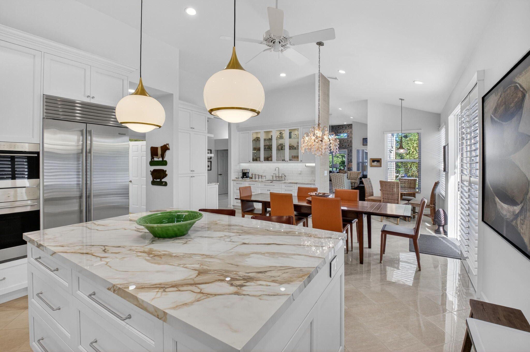 ONE OF A KIND REMODELED HOME WITH STUNNING GOLF AND LAKE VIEWS PERFECTLY POSITIONED ON AN OVERSIZED CORNER LOT. REDESIGNED WITH HIGH-END FINISHES & MODERN COMFORTS THROUGHOUT. THIS SPACIOUS HOME OFFERS 3 BEDROOMS, 2.5 BATHS, PLUS A HUGE AIR CONDITIONED FLORIDA ROOM. THE GOURMET REMODELED KITCHEN FEATURES WOLF & SUB ZERO APPLIANCES, TWO SINKS, ABUNDANT CUSTOM CABINETRY, & BREAKFAST AREA. AN EXPANSIVE LIVING ROOM IS ACCENTED BY VOLUME CEILINGS & ILLUMINUS NATURAL LIGHT. THE PRIMARY BATH HAS BEEN COMPLETELY REMODELED. CUSTOM WINDOW TREATMENTS.LARGE FENCED PATIO OVERLOOKING GOLF C0URSE WITH A GAS BBQ HOOK-UP. SCREENED PORCH OFFERS THE IDEAL SPOT FOR ANYTIME RELAXING & ENTERTAINING. THIS HURRICANE READY HOME INCLUDES A WHOLE HOUSE GENERATOR, IMPACT WINDOWS & DOORS, HURRICANE RATED GARAGE DOOR