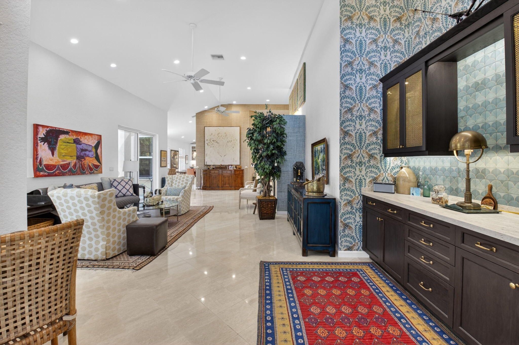 - Bar, Entrance Foyer, Pantry, Wet Bar, Walk-In Closet(s), Split Bedrooms, Impact Glass, Breakfast Area, Living/Dining Room, Eat-in Kitchen, Dual Sinks, Main Level Primary, Sitting Area In Primary Bedroom, Separate Shower, Soaking Tub