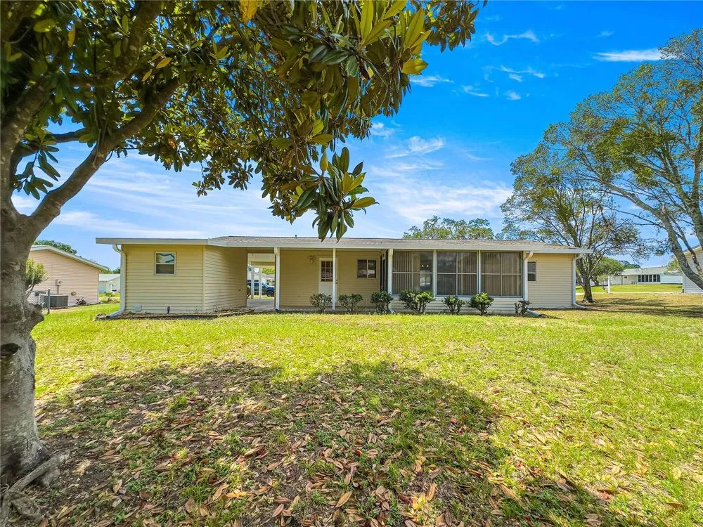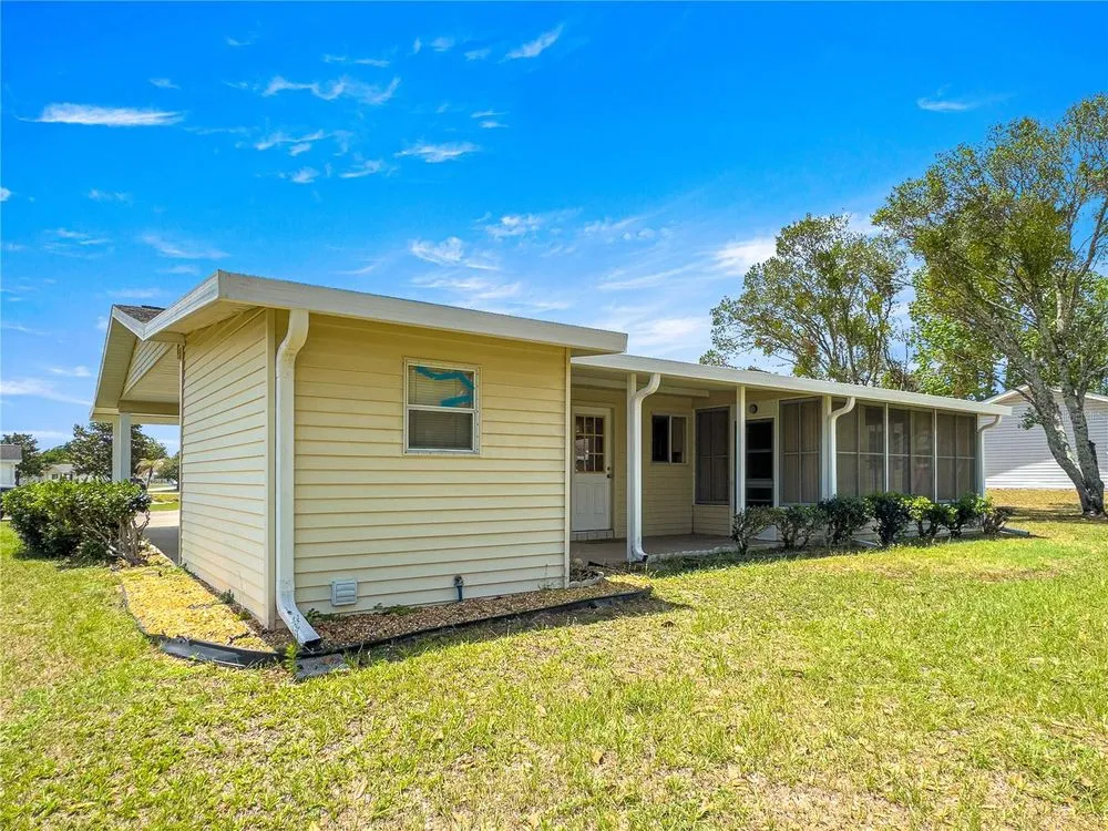 AFFORDABLE AND ADORABLE... Move in ready with the ease of single-level living in a prime Florida lifestyle community. Clean as a whistle this 2/2 split plan home offers over 1100 sf of living space with 2200+ SQ FT total under roof, featuring: spacious living room; kitchen with all appliances; dining area; master with large walk-in closet & en-suite bath with make-up counter & walk-in tiled shower; guest bedroom with bathroom accessible from bedroom & hallway; a wonderful vinyl enclosed porch + a large covered back patio overlooking the backyard. At the end of the 1-car carport, you'll find a separate storage closet which houses the washer, dryer, utility sink, water heater, and shelving for added storage space. A cute and cozy home situated in a superb location in a 55+ community offering many activities and clubs conveniently accessible to shopping, dining, and entertainment! The community Spruce Creek North has a lovely clubhouse amenities include a workout room, gazebo, swimming pool, shuffleboard, library, and spaces for playing cards. The reasonable amenities fee includes trash pick up, pool, clubhouse, and a fitness center. Home being sold "as is" with right to inspect.