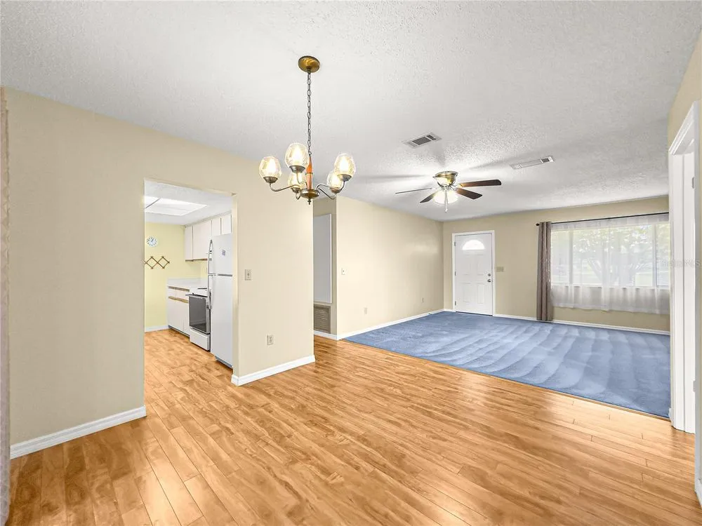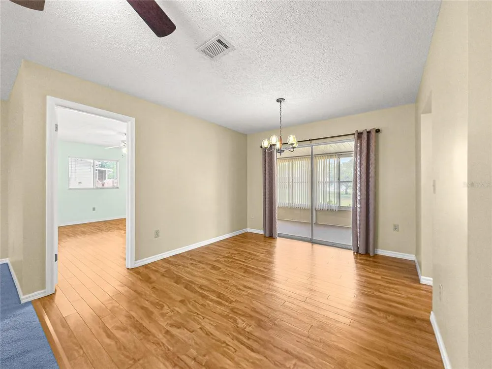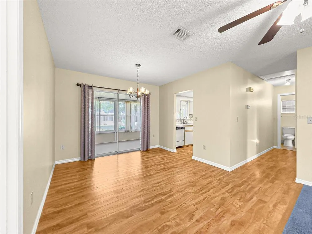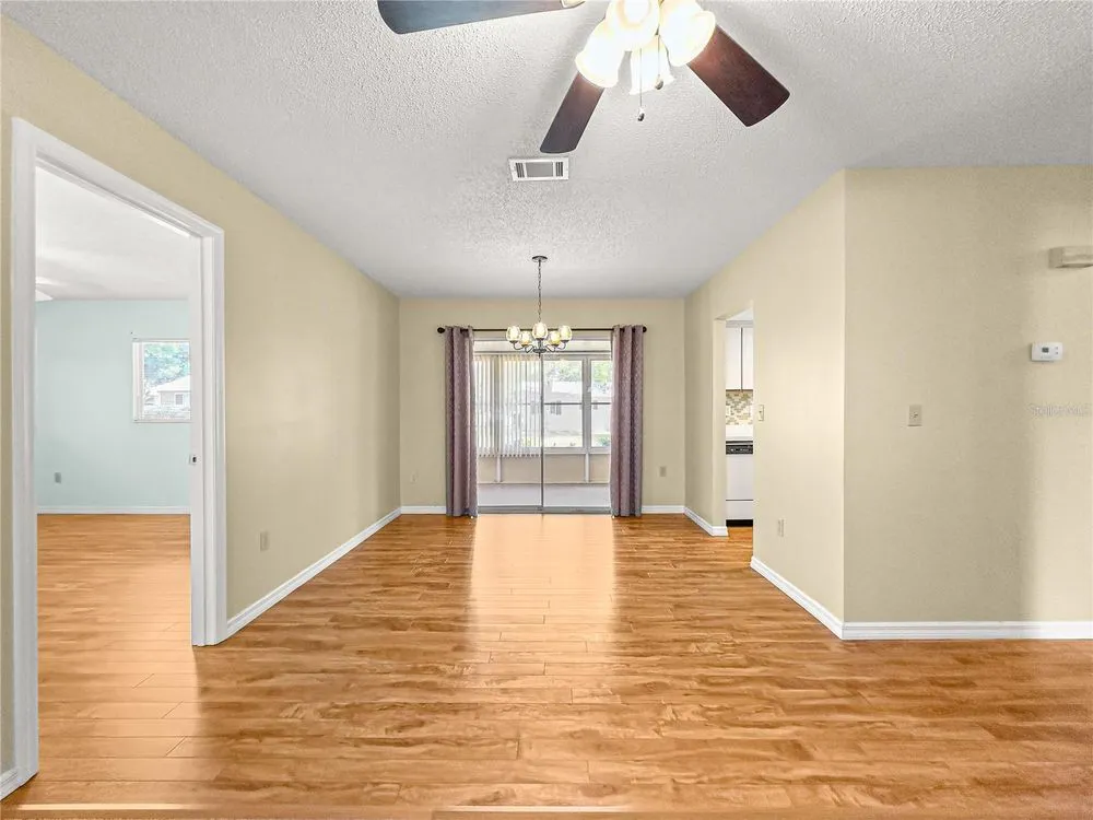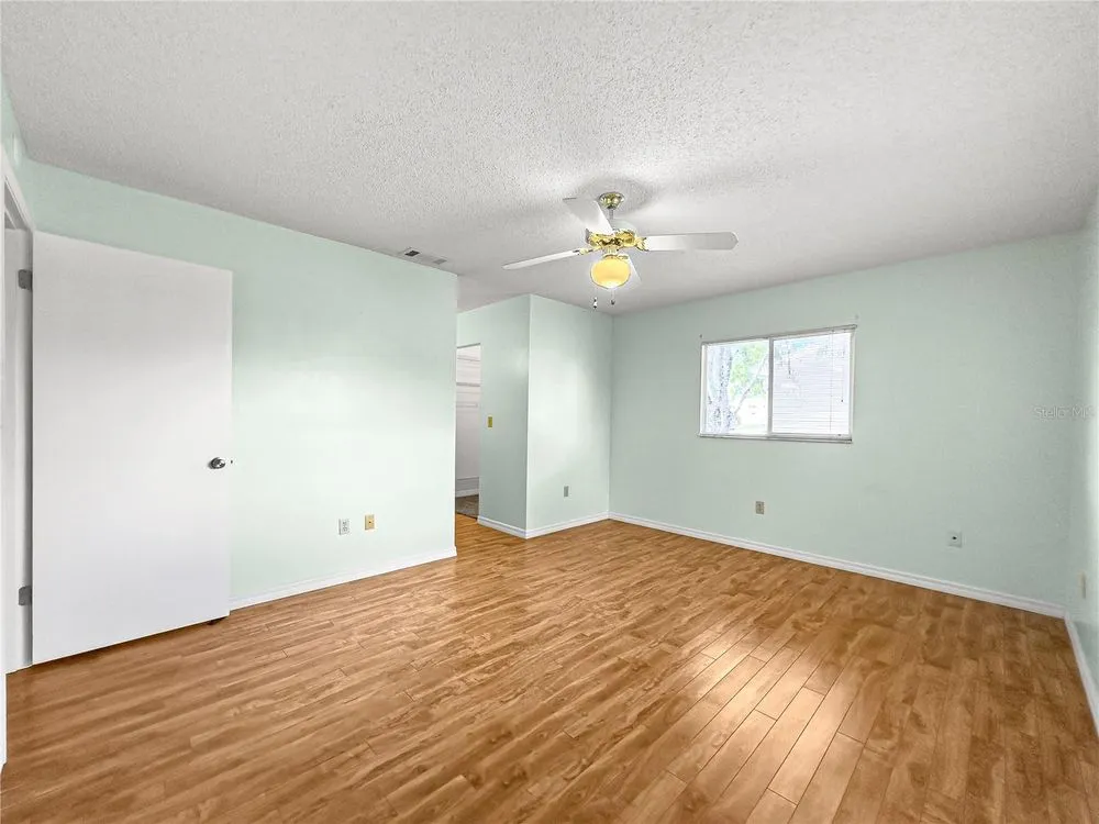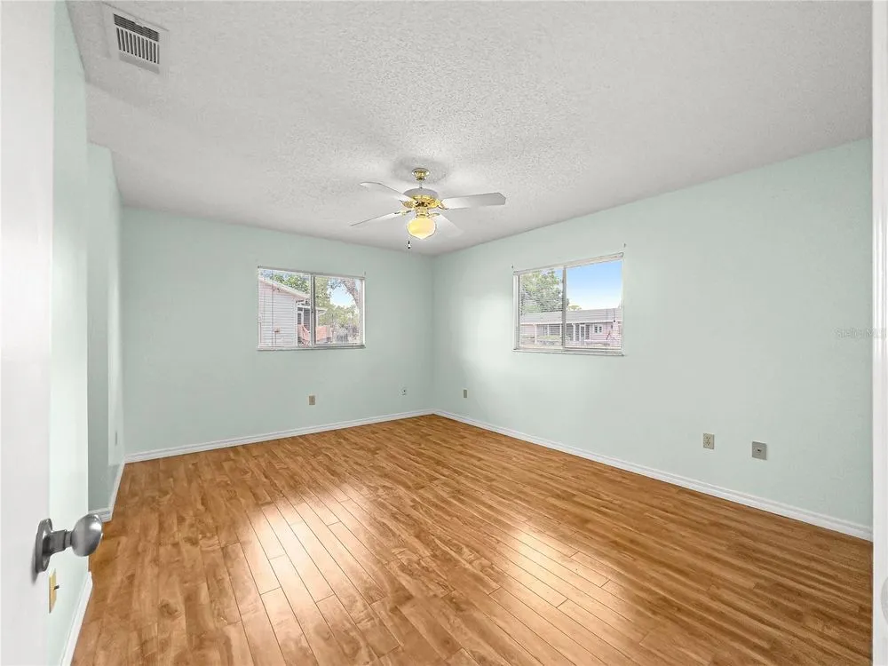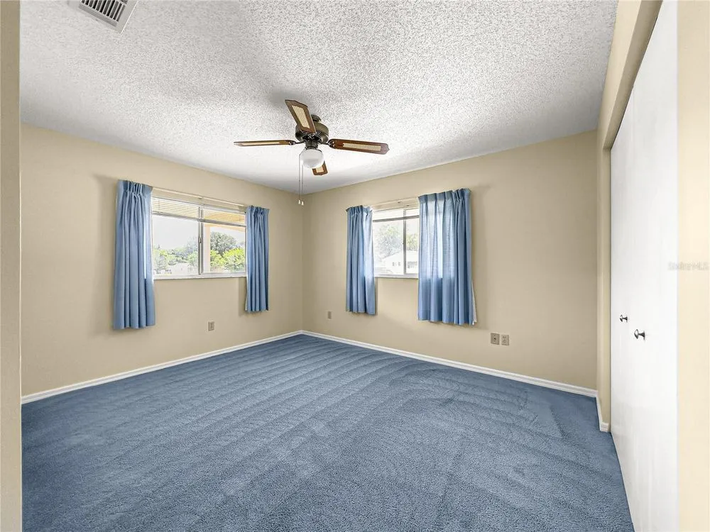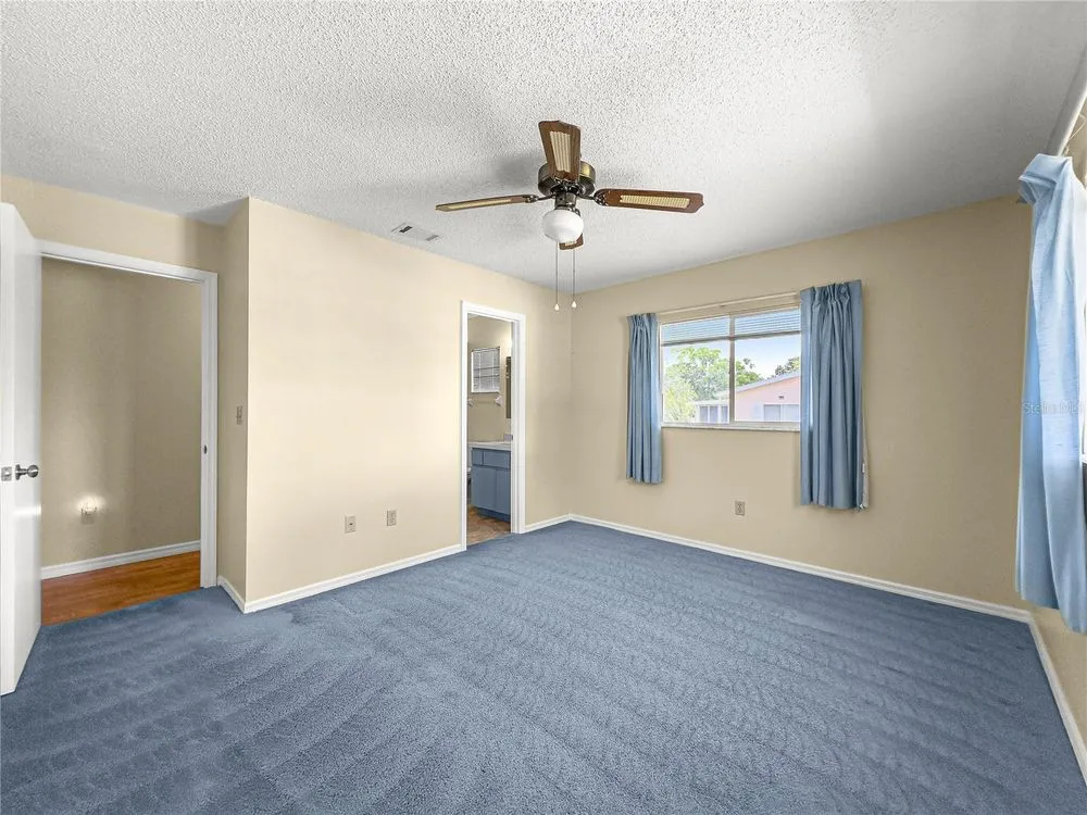 - Ceiling Fan(s), Eat-in Kitchen, Main Level Primary, Split Bedrooms, Thermostat, Window Treatments