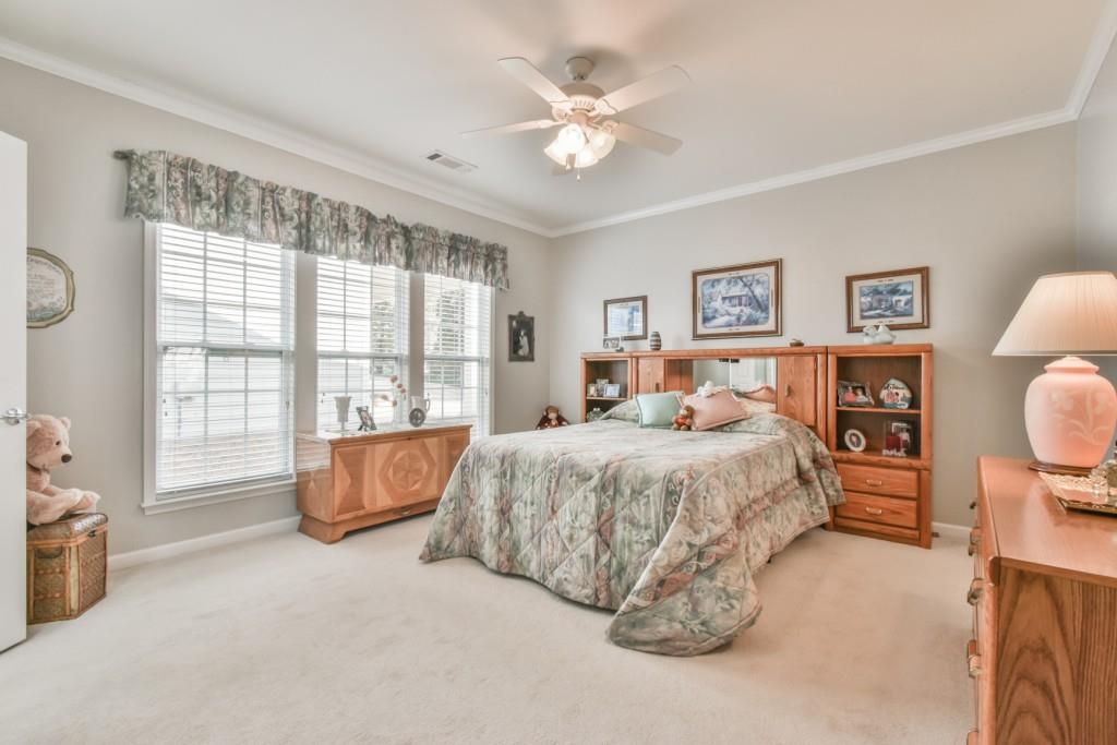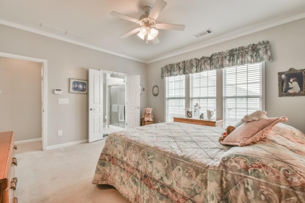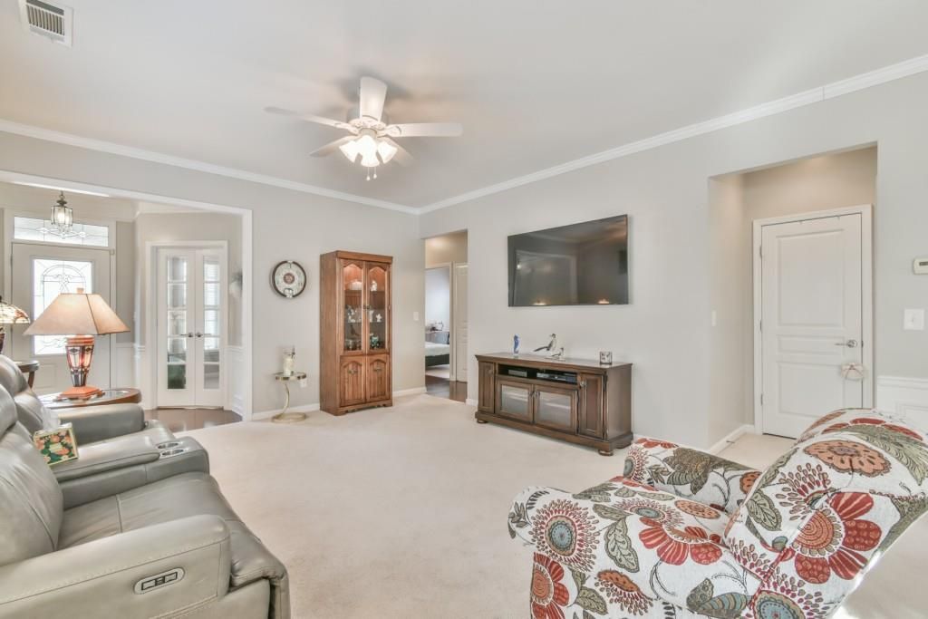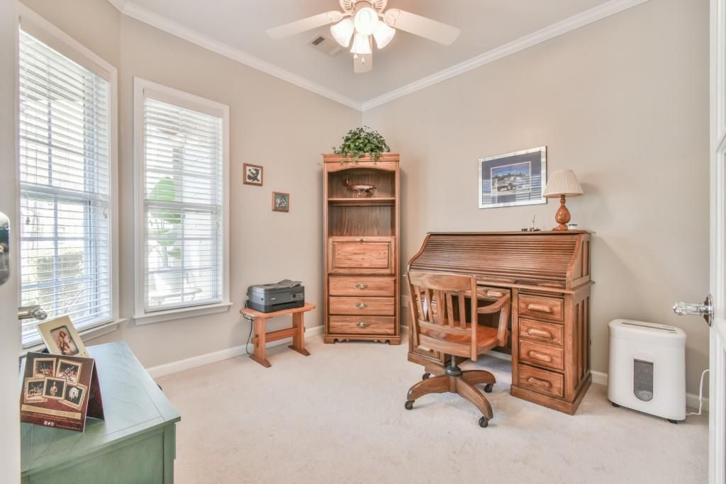 Welcome to effortless living in your dream retreat located in the sought-after 55+ adult community of the Village at Deaton Creek, where you will enjoy carefree living, resort-style amenities, security, and a vibrant social calendar! Located just minutes from top-tier medical facilities, shopping, and dining. This beautifully maintained, open concept, sunlit ranch features 2 bedrooms and 2 full baths, plus a library/office. A warm and inviting ambiance is created throughout the main living, dining, and kitchen areas with an abundance of windows that offer lots of light. You will also enjoy your morning coffee or evening relaxation in the cozy sunroom that opens to a covered rear patio overlooking a tree-lined backyard. Your spacious primary sanctuary offers a generous walk-in closet and bath featuring a large shower and double vanities. The 2-car garage features great built-in cabinets that will convey with the property. The roof has been replaced in the past 6 months. Come make this your new home!!