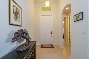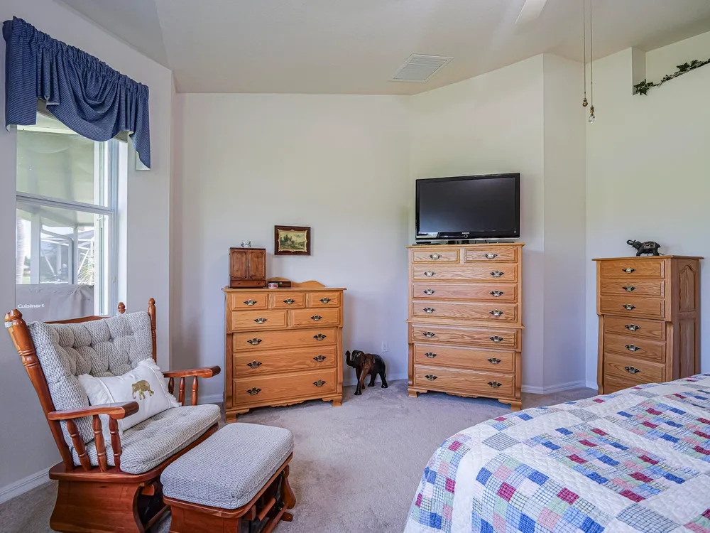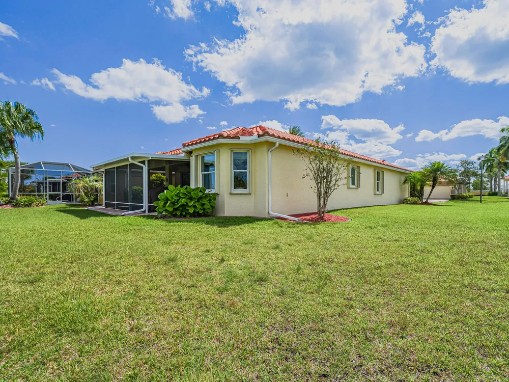 Discover this exceptional property located in one of the top-rated active adult communities, offering a lifestyle of comfort and considerable amenities. You'll find a spacious 3-bedroom, 2-bathroom home that seamlessly blends functionality with modern comforts. The property features a charming pond view, ideal for your morning coffee on the extended covered patio. Functional accordion hurricane shutters guarantee peace of mind, while the 2023 AC unit keeps the home comfortable year-round. Additional conveniences include a portable Generac generator with a hookup and a central vacuum system extending through the home and the two-car garage. The home's ideal location directly across from the clubhouse affords easy access to community events and amenities. Furthermore, its proximity