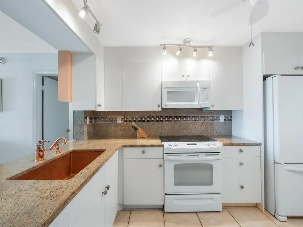 - Ceiling Fan(s), Living/Dining Room, Stone Counters, Window Treatments