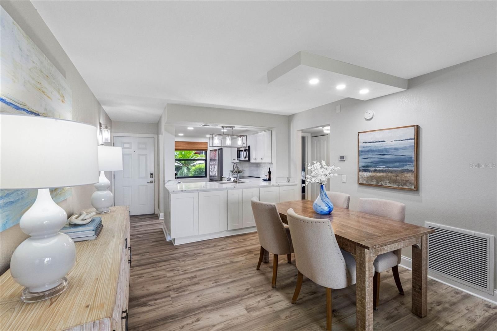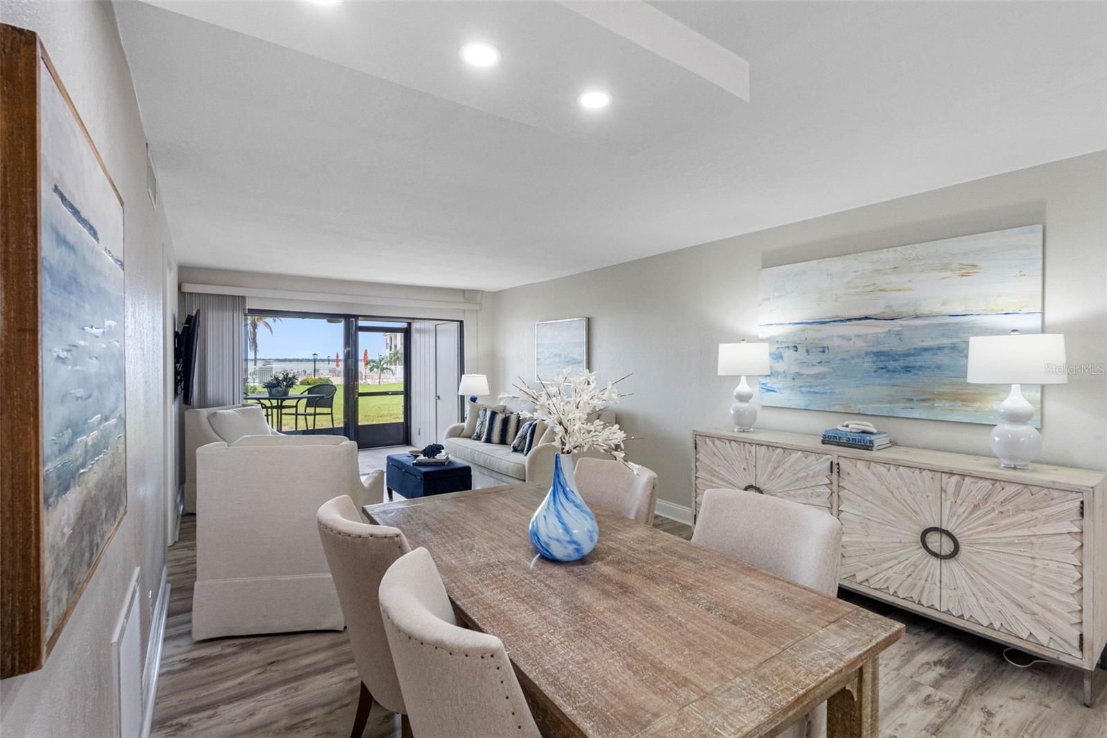 LUXURY WATERFRONT LIVING—DESIGNER FINISHES, POOL, SUNSET AND BOAT WATCHING VIEWS! Step into this FULLY remodeled, TURNKEY 2-bedroom, 2-bath home where no corner was cut and no inch spared. This first-floor residence offers high-end finishes, PREMIUM furnishings, and a front-row seat to PARADISE—with sweeping views of the heated pool, lush landscaping, passing boats, and vibrant northwest sunsets over the Intracoastal waters of Boca Ciega Bay. From your screened-in patio—complete with a tiled floor and private storage closet—you’re just steps away from the pool, spa, and scenic waterfront walking path. Watch the mega yachts as they make their way out to the Gulf! Inside, the chef-inspired kitchen features white Shaker-style soft-close cabinetry with modern hardware, marbled quartz countertops, stainless steel appliances, recessed lighting, and abundant storage. There’s room for an eat-in breakfast table, coffee bar, or modern kitchen hutch if desired. The open layout flows seamlessly from kitchen to dining to living room, where large sliders frame the water, boats, and tropical scenery beyond. The dining area offers space for family gatherings, entertaining, and even a large, stylish sideboard with storage—a sure conversation starter! The primary suite boasts gorgeous pool and water views, a generous walk-in closet, and a spa-like ensuite with premium designer finishes. Enjoy a quartz countertop vanity and a frameless glass walk-in shower with designer hexagon tile flooring, a custom tile inset, and a built-in bench seat. The split-bedroom plan ensures privacy for guests, with the second bedroom located beside the updated guest bath. A separate laundry room includes a new washer/dryer. Throughout the home, you’ll find smooth ceilings, new high-quality flooring, solid-core doors with nickel hardware, and updated lighting and WINDOW COVERINGS. Have peace of mind with hurricane shutters on all windows and the patio, a 2024 HVAC, and the convenience of ground-level assigned covered parking (#148)—no elevator needed. Offered fully furnished with top-grade furniture, cookware, bedding, and décor, this property is truly move in or rental turnkey ready. According to AirDNA’s Rentalizer, it could generate $44,000 annually at 73% occupancy, making it an excellent investment, full-time residence, or vacation getaway. Life here feels like a resort every day—with the option to join the Isla Del Sol Yacht & Country Club, offering golf, clay tennis courts, pickleball courts, yacht, or social memberships, all just a short stroll away. You’re minutes to Fort De Soto and St Pete Beach's award-winning beaches, the charm of Pass-a-Grille, and the vibrant restaurants and nightlife of downtown St. Petersburg. Easy access to I-275 gets you to Tampa International Airport in under 30 minutes. The “Island of the Sun” is golf cart-friendly, with peaceful streets lined by mature banyan trees and the cheerful songs of wild green parakeets. Schedule your private showing and experience the perfect blend of coastal luxury, boating activity, and breathtaking sunsets.