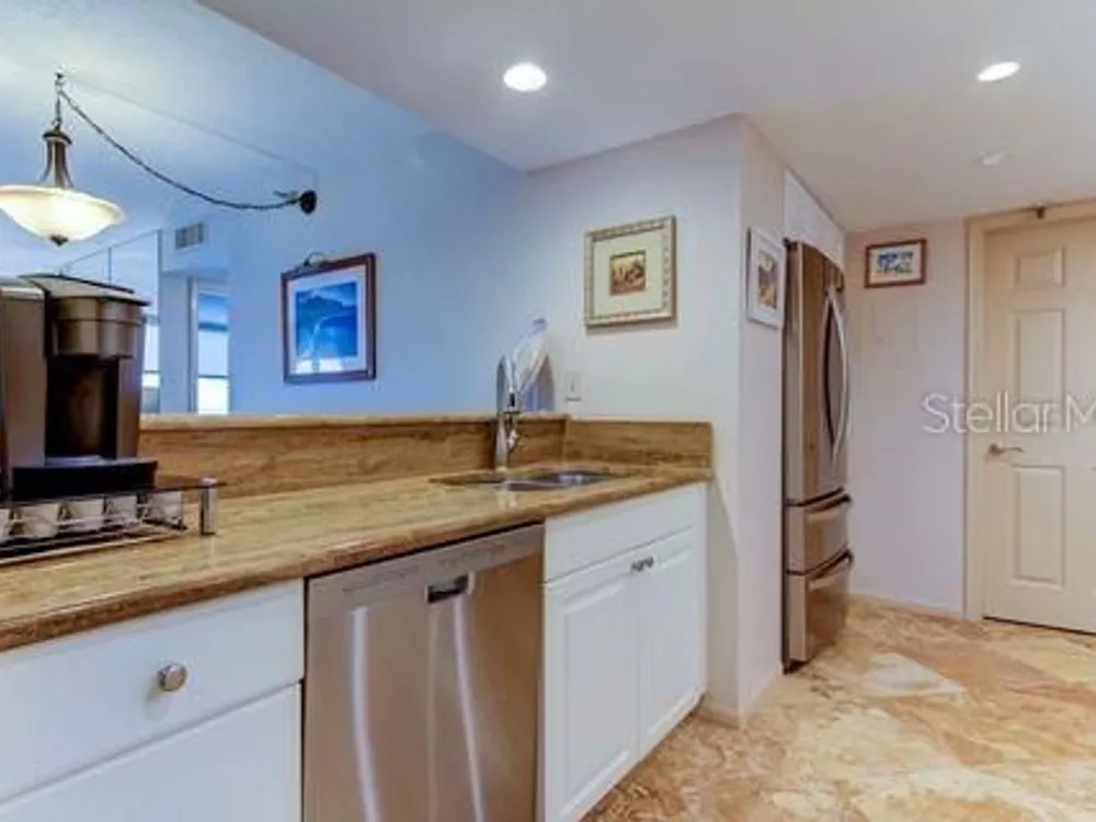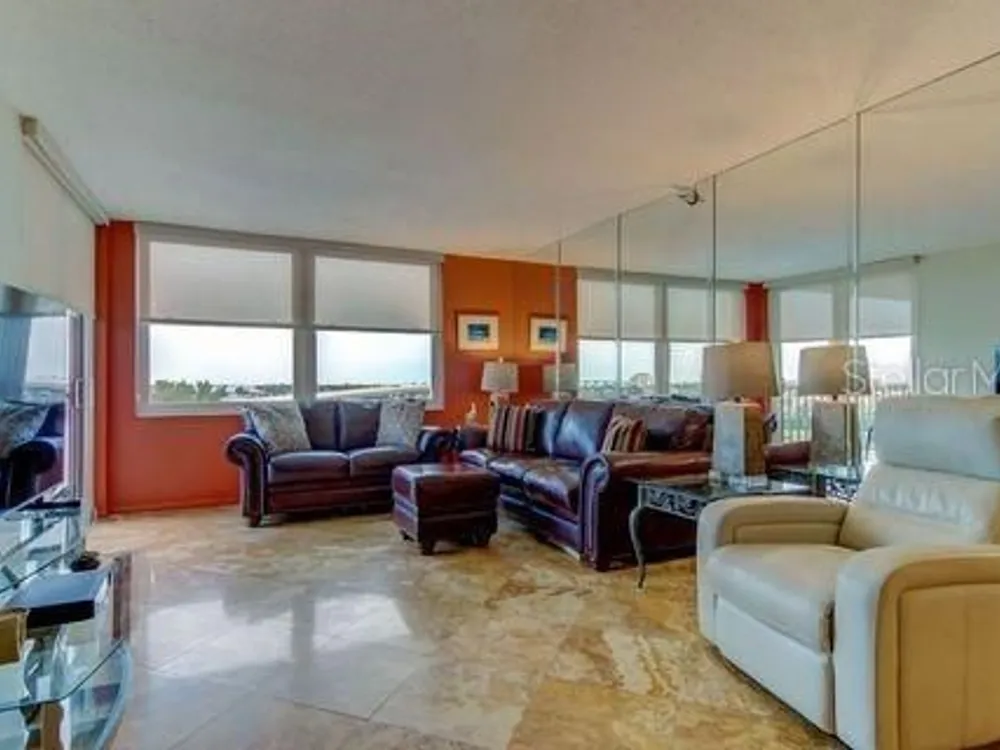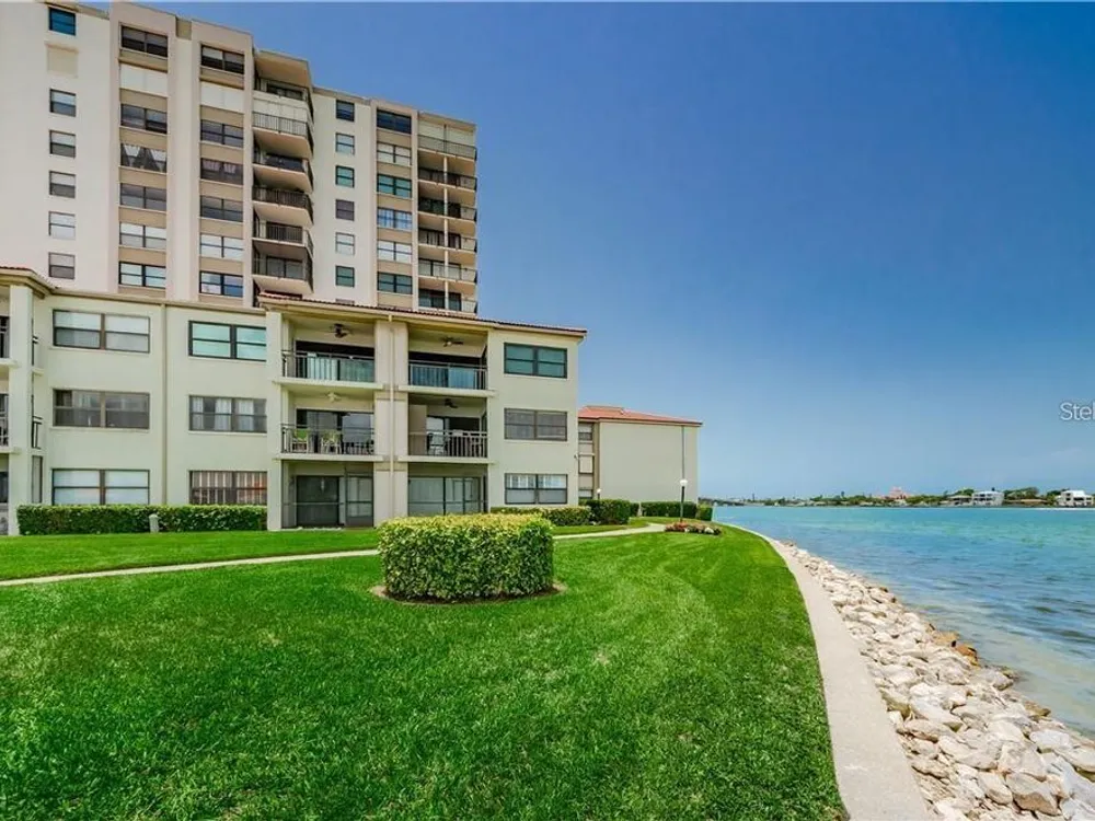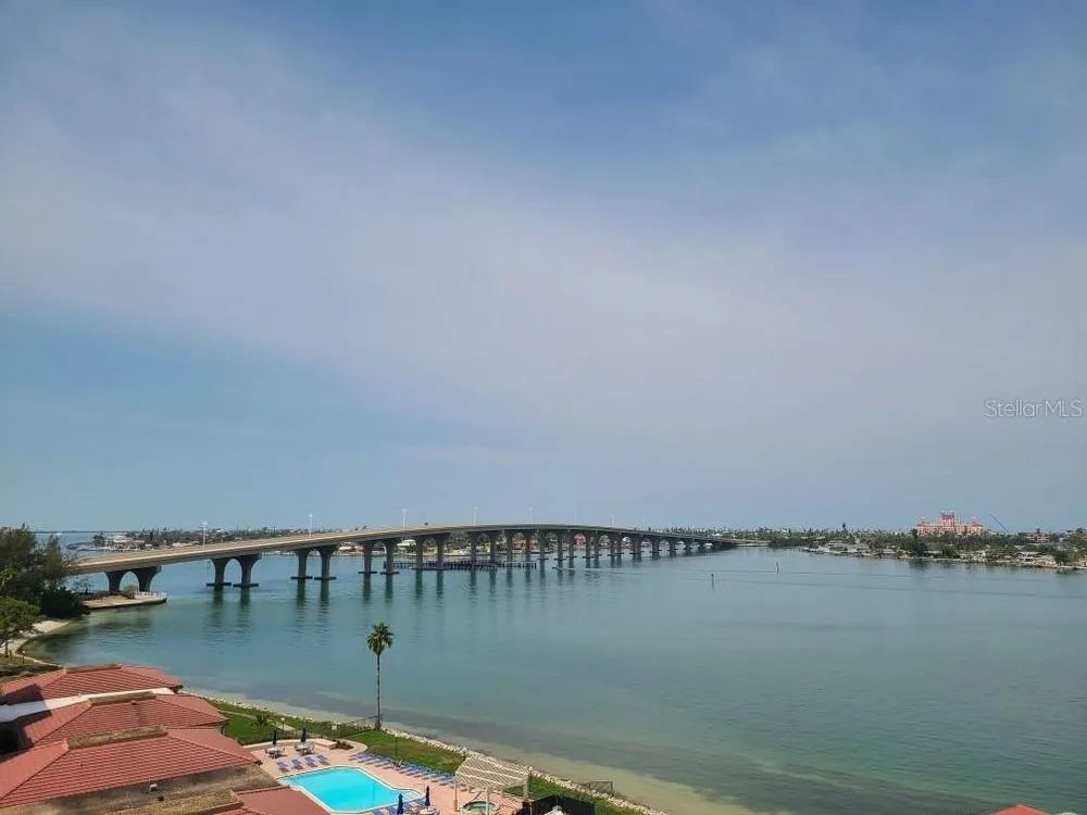 Embrace the epitome of Coastal Living on the 8th floor of this exquisite 2-bedroom, 2-bath condo with Southwesterly views. Greet each day with panoramic views of the Isla Del Sol golf course and the serene waterviews of Pass-A-Grill Channel. This meticulously designed property features tasteful upgrades, including travertine floors, an updated kitchen with granite counters & stainless appliances which are 4 years new. The Primary Bedroom has a recently updated ensuite bath with walk-in shower and glass doors. Carpet has recently been replaced, including in the walk-in closet. Bedroom 2 and walk-in closet also has brand new carpet. This room can be set up as an office, a bedroom or a den. The Guest Bath has a garden jacuzzi tub. Entire unit has recently been painted, including doors and trim. Hurricane impact windows and slider were replaced 4 years ago, along with the AC. Filtered shades throughout. There was no water intrusion from either of the 2 hurricanes last Fall. Being offered furnished, with a list of some items that do not convey. Indulge in a resort-like lifestyle with exclusive amenities, including a heated and chilled pool overlooking the water, a rejuvenating spa, and the convenience of under-building covered parking. The monthly HOA includes basic cable, internet, water, trash & flood insurance. Memberships available separately for golf, tennis, pickleball, marina & social - all walking distance to the Country Club. This prime location provides more than just a home; it offers a gateway to an active lifestyle. Enjoy easy access to the Pinellas Trail for biking and walking adventures. Revel in the proximity to the famed Don Cesar resort and the pristine beauty of St. Pete Beach. Easy access to I-275 and Tampa Intl Airport. Only a 10 minute drive to downtown St Petersburg with upscale restaurants, museums & professional sports. Elevate your living experience by making this exceptional property your own – schedule a viewing today and step into Island Living at its finest!