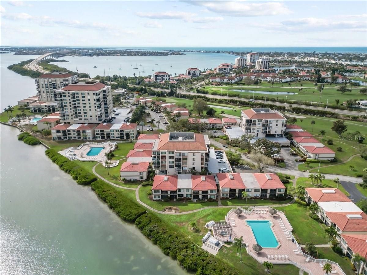 A first floor waterfront condo with a view so open it feels like the bay is part of your living room. Wake up to the water from your bed, then step onto your private patio as dolphins cruise by. Impeccably prepared and fully turnkey, the residence is sold furnished and fully updated, offering a true move-in-ready experience with zero work required. With water views from EVERY ROOM in this condo, you'll feel like you're on permanent vacation. This unit experienced no flooding or storm damage, providing rare peace of mind in true waterfront living. Inside, you’ll find double doors leading to your waterfront primary suite with its own en-suite bathroom and a large walk-in master closet, plus a brand new in unit washer and dryer. The split-bedroom layout includes a private guest suite featuring a built in Murphy bed and a dedicated full bathroom. Styled with relaxed coastal décor and a fully updated, well-equipped kitchen, the home delivers an easy, elevated waterfront lifestyle that feels both comfortable and refined. This unit also includes a designated covered parking space for effortless access and a dedicated storage area for your paddle boards and kayaks. Set within the desirable Palma Del Mar community on Isla Del Sol, residents enjoy resort-style amenities including a waterfront pool, spa, and beautifully maintained grounds. The community has also completed its milestone and structural-integrity reserve studies, reinforcing long-term confidence for owners. With a 30-day minimum rental, the property offers flexible personal use or strong income potential. Location matters: you’re just minutes from St. Pete Beach, five minutes to downtown St. Petersburg, and 25 minutes from Tampa International Airport, offering the perfect balance of serene waterfront living with instant access to the best of Tampa Bay. Waterfront views, effortless access, and a lock-and-leave lifestyle—this condo delivers it all, right where everyone wants to be.