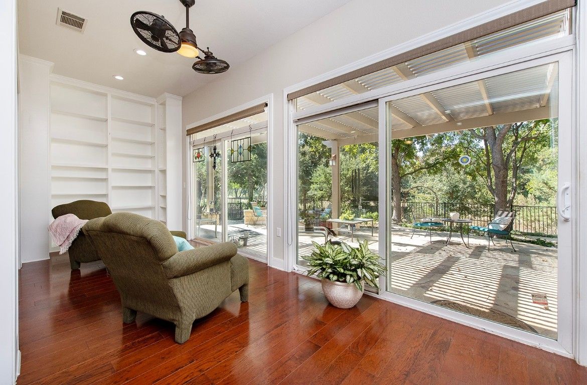 Property under contract and back up offers are encouraged! Please call agent to schedule any showings as supra lock box removed and a combo box remains. This stunning LaSalle Estate home offers both beauty and privacy, with a serene front view and a rare Level 4 natural, protected Sun City greenbelt behind it—providing exceptional scenery and seclusion. The thoughtfully designed, organically landscaped yard features native plants, peaceful walking paths, and soothing fountains—perfect for quiet, meditative strolls. Inside, you’ll find 3 bedrooms, 2 baths, and a bright 4-seasons room with custom built-in cabinetry. The home offers both a formal dining room and a cozy breakfast nook, along with a butler’s pantry and a gorgeous kitchen featuring stainless steel appliances and rich cherry cabinetry—all overlooking the lush greenbelt. The primary suite includes a walk-in shower and a jetted soaking tub, and the seller has invested extensively in high-quality updates throughout, including baths, flooring, and fixtures. This home is a must-see and beautifully priced for all it offers.