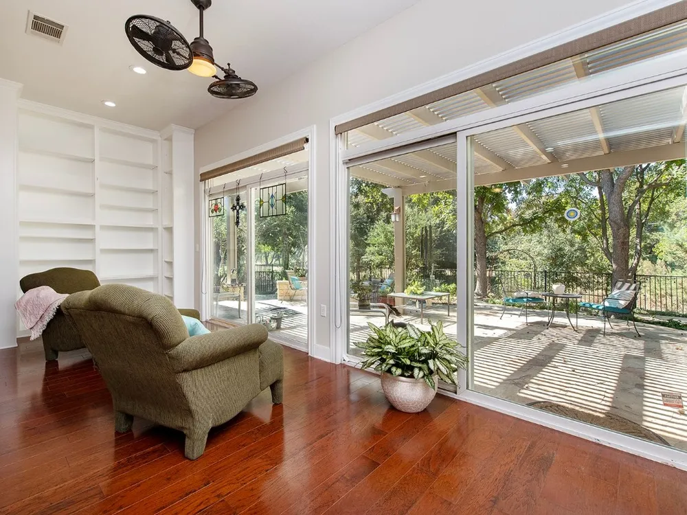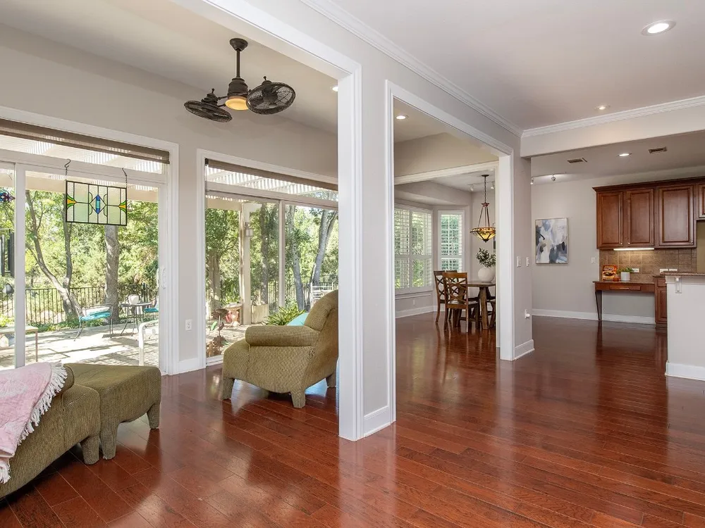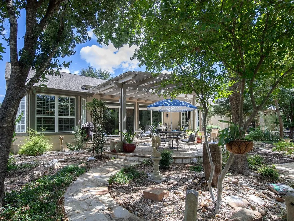 This stunning LaSalle Estate home offers both beauty and privacy, with a serene front view and a rare Level 4 natural, protected Sun City greenbelt behind it—providing exceptional scenery and seclusion. The thoughtfully designed, organically landscaped yard features native plants, peaceful walking paths, and soothing fountains—perfect for quiet, meditative strolls. Inside, you’ll find 3 bedrooms, 2 baths, and a bright 4-seasons room with custom built-in cabinetry. The home offers both a formal dining room and a cozy breakfast nook, along with a butler’s pantry and a gorgeous kitchen featuring stainless steel appliances and rich cherry cabinetry—all overlooking the lush greenbelt. The primary suite includes a walk-in shower and a jetted soaking tub, and the seller has invested extensively in high-quality updates throughout, including baths, flooring, and fixtures. This home is a must-see and beautifully priced for all it offers.