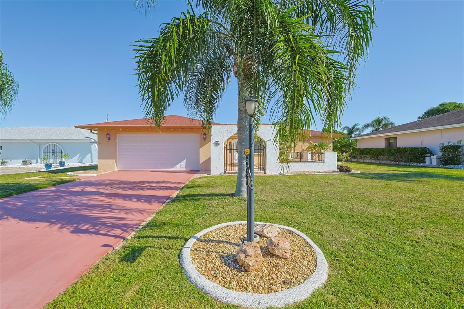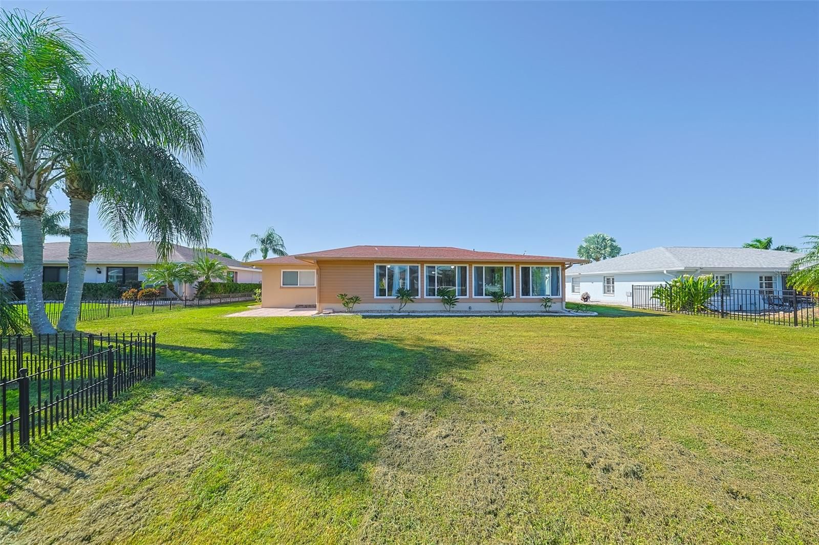 METICULOUSLY MAINTAINED WITH PRIDE OF OWNERSHIP this is a - NO HOA - PET FREE - SMOKE FREE HOME! You will be "Living the Dream" when you become the owner of this gorgeous home in Sun City Center. This "Spanish Colonial" style home is light & bright throughout the Living Room, Family Room, Kitchen & Bathrooms. The oversized Florida Room is perfect for entertaining. The Landscaping has been completely refreshed and the Front Courtyard is a delight for your eyes. The huge backyard is big enough to build a swimming pool for your enjoyment. Newer a/c (2020), Roof (2018), Electrical panel box replaced 2021. Hot water tank, Garbage Disposal, Garage door all replaced 2023-24. Hurricane impact windows. For just $344/person annually you can enjoy all the amenities of Sun City Center, featuring indoor & outdoor swimming pools, 10 har-thru tennis courts, 2 dog parks, horseshoes, PICKLE BALL, softball for men & women, woodworking and various Art & Crafts. With over 200 social clubs available that include travel, ceramics, gardening, computer, bridge, poker, writing, 10 dance groups, a theatre group you'll never be bored. The community offers several grocery stores, a hospital, 2 "Big Box" stores, restaurants, doctors' offices, various Houses of Worship, all accessible by golf cart. Strategically located near Tampa, Sarasota & St Petersburg you'll have easy access to Tampa International Airport, World class Beaches, Professional Sporting events & Fine Dining. The Entertainment of Orlando is approximately 90 minutes away. This one of a kind home will delight the most descripinating buyer. Warm & Friendly neighbors. Make an appointment to view ths home today! Furniture is available under separate contract.