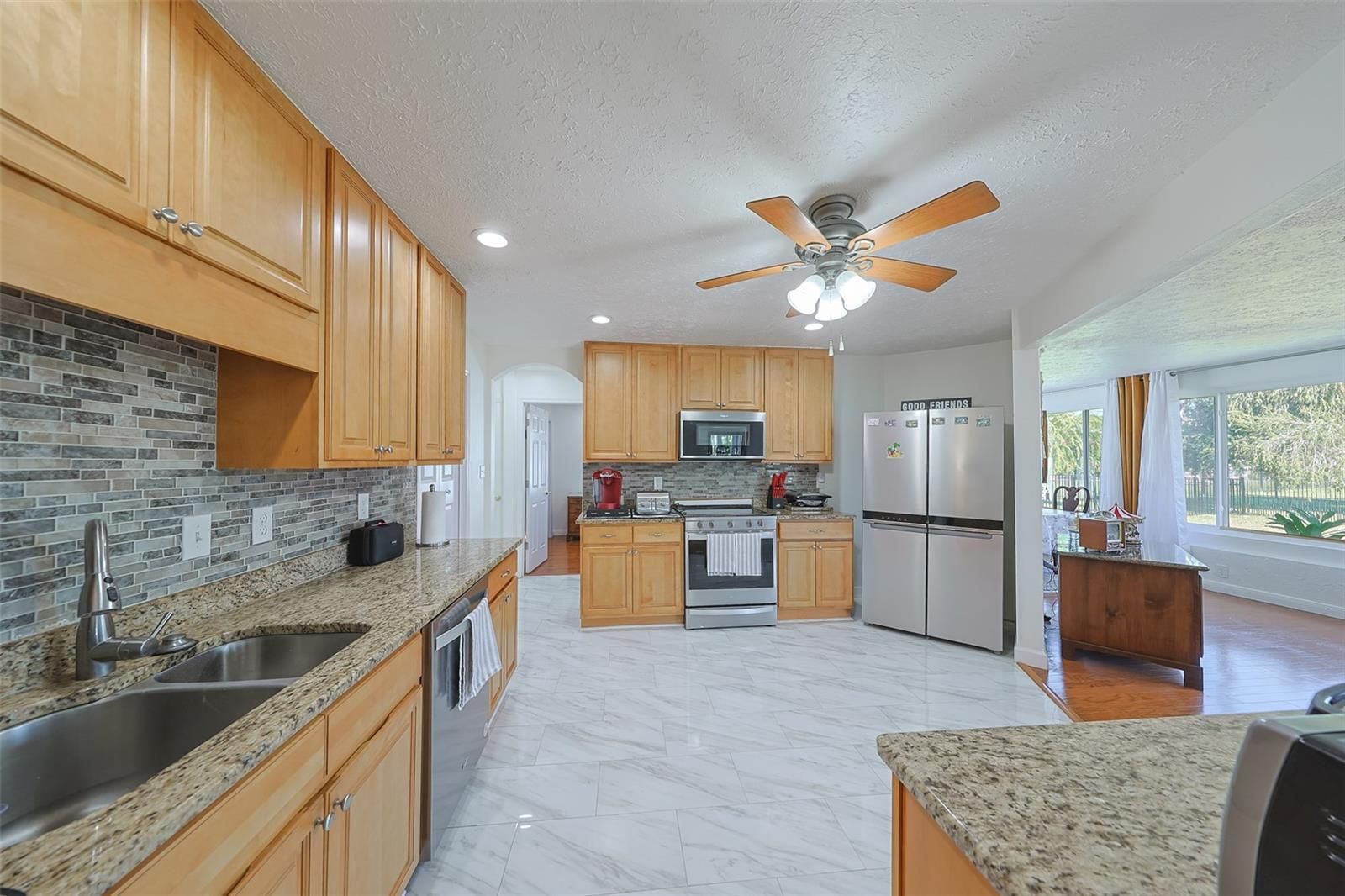 - Ceiling Fan(s), Kitchen/Family Room Combo, Open Floorplan, Main Level Primary, Solid-Wood Cabinets, Split Bedrooms, Stone Counters, Walk-In Closet(s), Window Treatments