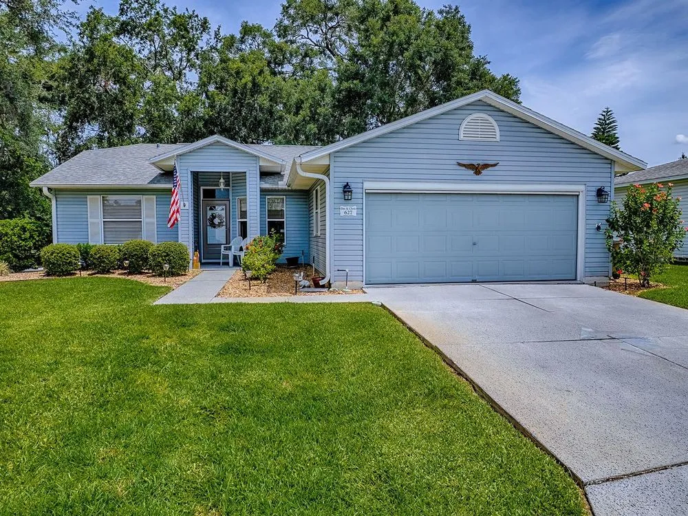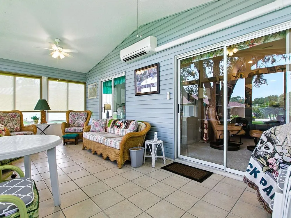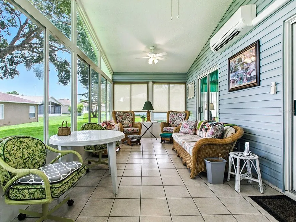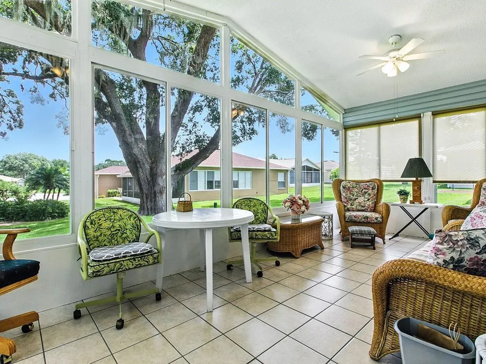 BACK ON MARKET! PRICE ADJUSTMENT! Welcome home to PENNBROOKE FAIRWAYS, an active 55 plus gated community. This home is a BEAUTIFUL 3 BR/2 BA with SPLIT FLOOR PLAN and large EAT-IN KITCHEN. You'll notice the beautiful garden area in the front of the home as soon as you drive up. Relax and enjoy the tranquil PARK-LIKE SETTING from your acrylic enclosed lanai, which has a mini-split HVAC unit giving you 220 sf more living space. To the left is CONSERVATION LAND with only trees so no neighbors. It sits on a slightly OVERSIZED LOT given more space and privacy between neighbors in back. BUT no worries because the HOA handles lawn mowing. The kitchen and bathrooms have GRANITE COUNTERS and oak cabinets. The kitchen cabinets and pantry closet have PULLOUTS for easy access. Newer STAINLESS STEEL APPLIANCES in kitchen. The kitchen, bathrooms and lanai have TILE FLOORING and the rest of house has soft light color CARPETING. The only exception is the entry hall which is LVP. The paint colors are neutral and soothing throughout. The newer Samsung washer and dryer are in the garage which has a retractable screen door and pull down attic stairs. The 4 seater ELECTRIC CLUB CAR GOLF CART cart is available for sale separately. The golf cart has 2024 batteries and a water maintenance system. There is a ceiling fan in the garage. The water heater was replaced in 2023, the HVAC replaced in 2020 and roof in 2014. If not familiar with PENNBROOKE FAIRWAYS, you're missing out! It's conveniently located near The Villages Community, with shopping, restaurants and 15 minutes from Brownwood Town Square. Pennbrooke is an active 55+ gated community with three golf courses open to the public--two 9-hole executive courses and one regulation 9-hole course. There is a golf pro shop, grille, 2 recreation centers, 2 pools, 2 hot tubs, softball, tennis/pickleball, shuffleboard, fitness center, library and hair salon. There is a COMMUNITY GARDEN for those with a green thumb. BONUS for RV/Boat owners--FREE RV/BOAT STORAGE with dump and wash facilities. HOA fee of $255/mo. includes lawn cutting and edging as well as cable and internet! Pennbrooke offers a plethora of classes, concerts, trivia, bingo, golf leagues and groups, and many clubs so there is surely something for everyone. Call to set up your private tour today! You'll be impressed!