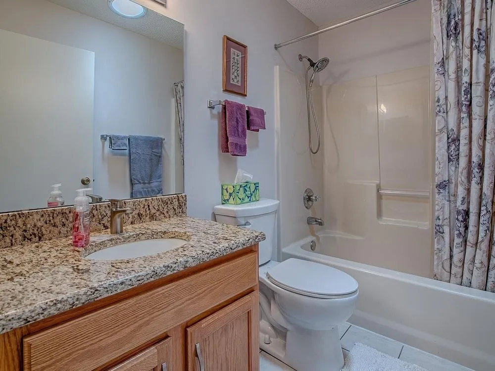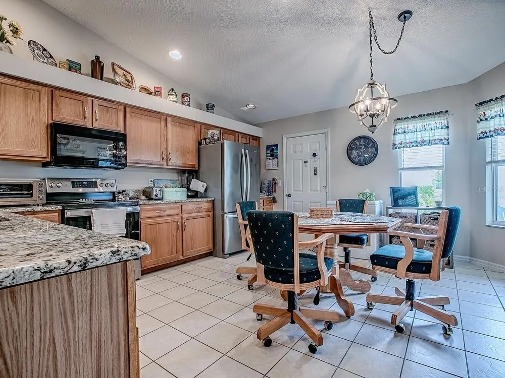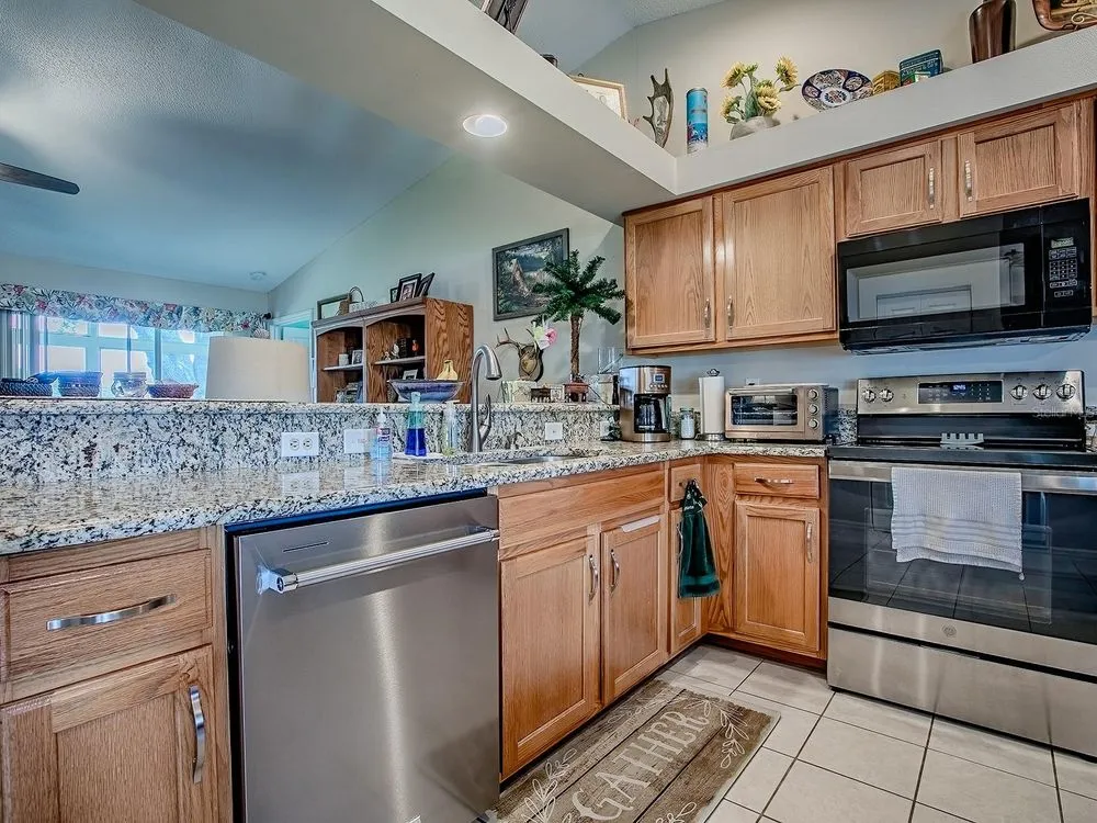 - Ceiling Fan(s), Eat-in Kitchen, Solid-Wood Cabinets, Stone Counters, Vaulted Ceiling(s)