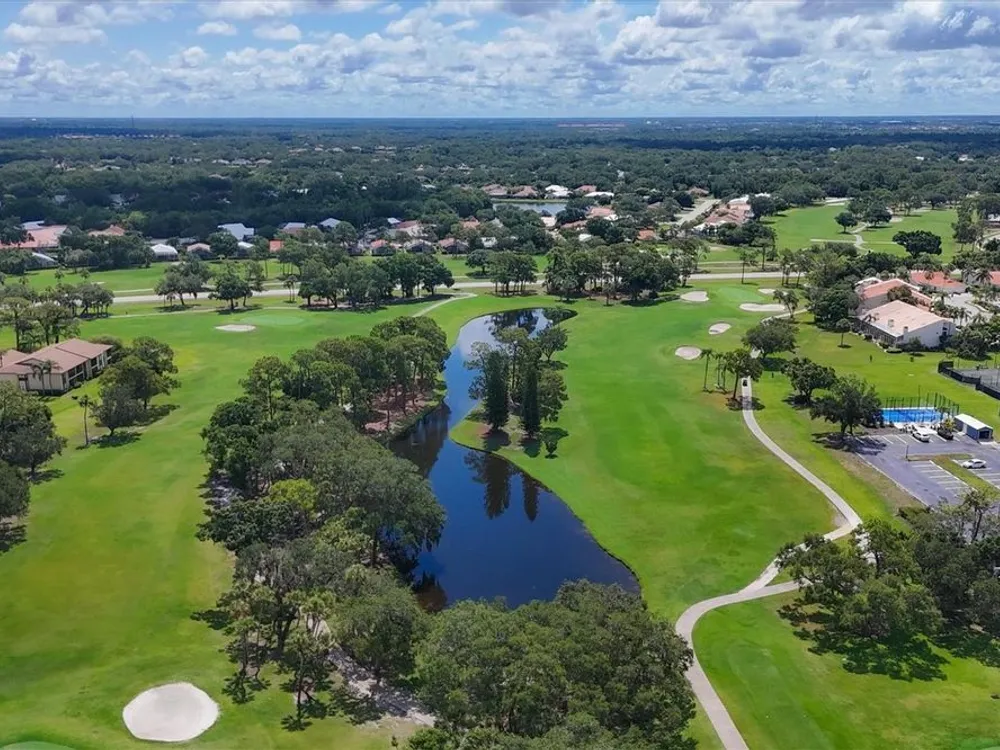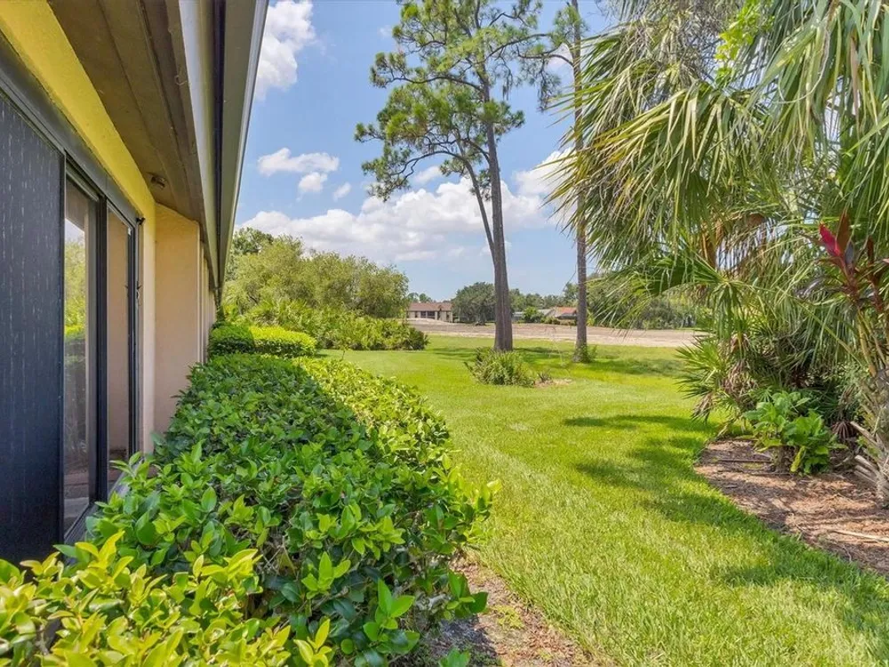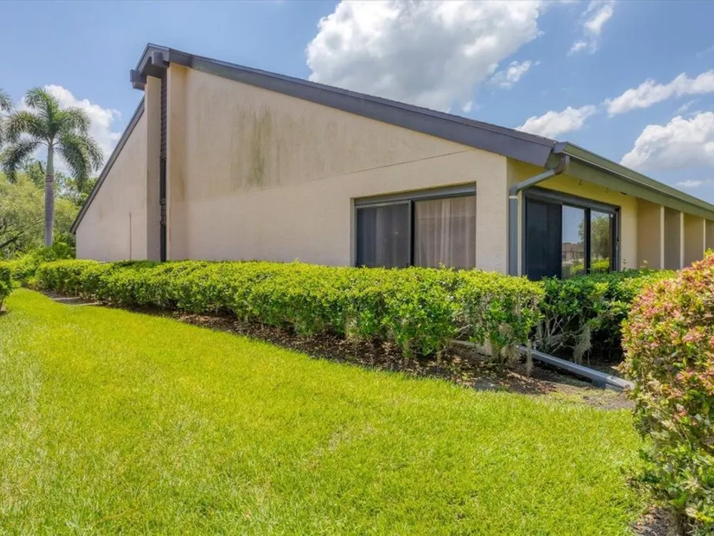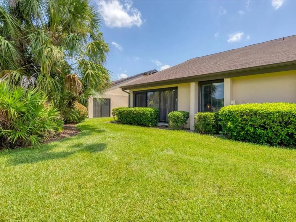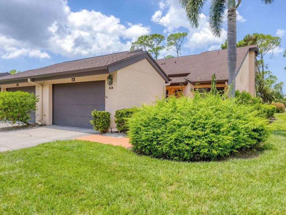 Welcome to this rarely available end-unit villa in the highly sought after maintenance-free community of Woodland Green. Located near University Town Center and the world-renowned Benderson Park - home to international rowing championships and training grounds for the U.S. rowing team. This spacious 2-bedroom, 2-bathroom home includes an over-sized one car garage, and also features a versatile den that can easily be converted into a third bedroom, a home office, or creative space. With a split floorplan, vaulted ceilings, and an open layout, the residence offers an airy, light-filled ambiance perfect for modern Florida living. The spacious kitchen is a chef's delight, complete with granite countertops, a large island, stainless steel appliances and a cozy breakfast nook. The primary suite features a gorgeous golf-course view and built-in shelving in the walk-in closet.  The indoor laundry room adds to everyday ease. Step into the enclosed Florida room and take in expansive golf course views - your private vantage point to enjoy peaceful mornings or relaxing evenings. Other upgrades include a new roof, gutters and washing machine (2024), and a kitchen and bathroom remodel, ensuring peace of mind and modern efficiency. Residents enjoy access to a community pool, shuffleboard courts, and optional golf membership. Don't miss this opportunity to own a beautifully maintained, move-in-ready home in one of Sarasota's most desirable areas. Schedule your private showing today!